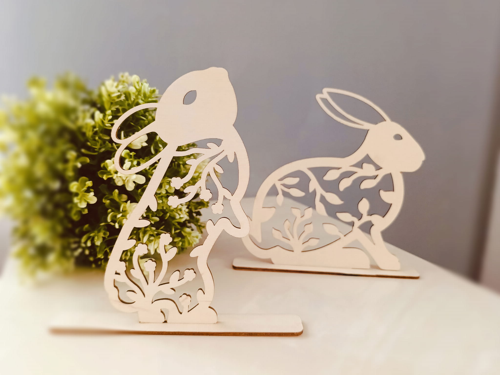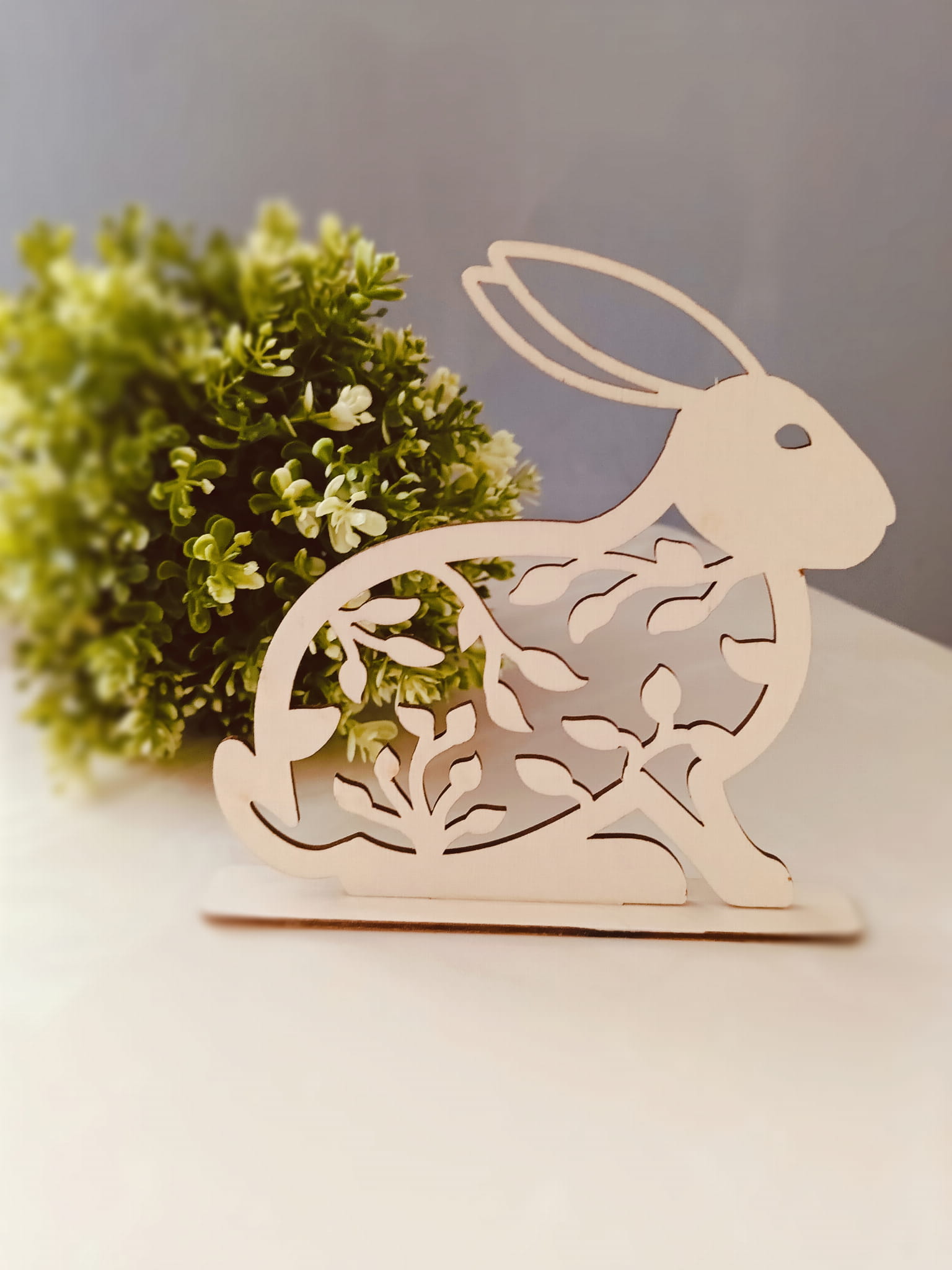 Dodaj odrobinę natury i subtelnej elegancji do swojego wnętrza dzięki drewnianej dekoracji w kształcie ażurowego zajączka.