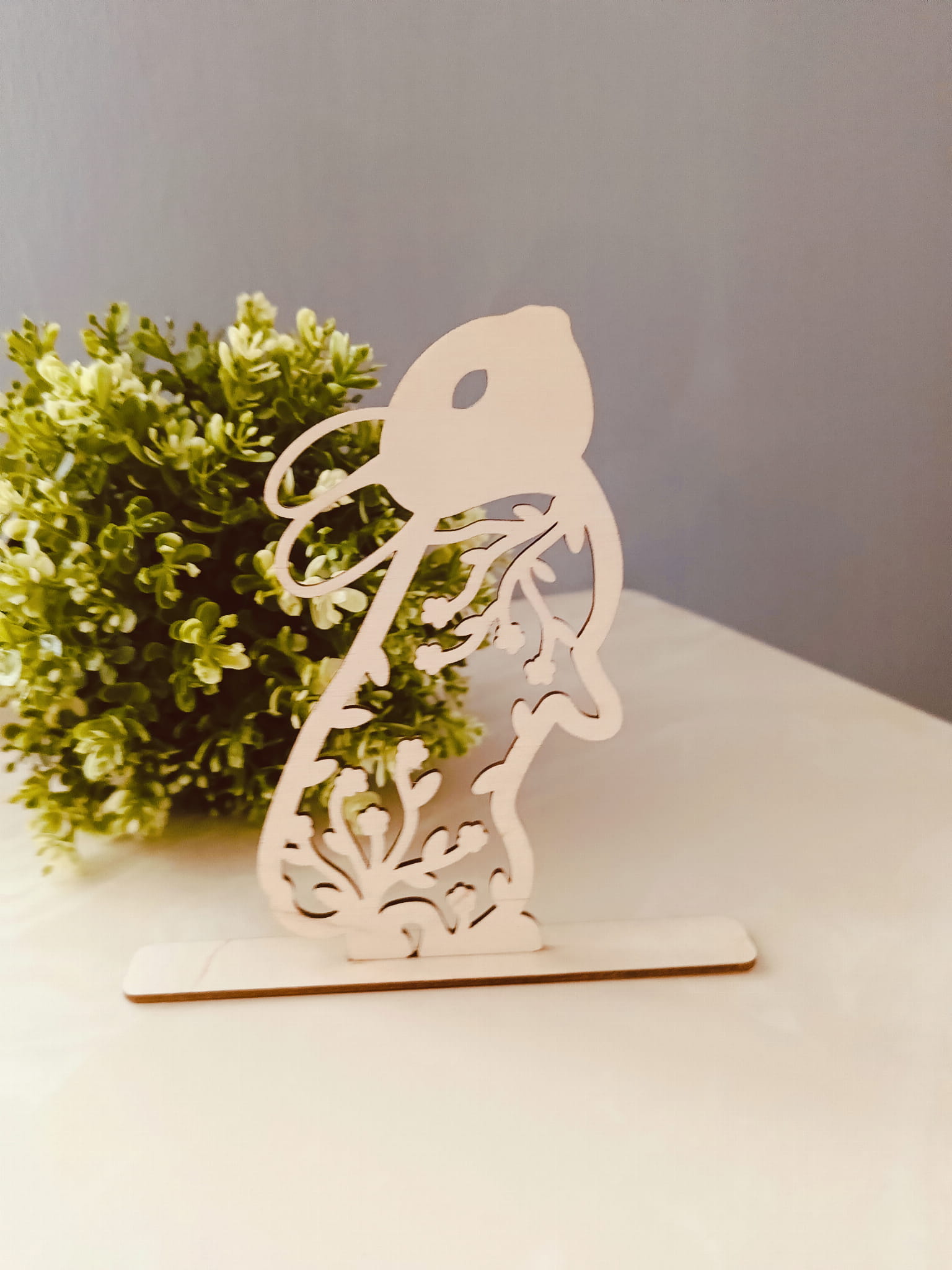 Ta wyjątkowa ozdoba, wykonana z wysokiej jakości sklejki, jest idealnym dodatkiem na wiosnę i Wielkanoc. Jej delikatne wycięcia nadają jej lekkości, a minimalistyczny design sprawia, że pasuje zarówno do klasycznych, jak i nowoczesnych aranżacji.