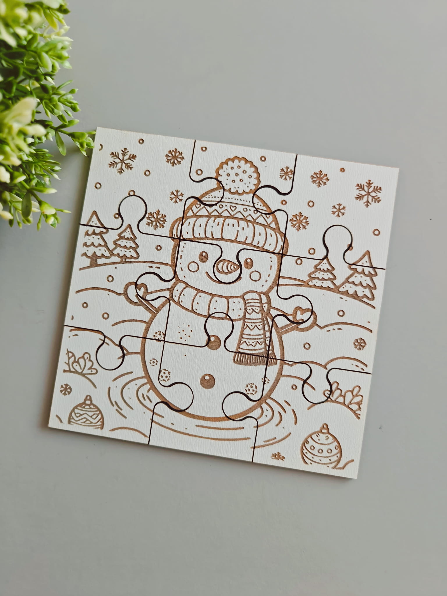 Bałwanek - świąteczne drewniane puzzle edukacyjne dla dzieci