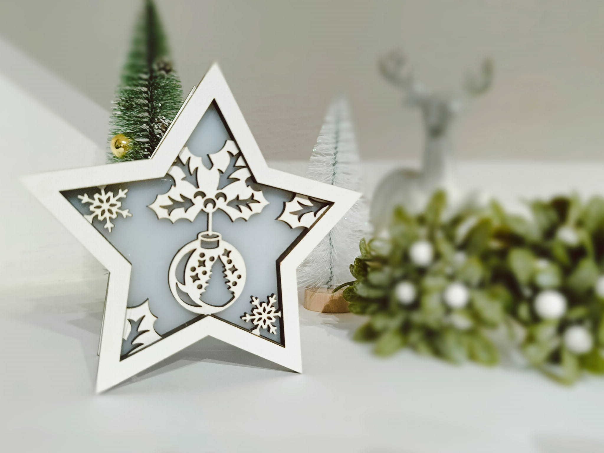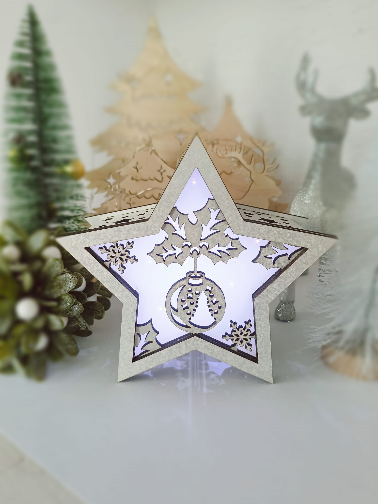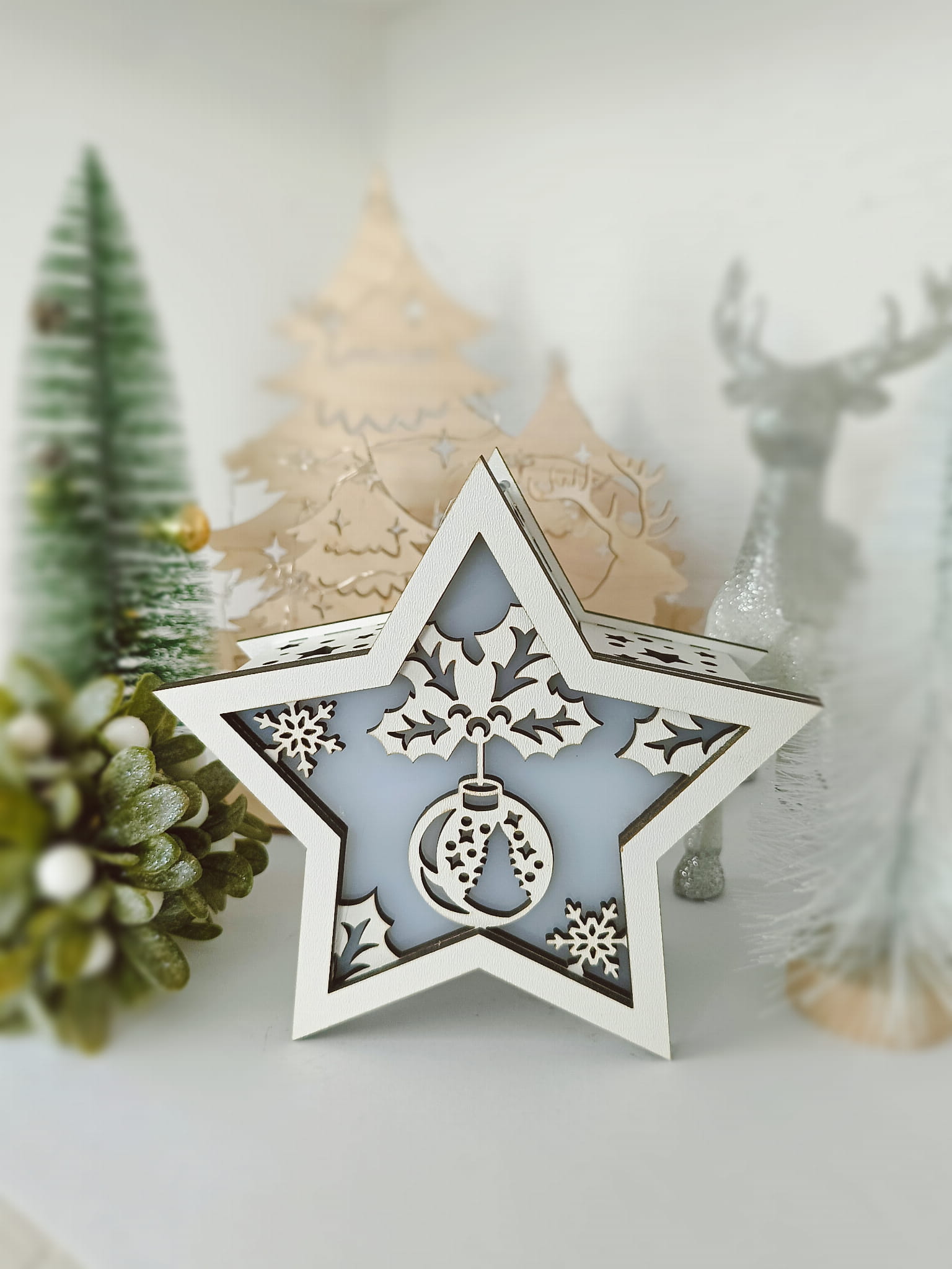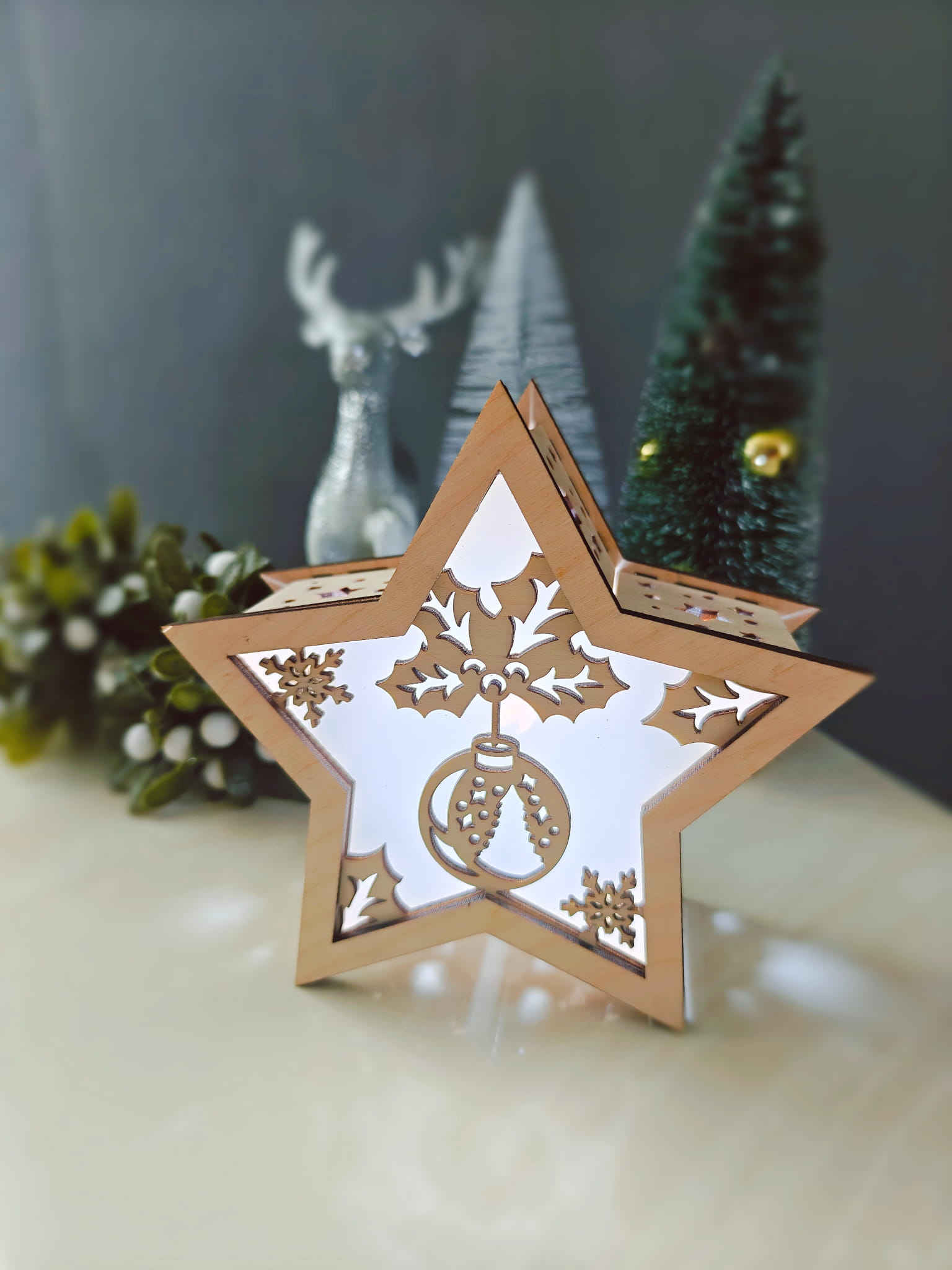 Bombka- Podświetlana gwiazda 3D święcąca stojąca ozdoba świąteczna drewniana na Boże Narodzenie