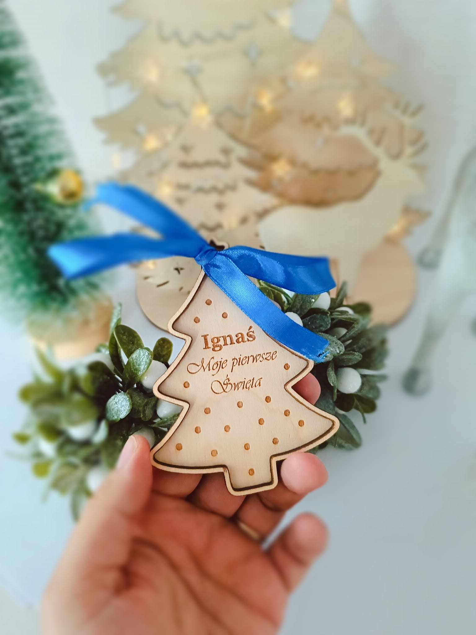 Stwórz wyjątkowy klimat na swojej choince dzięki eleganckiej, drewnianej bombce w kształcie choinki. Ręcznie wykonana z wysokiej jakości sklejki o łącznej grubości 6 mm, ozdobiona grawerowanym dowolnym napisem. Bombka przyciąga uwagę subtelnymi detalami oraz klasycznym świątecznym wyglądem, który doskonale komponuje się z innymi dekoracjami.
