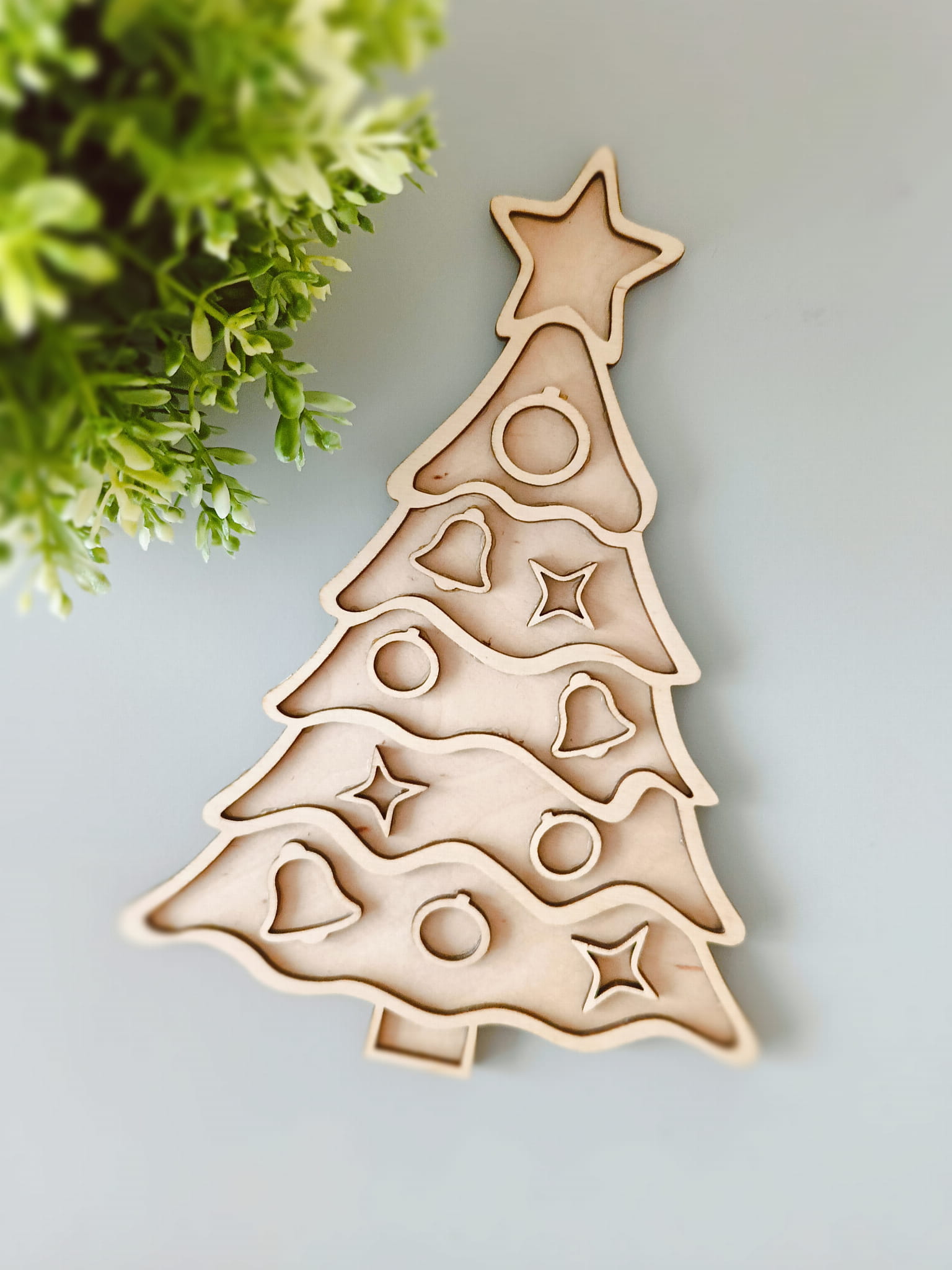 Choinka z ozdobami- drewniana wysypywanka sensoryczna