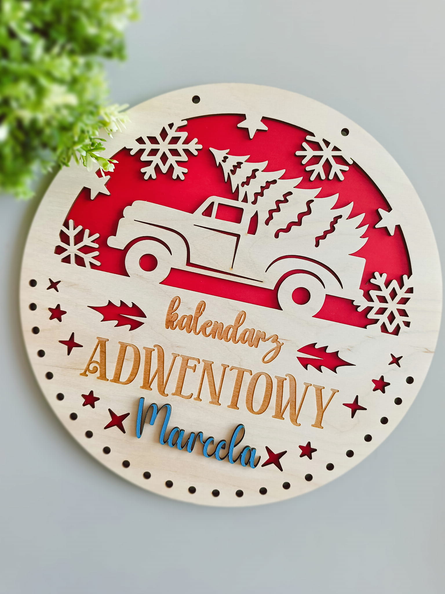 Każdy kalendarz można spersonalizować imieniem dziecka, co czyni go jeszcze bardziej wyjątkowym. Trwały i pięknie prezentujący się jako świąteczna dekoracja. WPISZ MAKSYMALNIE 1 IMIĘ W UWAGACH DO ZAMÓWIENIA.