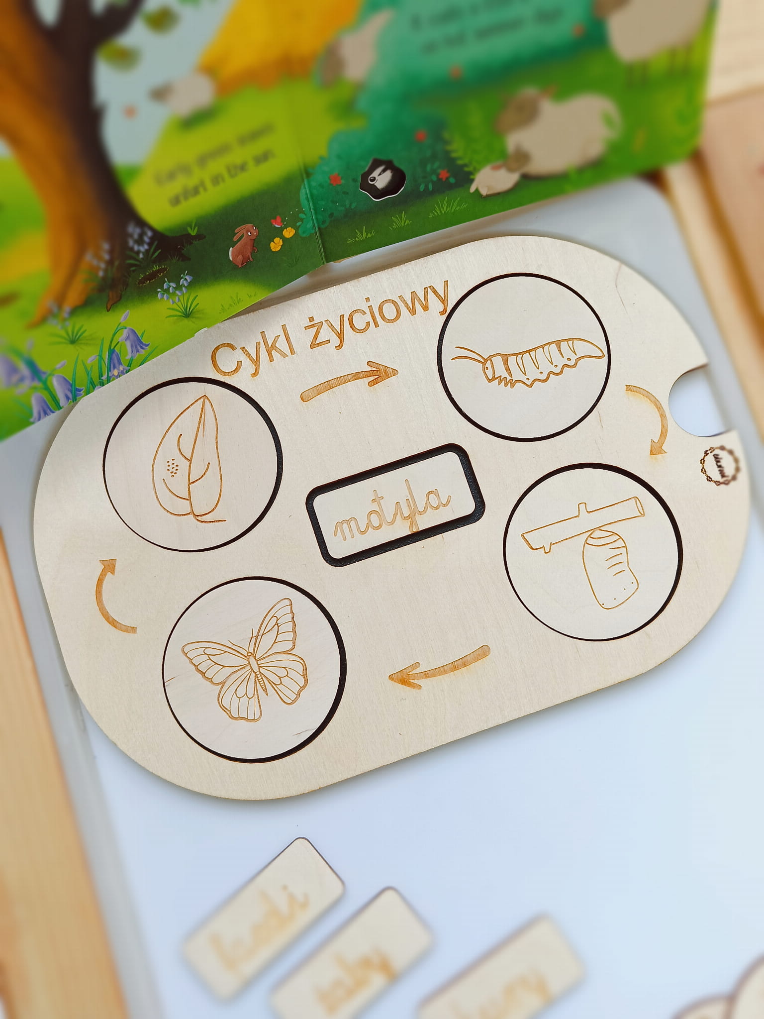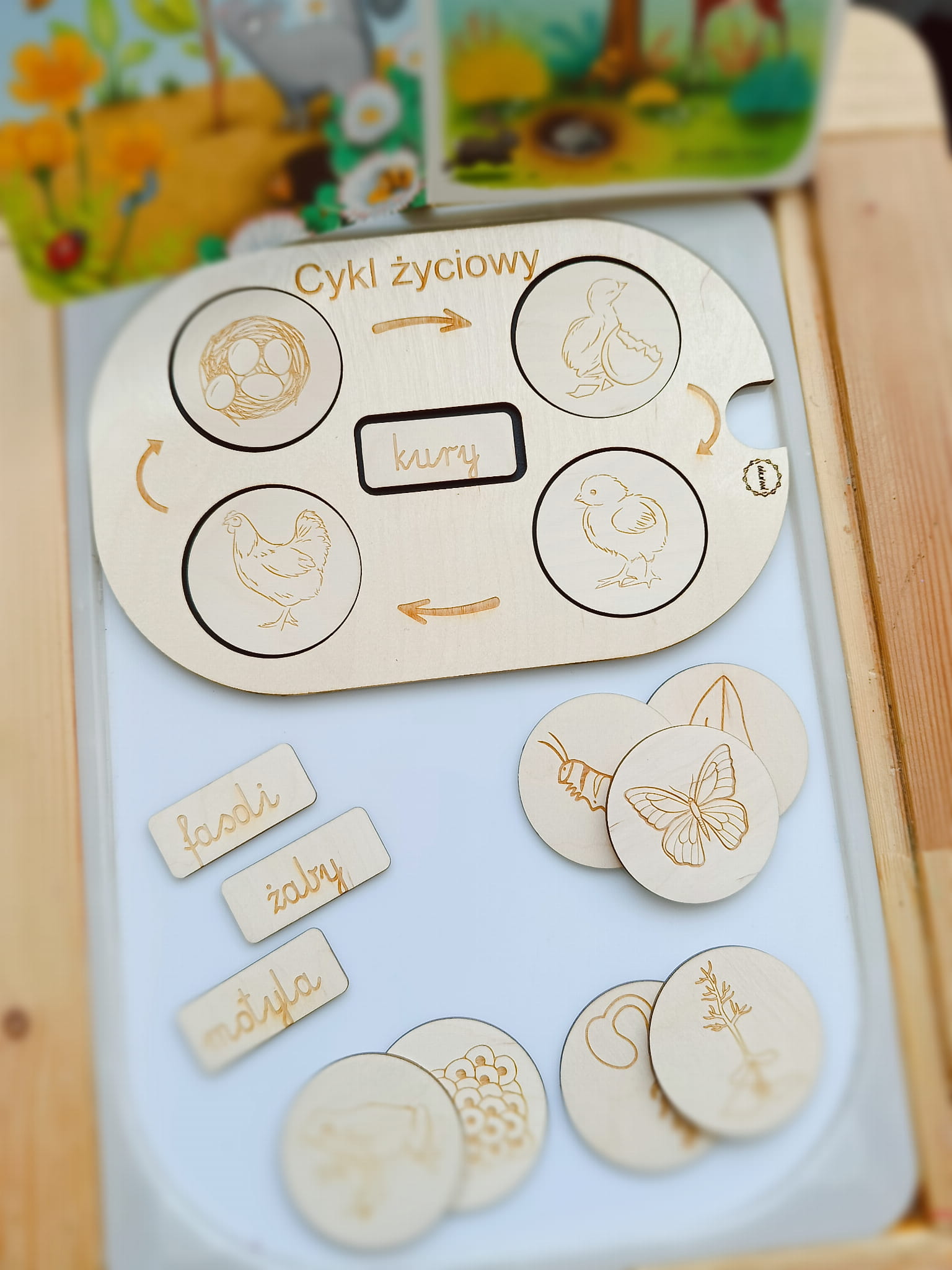 Cykl życiowy. Drewniana tablica. Wkładka do stolika Ikea Flisat