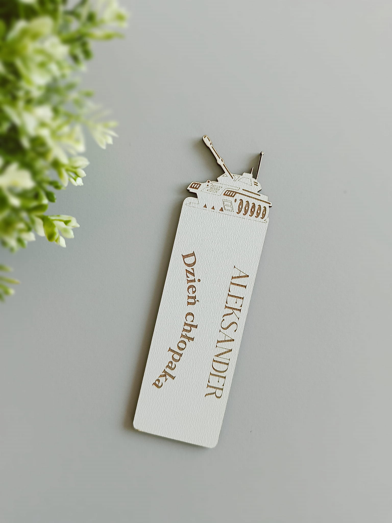Czołg drewniana zakładka do książki - personalizacja