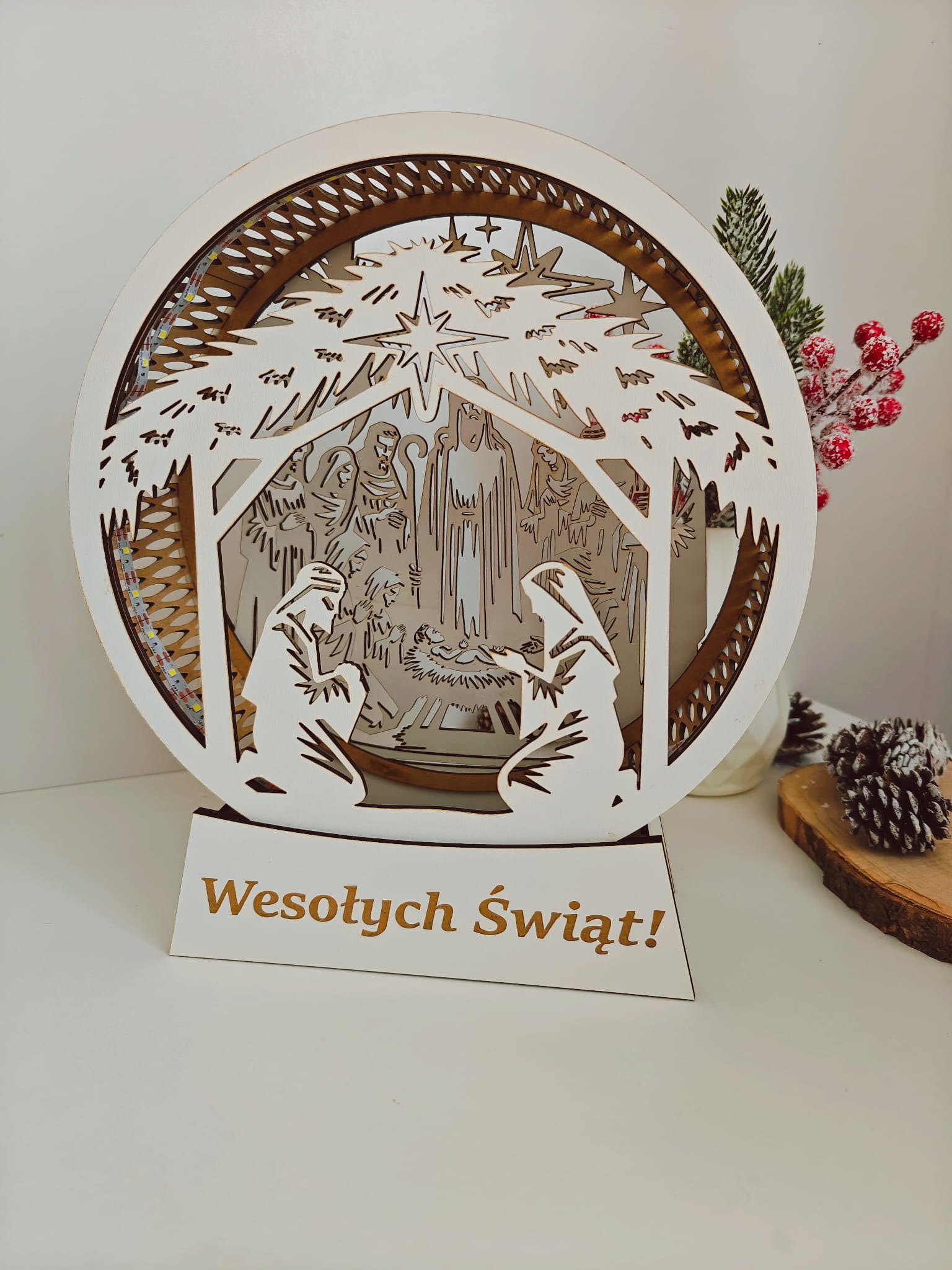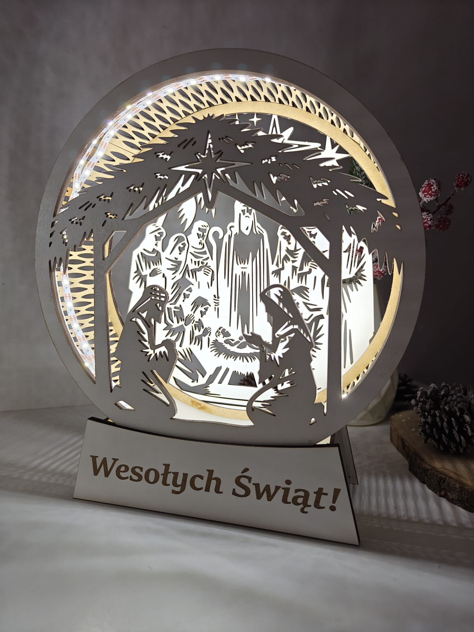 Elegancka, podświetlana dekoracja LED wykonana to wyjątkowy element świątecznego wystroju, który wprowadza ciepłą i magiczną atmosferę do wnętrza. Starannie wycinany wzór w połączeniu z podświetleniem LED tworzy efektowną ozdobę, idealną do postawienia na komodzie, parapecie, półce lub stole.