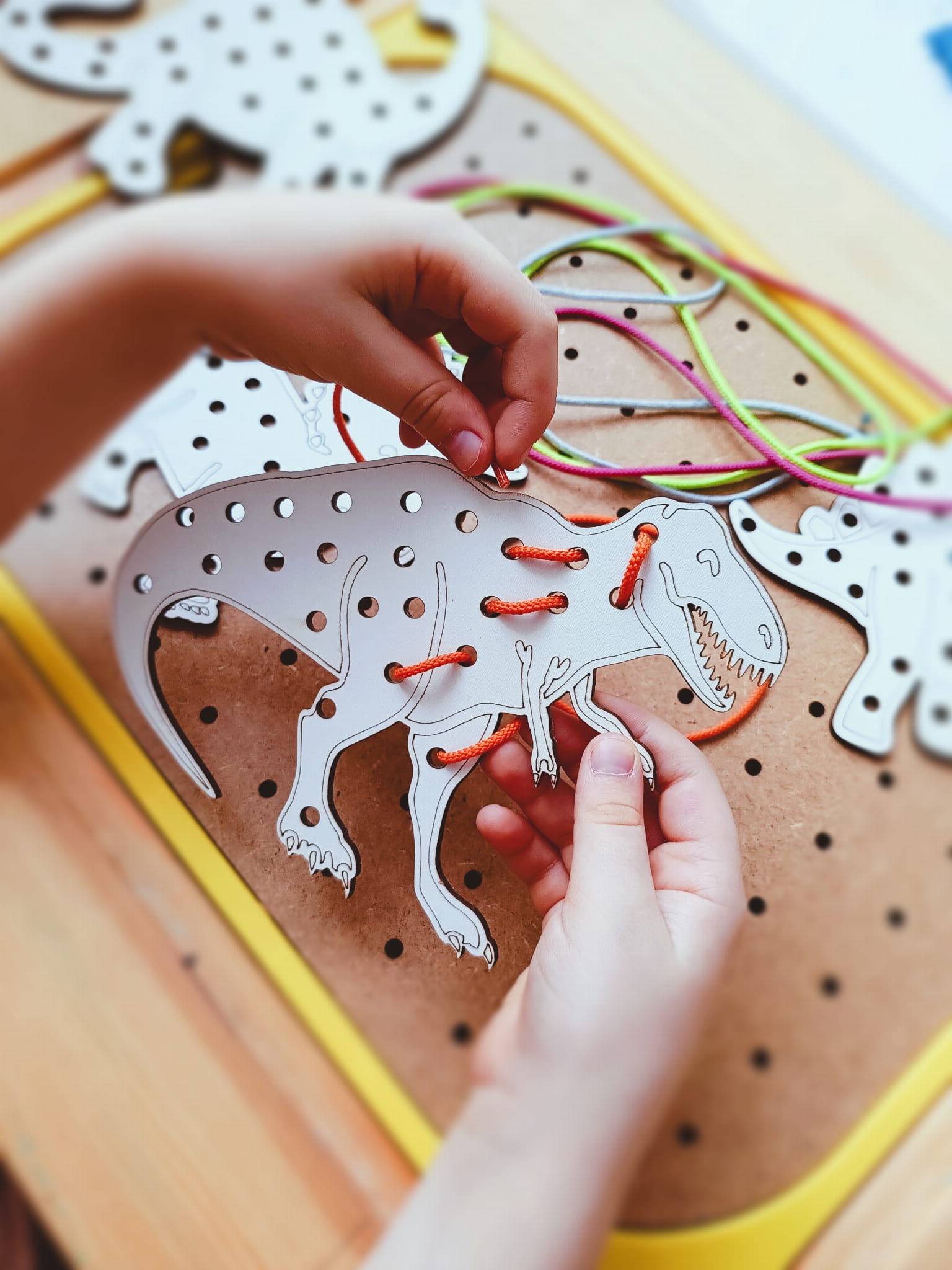 Dinozaury - drewniane przeplatanki motoryczne dla dzieci