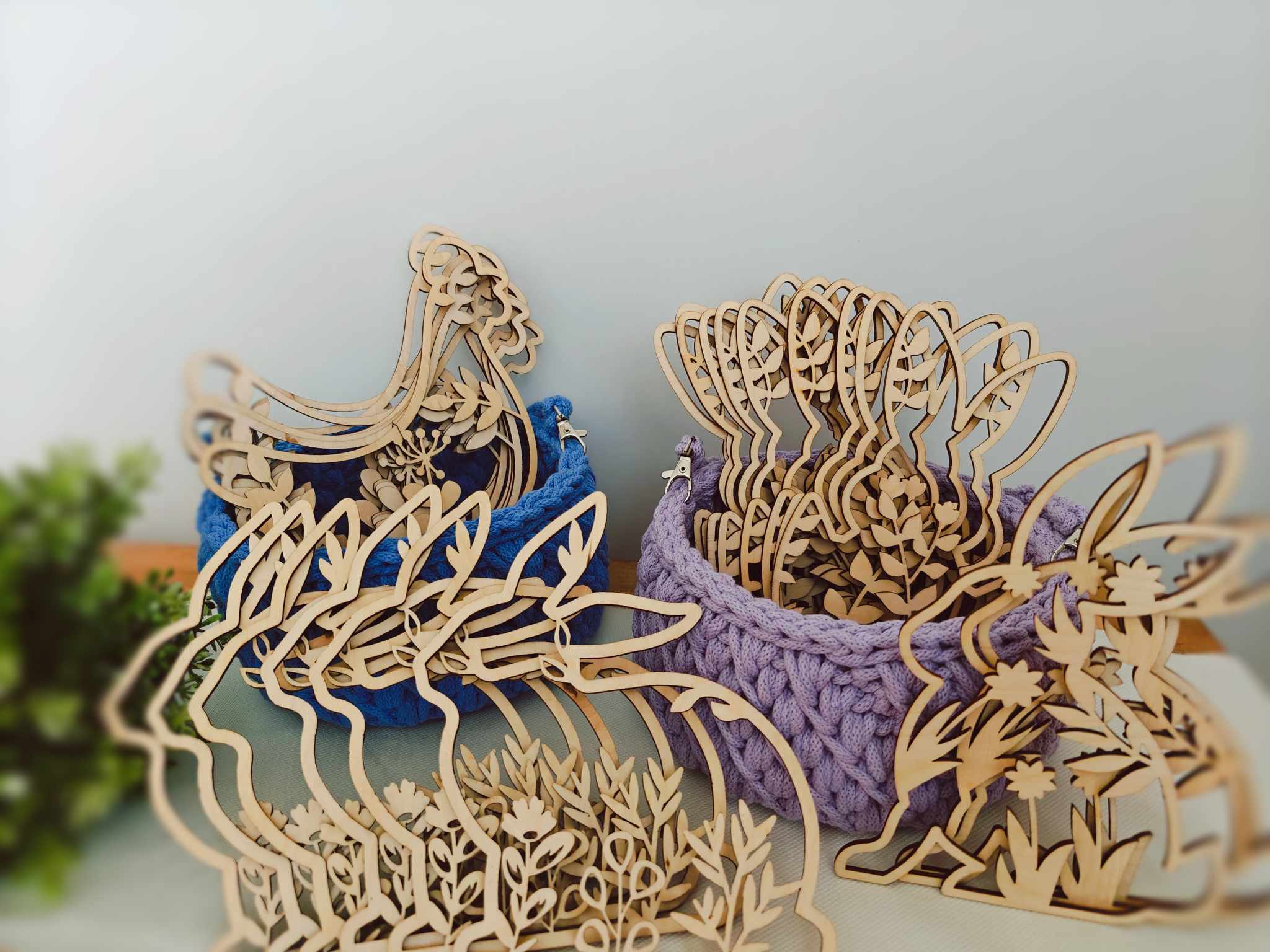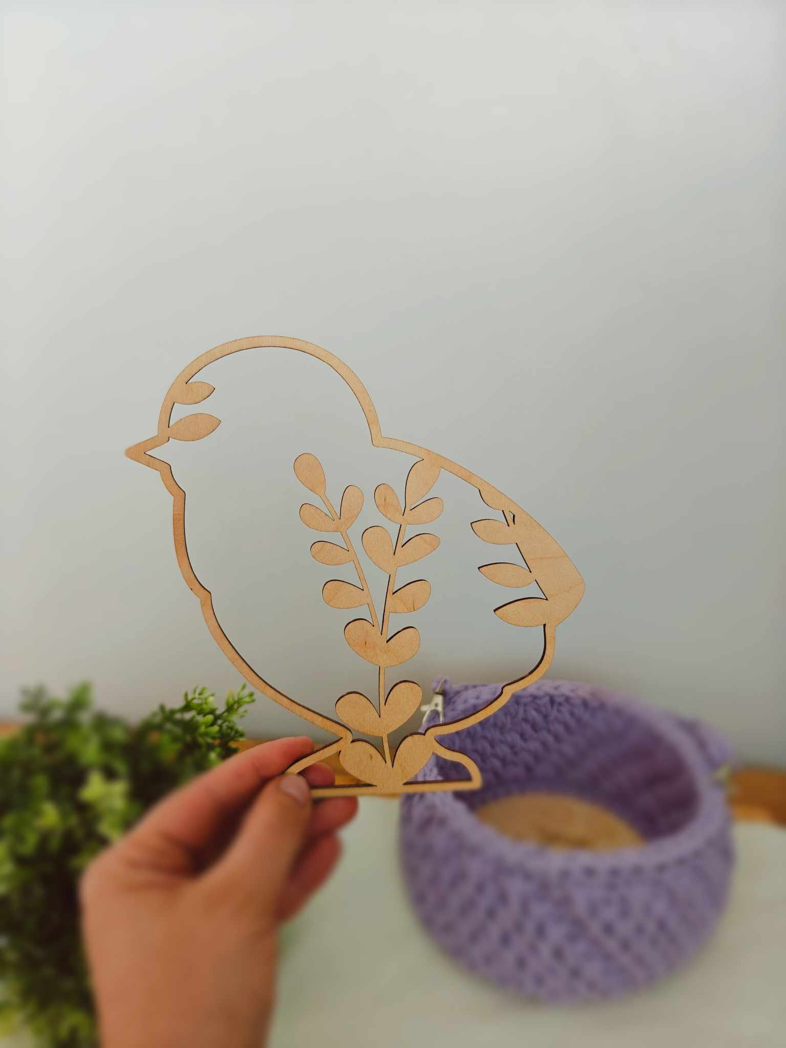 Każda dekoracja została wycięta laserowo z najwyższej jakości sklejki, co zapewnia precyzyjne detale i lekkość, dzięki której łatwo je zawiesisz w oknie lub wykorzystasz w stroiku wielkanocnym. Ich subtelny, ażurowy design pięknie przepuszcza światło, tworząc elegancki efekt dekoracyjny.