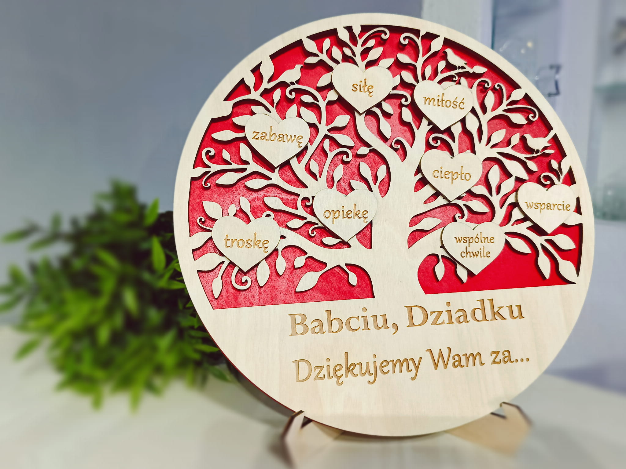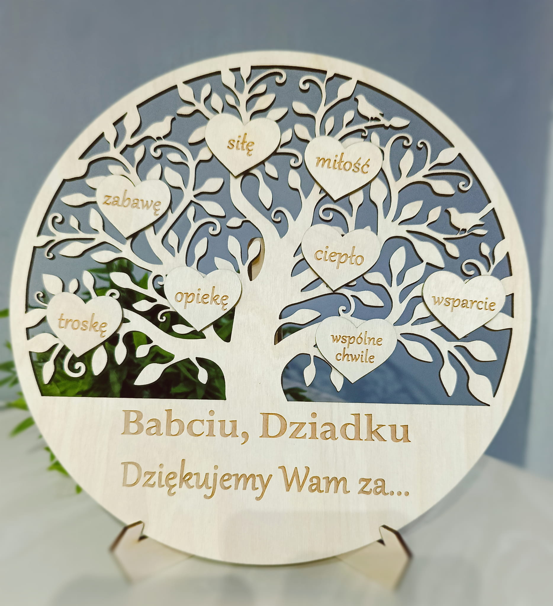 Drewniana statuetka ozdoba drzewo z podziękowaniem - personalizacja