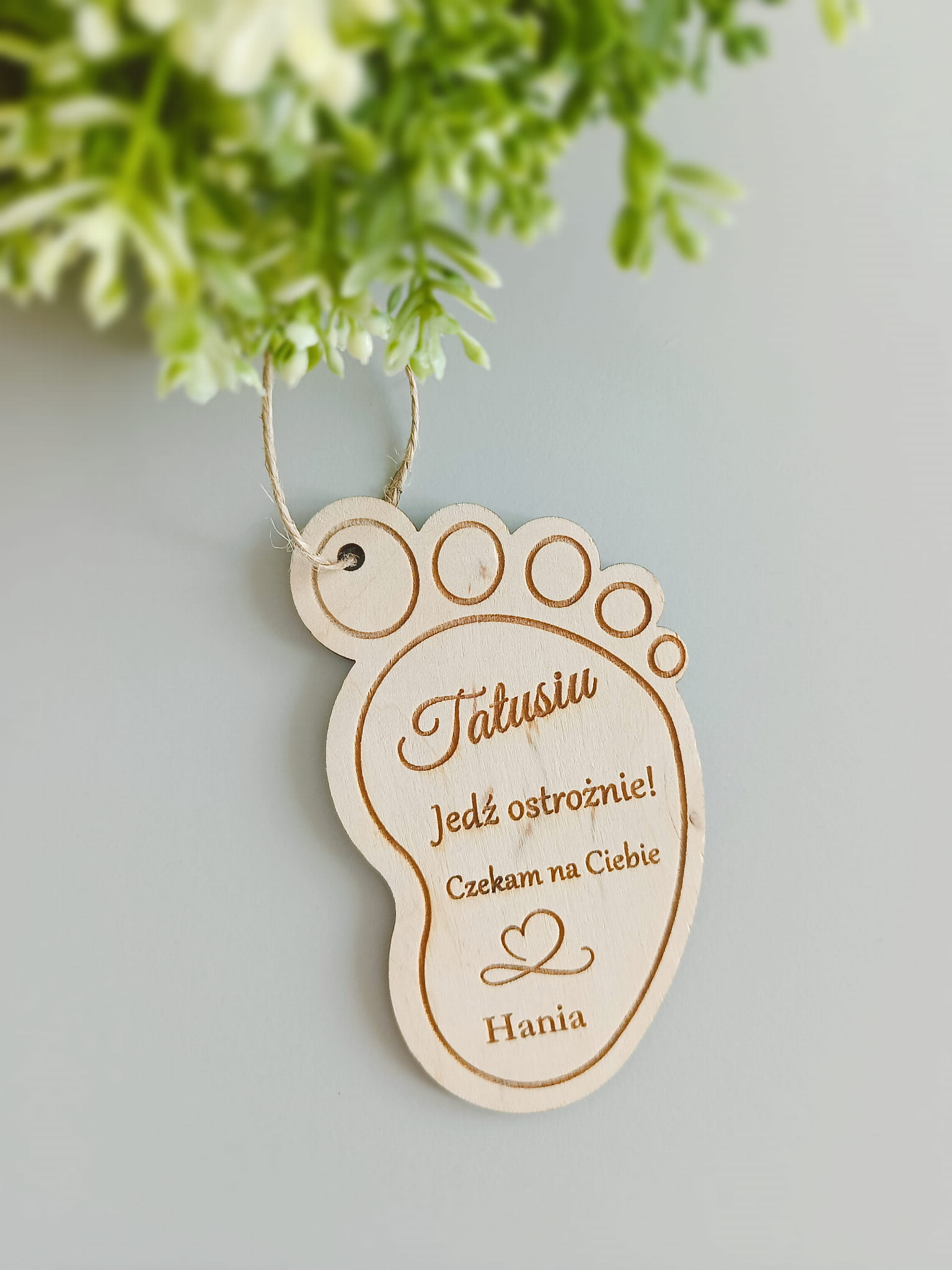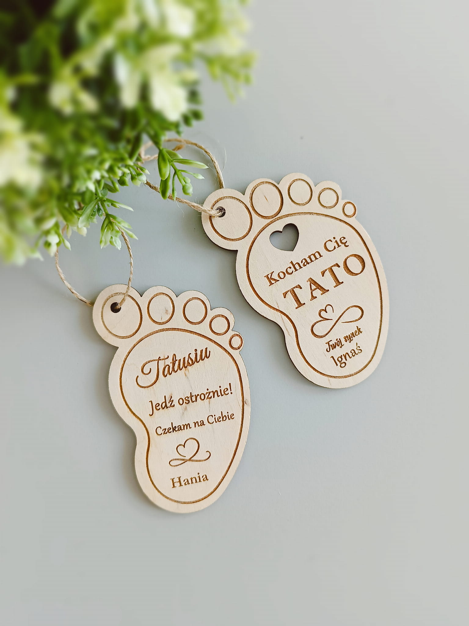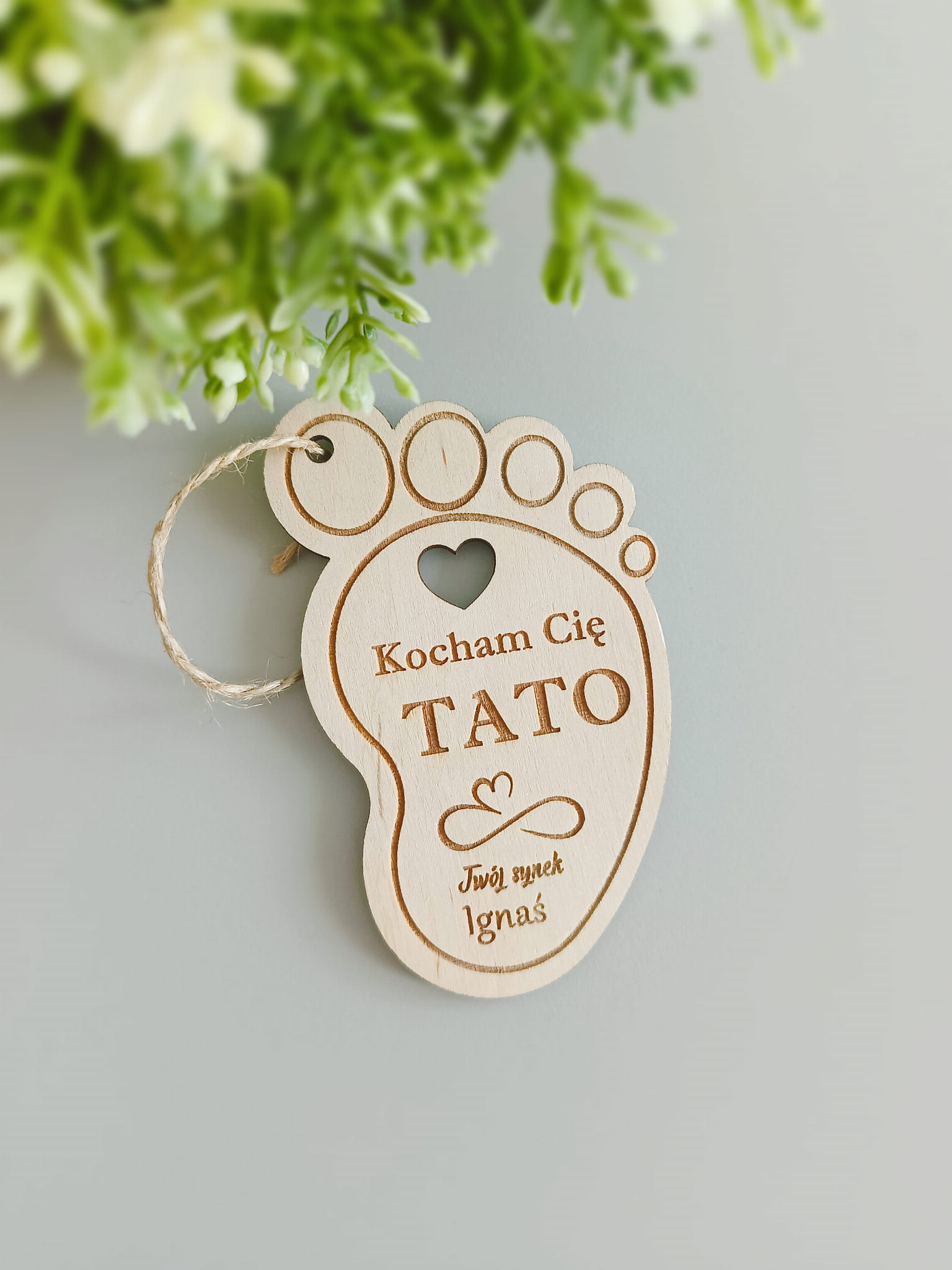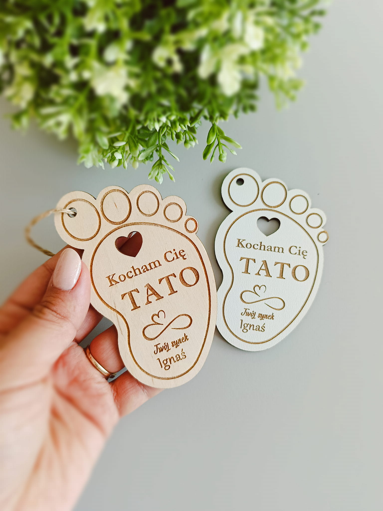 Drewniana stopka zawieszka lub magnes stópka Dzień Taty