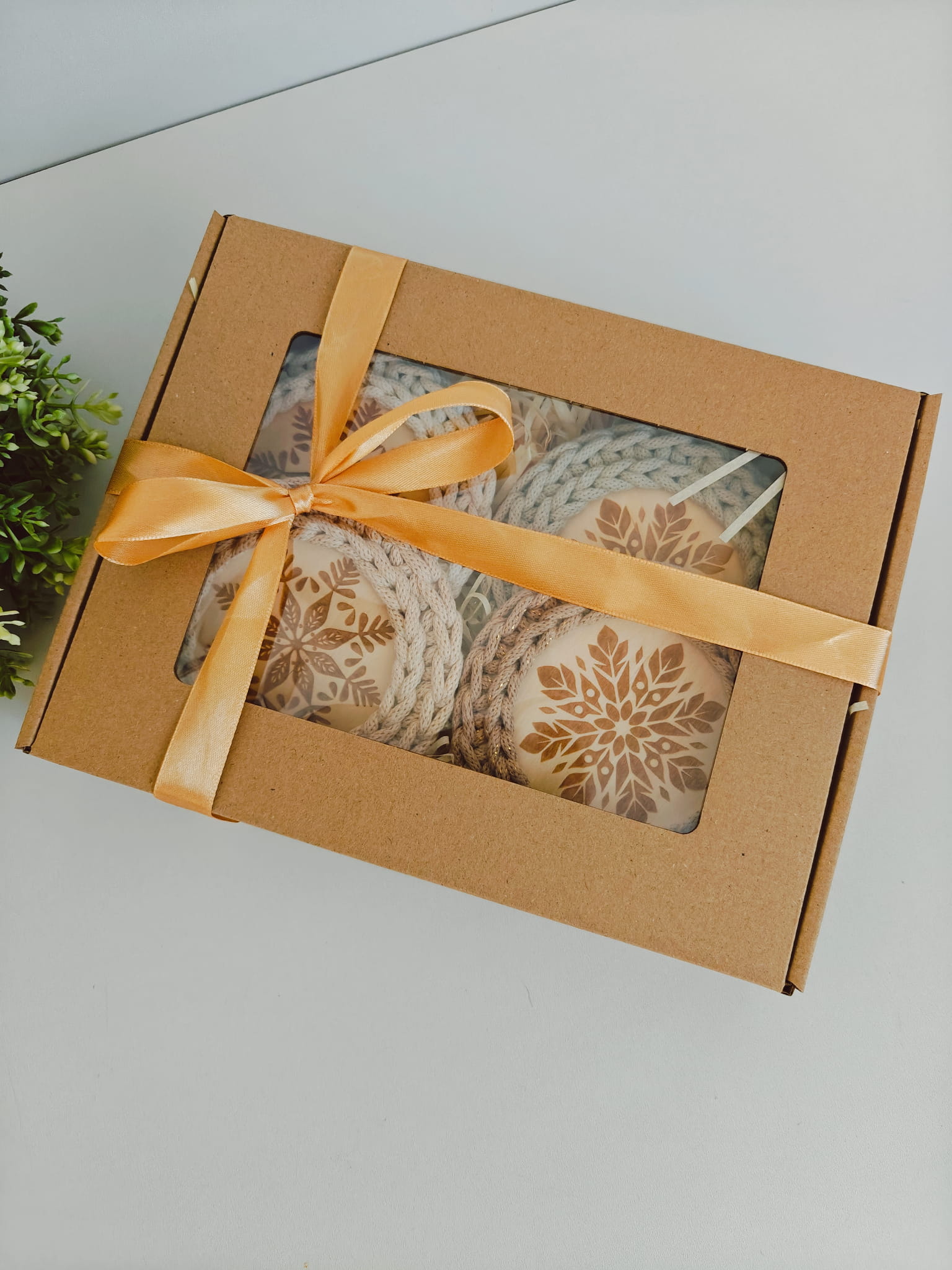 Drewniane podkładki śnieżynki- zestaw prezentowy box