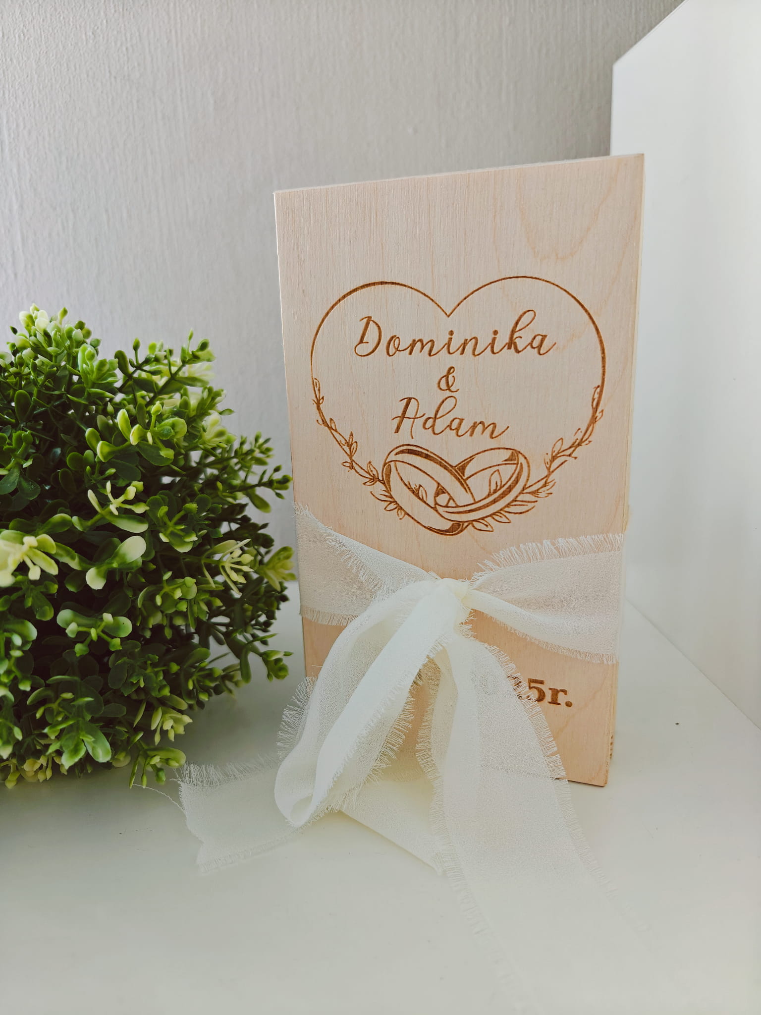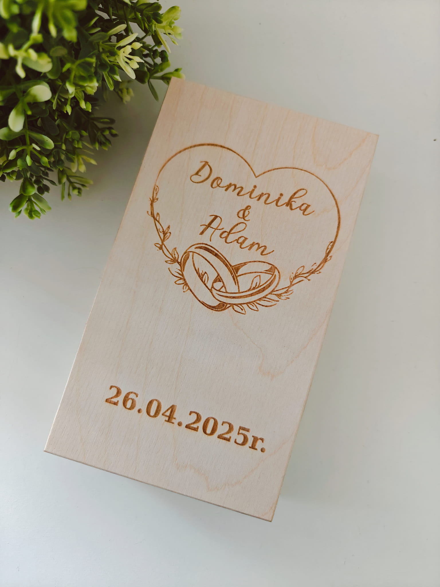 Szukasz eleganckiego i oryginalnego prezentu ślubnego? Nasze drewniane pudełko z grawerem to wyjątkowa forma wręczenia pieniędzy Młodej Parze, która pozostanie piękną pamiątką na lata.