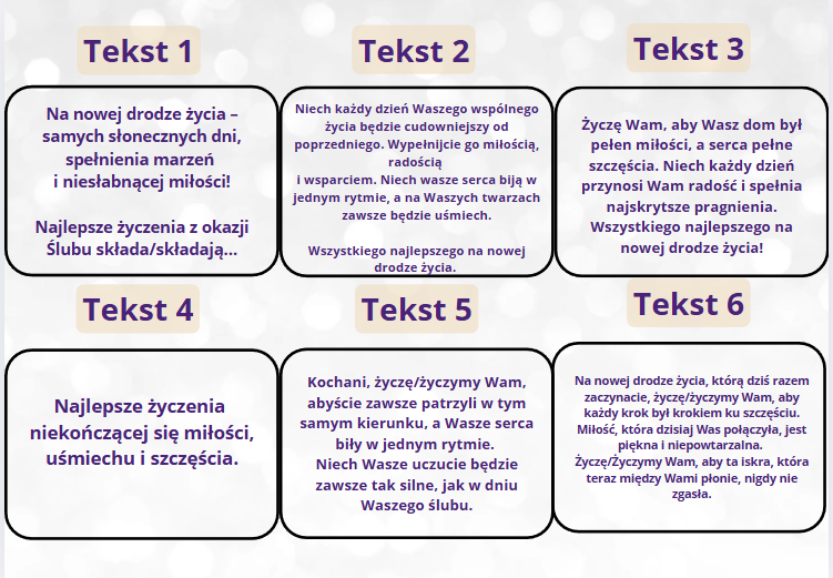 możliwość personalizacji: imiona, data, życzenia, podpisy,