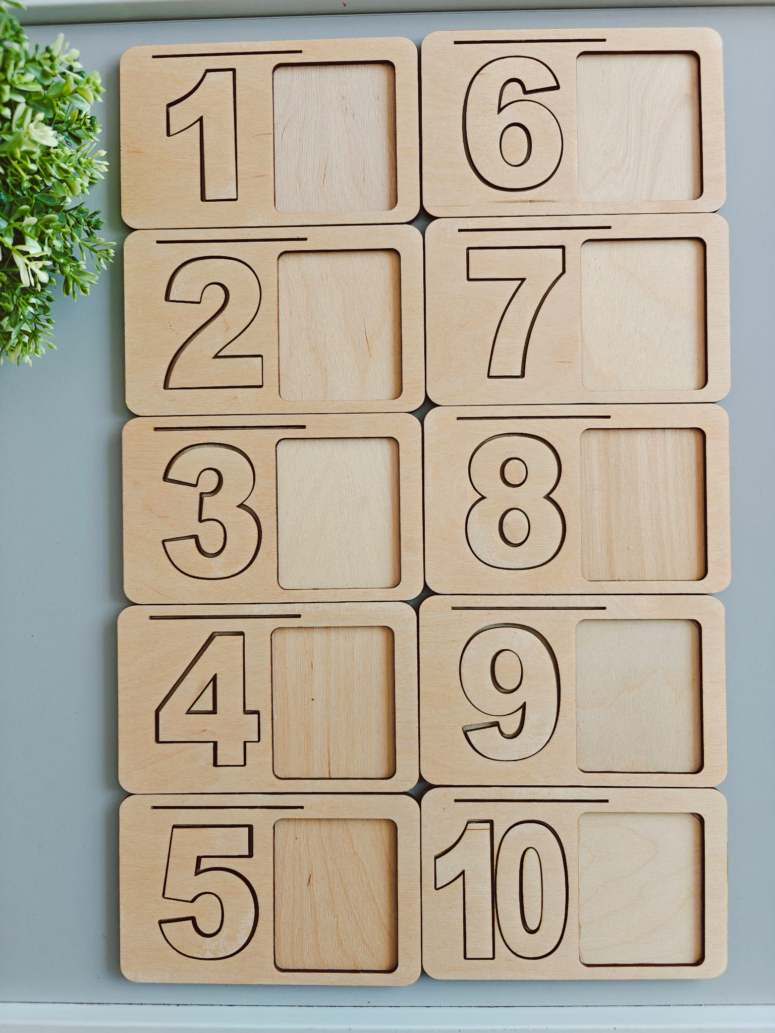 ✔ Interaktywna nauka – każda tabliczka posiada ruchomą cyfrę oraz specjalne miejsce na umieszczanie drewnianych kulek, co pozwala dziecku na wizualizację ilości i ułatwia zrozumienie liczb.
