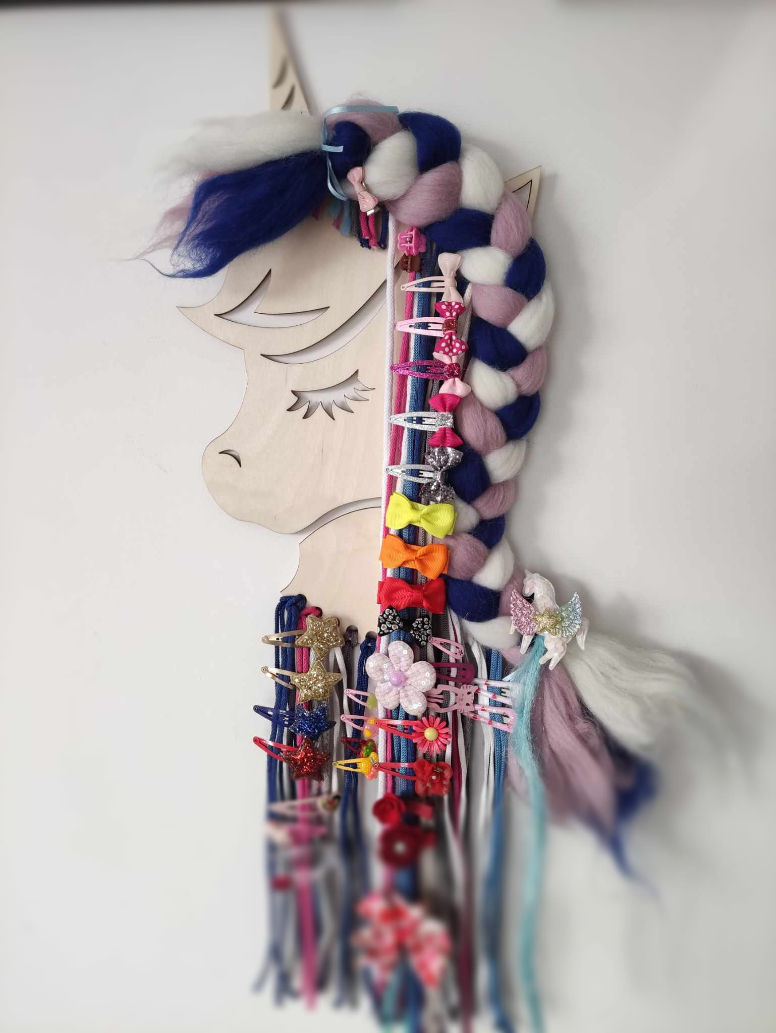 Jednorożec do zawieszenia na ścianie z możliwością organizacji spinek i wsuwek do włosów.