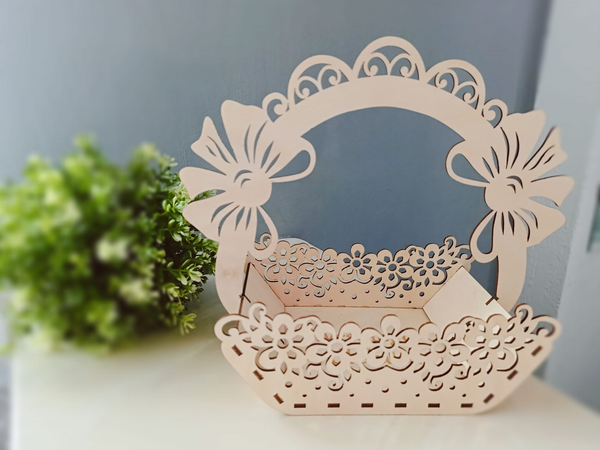 Stwórz wyjątkową atmosferę Wielkanocy dzięki urokliwemu drewnianemu koszyczkowi! Starannie wykonany, ozdobiony delikatną kokardką i kwiatkami, będzie pięknym elementem świątecznej dekoracji.