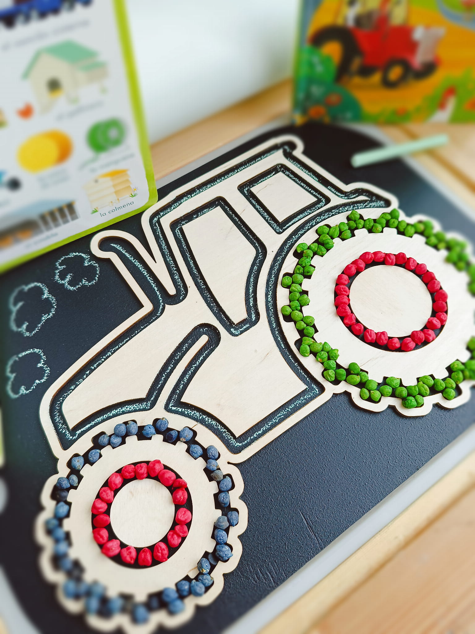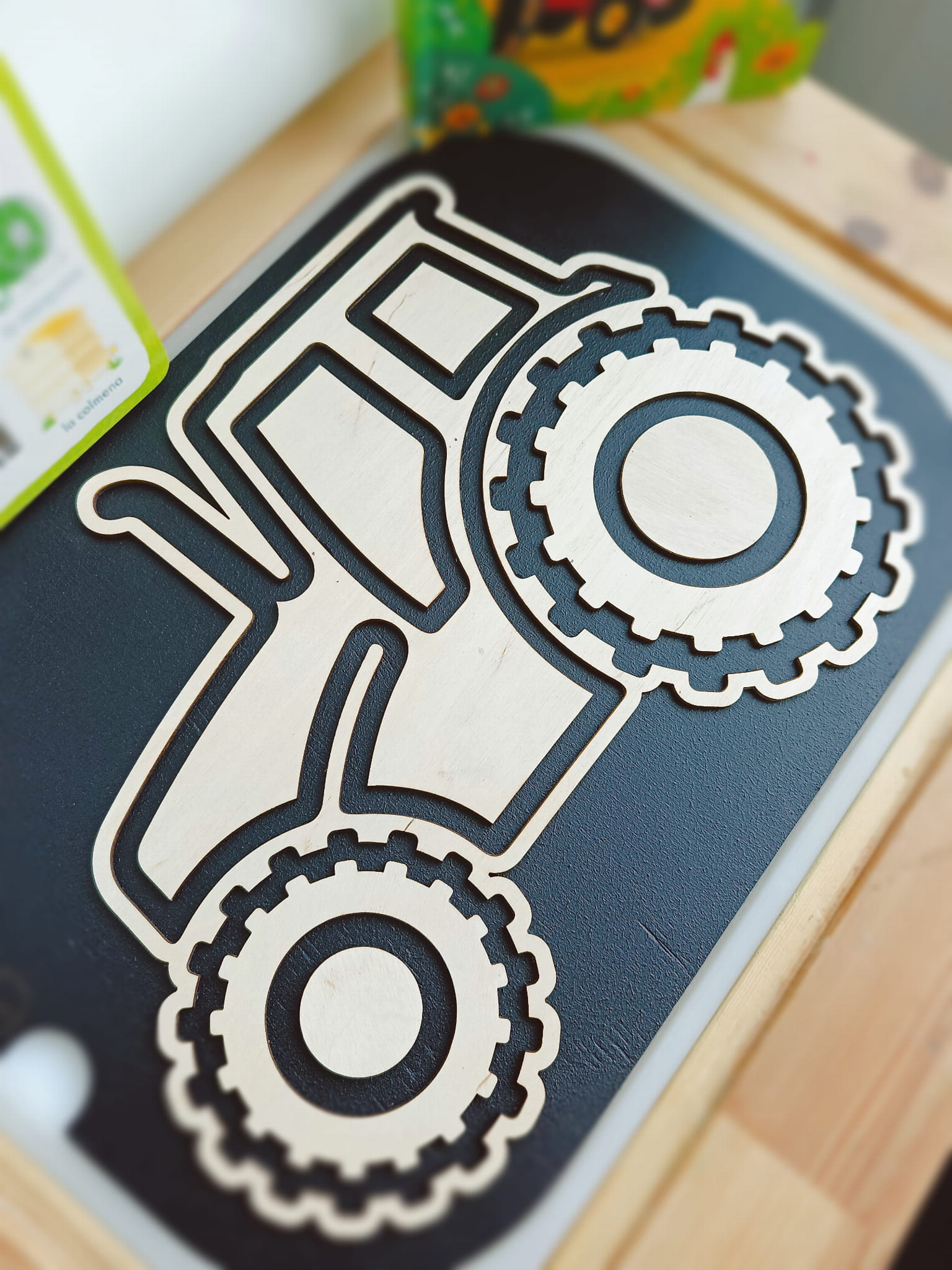 Drewniany traktor grafomotoryczny dla dzieci. Wkładka do stolika Ikea Flisat