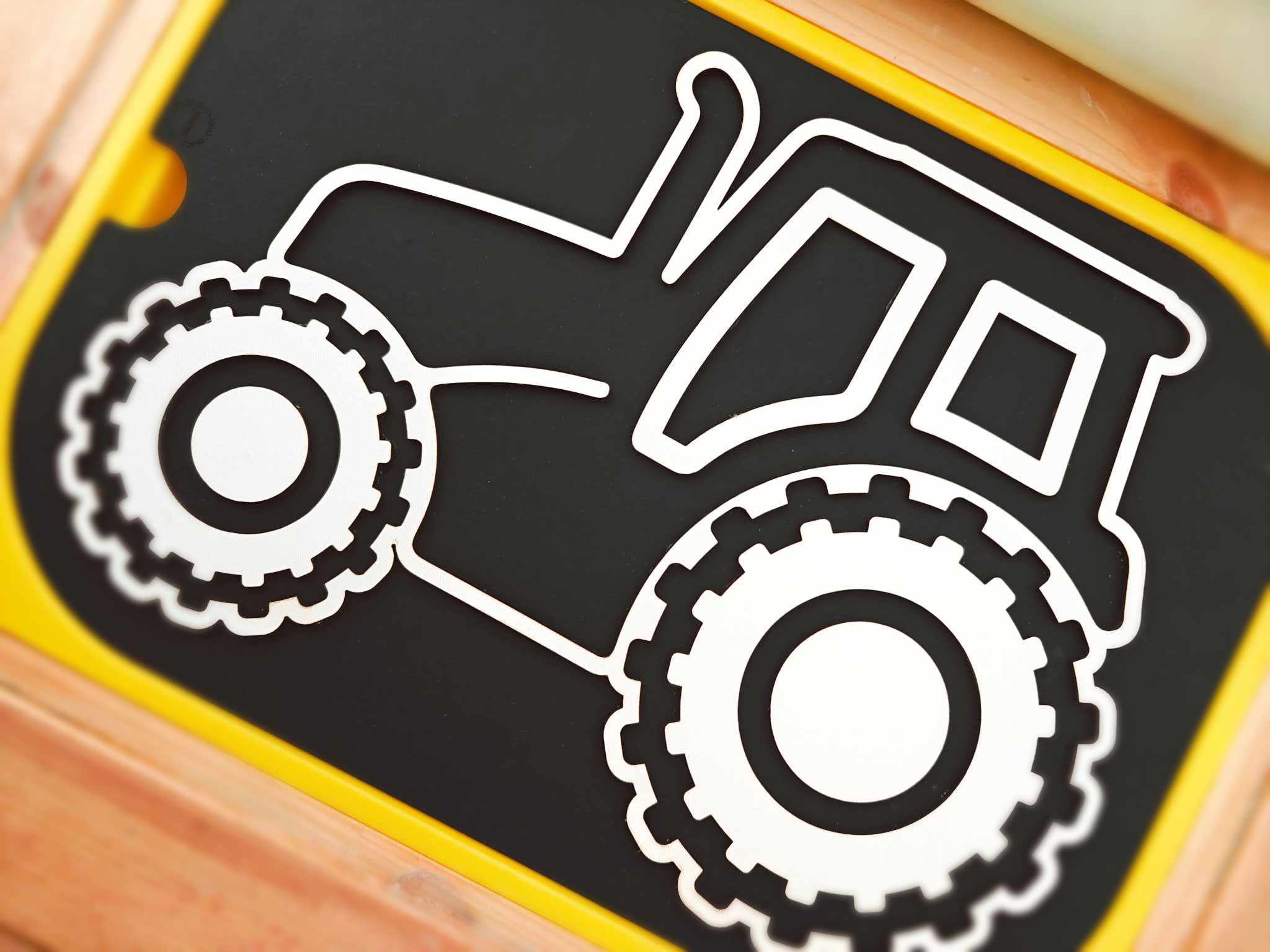 Ten wzór idealnie sprawdzi się do ćwiczenia motoryki małej i do zabawy dla fanów traktorów.