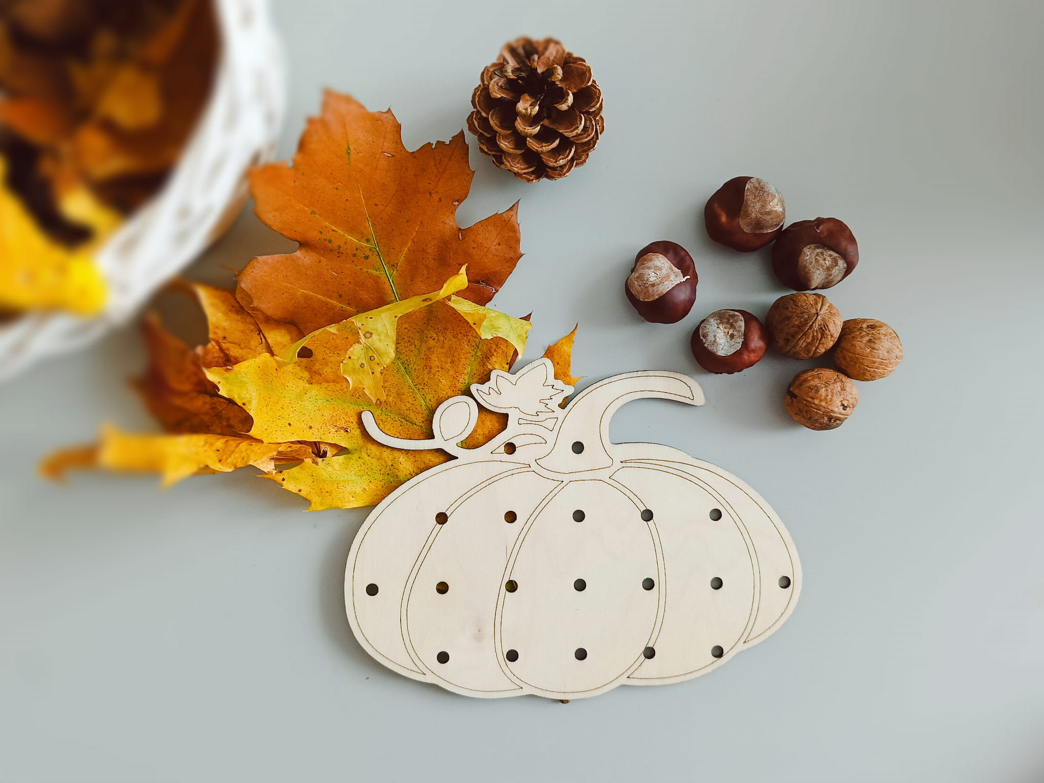 Szablon można wykorzystać z tablicą maxi z wieloma otworami , aby dodatkowo urozmaicić zabawę z tablicą oraz tworzyć kreatywne wzory. Wystarczy położyć szablon na tablicy i w dwóch miejscach zabezpieczyć gwoździkiem, tak aby szablon się nie przesuwał, a następnie wykorzystać np. druciki kreatywne, kolorowe piórka, gałązki, makaron itp. do ozdabiania szablonów.