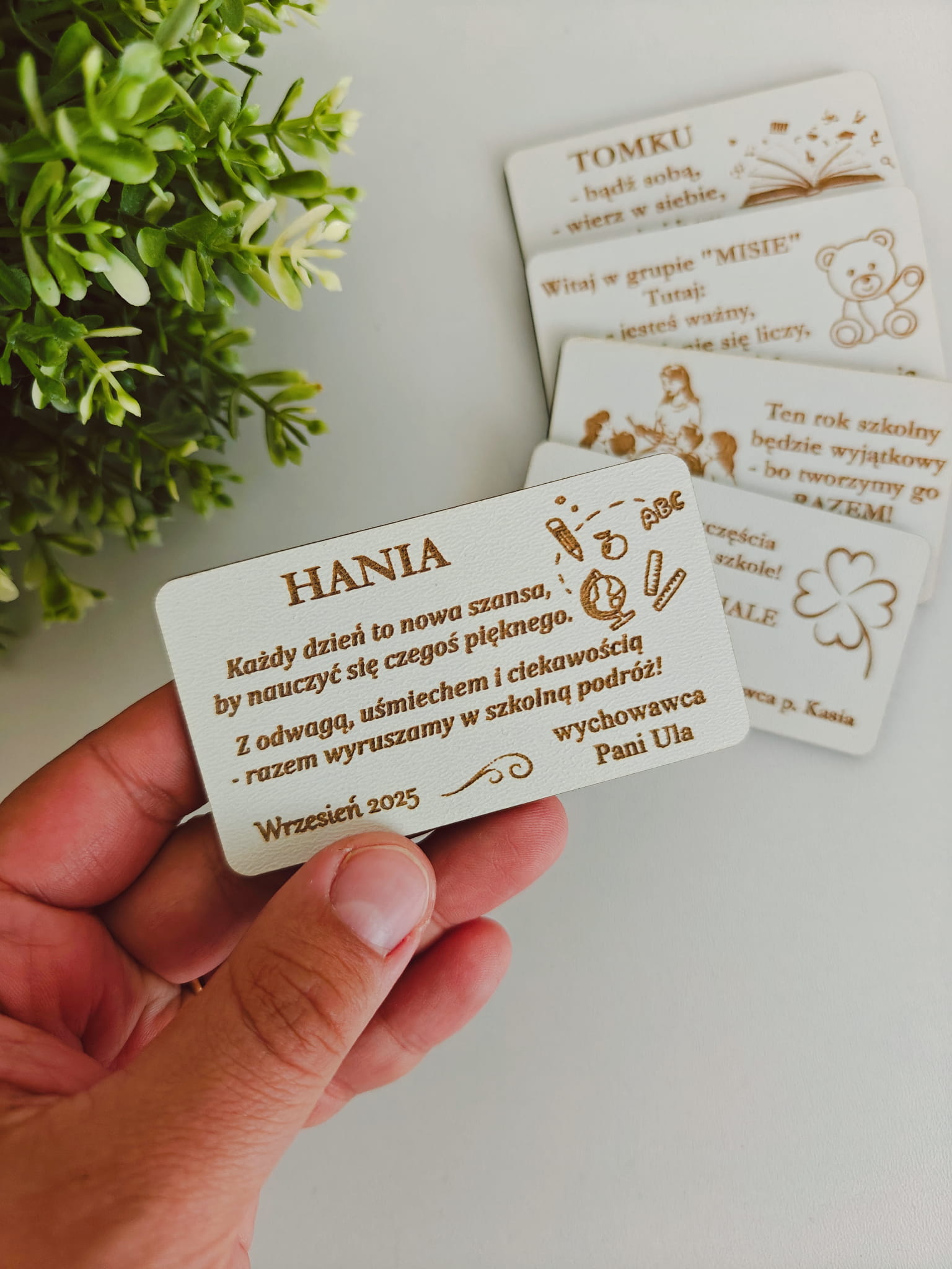 Rozpocznij nowy rok szkolny w wyjątkowy sposób! Drewniane, personalizowane magnesy z imieniem dziecka i krótkim, motywującym tekstem to piękna pamiątka oraz serdeczny gest powitania. Doskonale sprawdzą się jako upominek od wychowawcy dla uczniów klas I–III, przedszkolaków oraz dzieci z oddziałów zerowych.