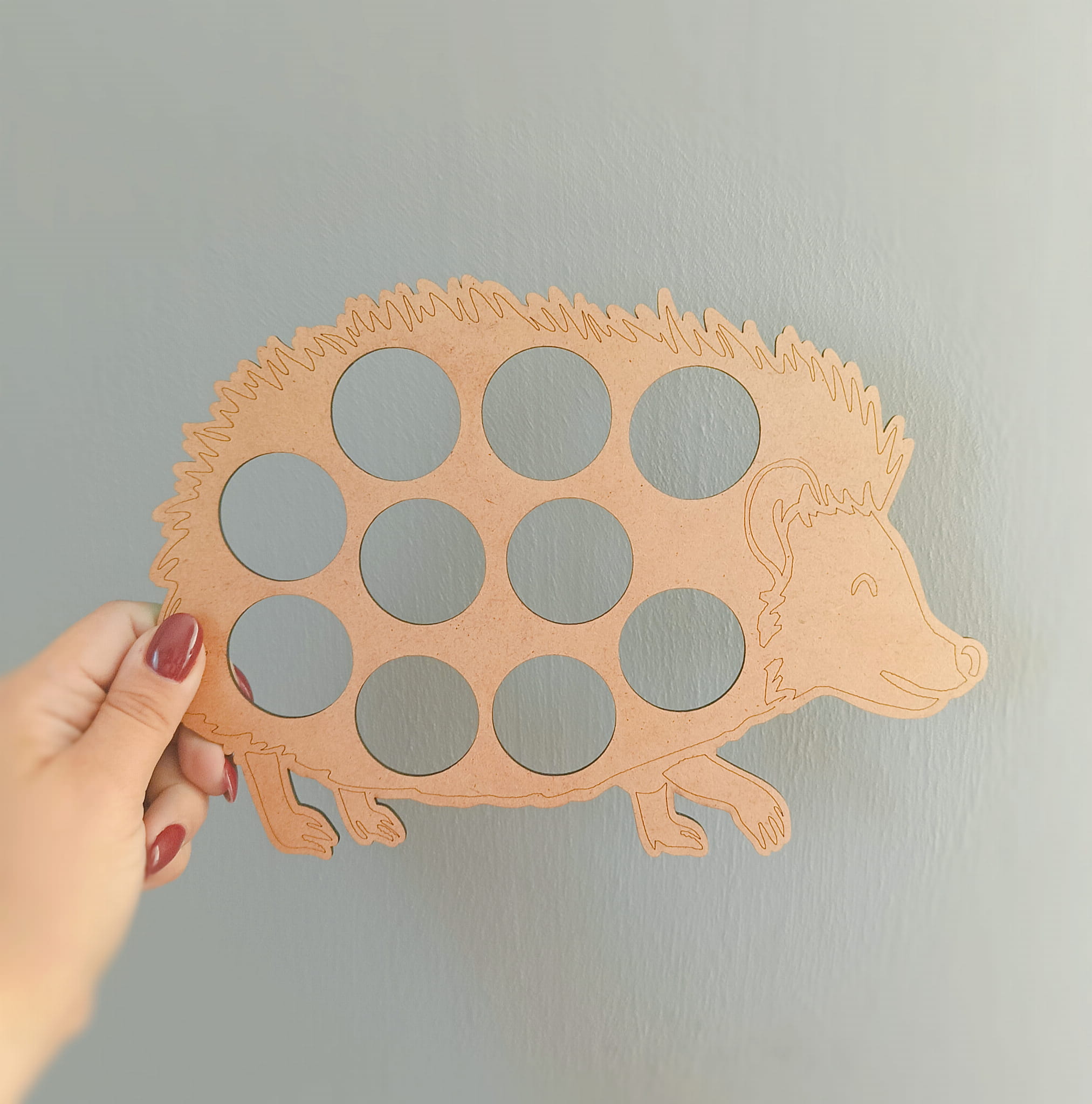 2. Wariant 2: jeż + 10 drewnianych dwustronnych żetonów o średnicy 35mm (z jednej strony kolor, z drugiej strony cyfra wraz z oznaczeniem graficznym)