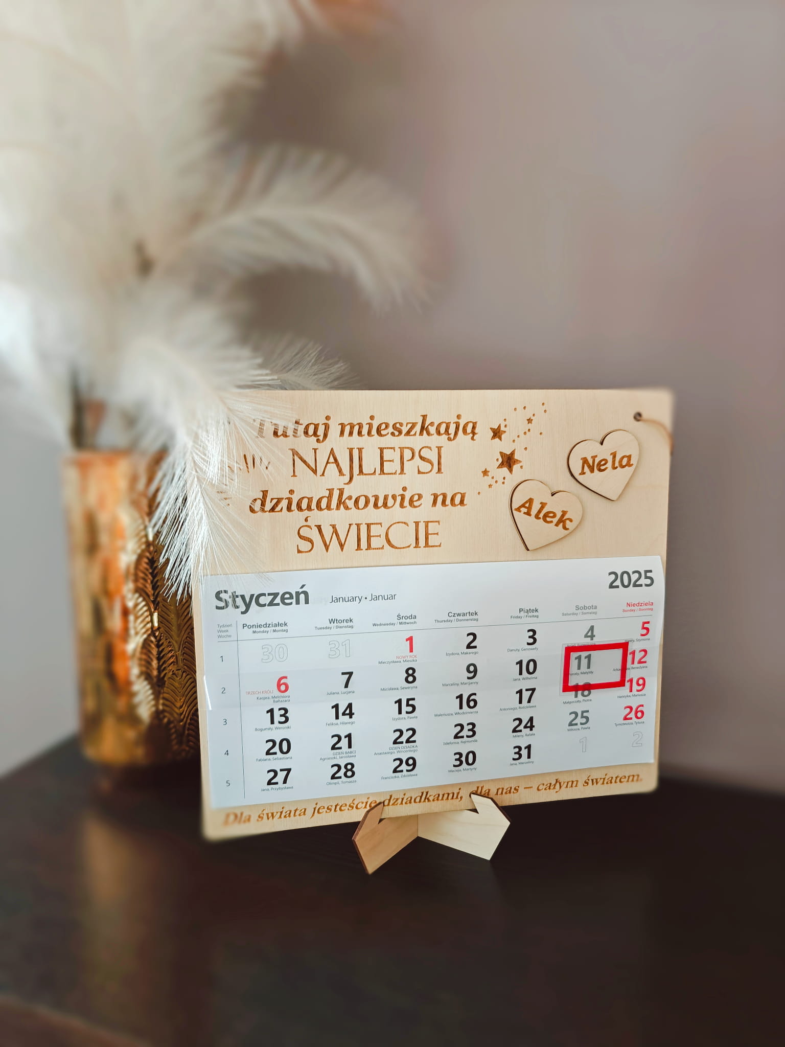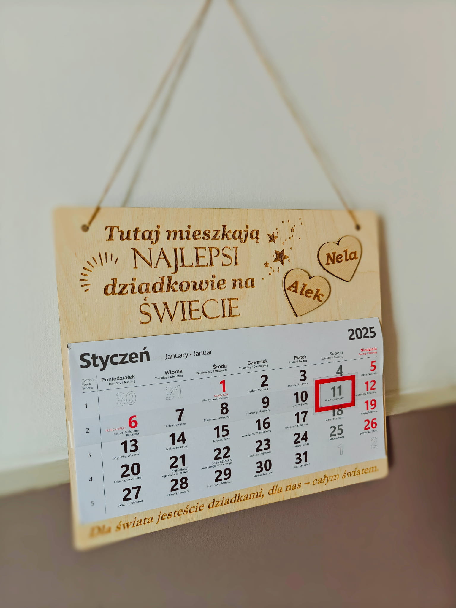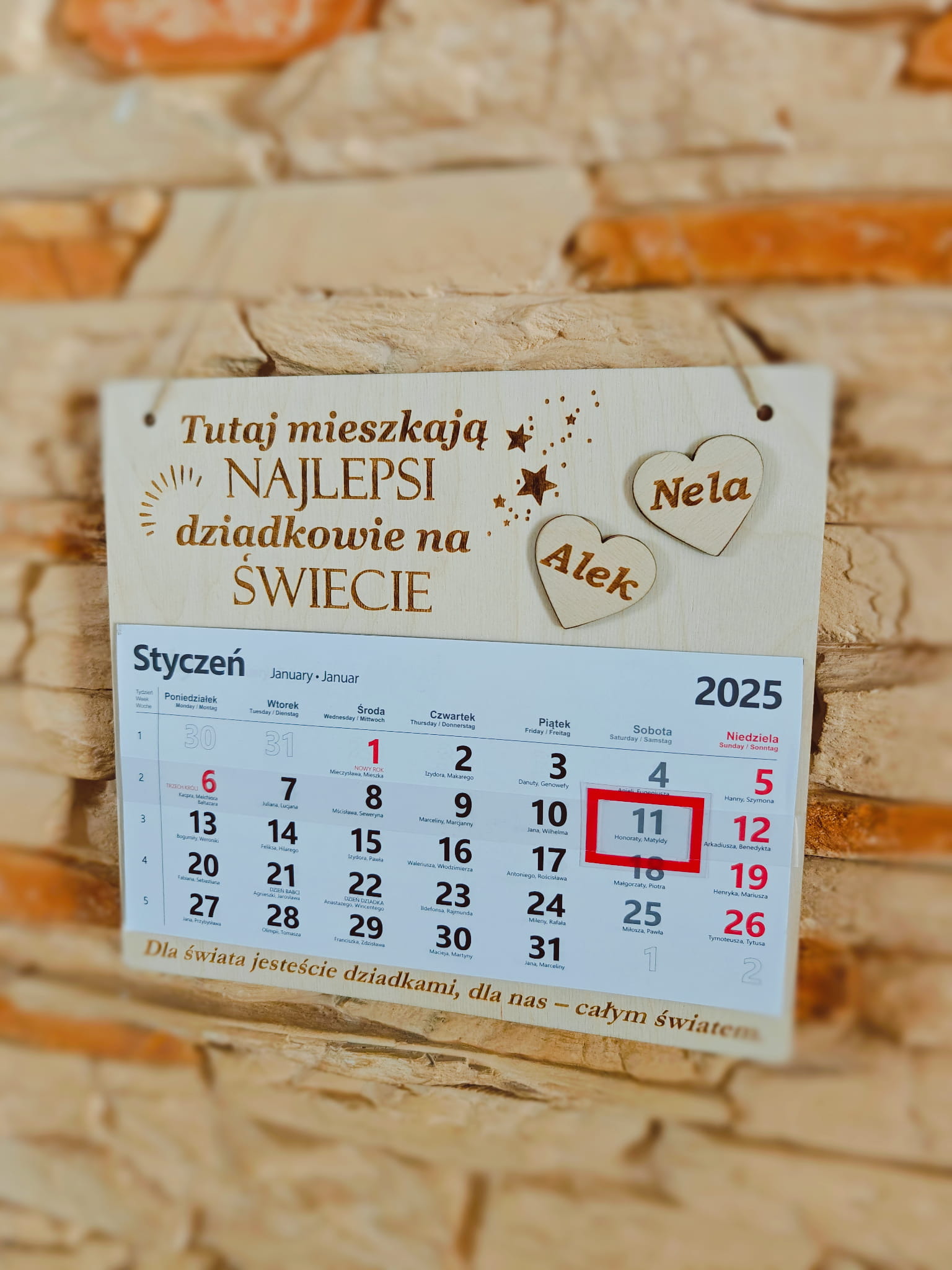 Kalendarz z dedykacją prezent dla Babci i Dziadka- drewniany personalizowany