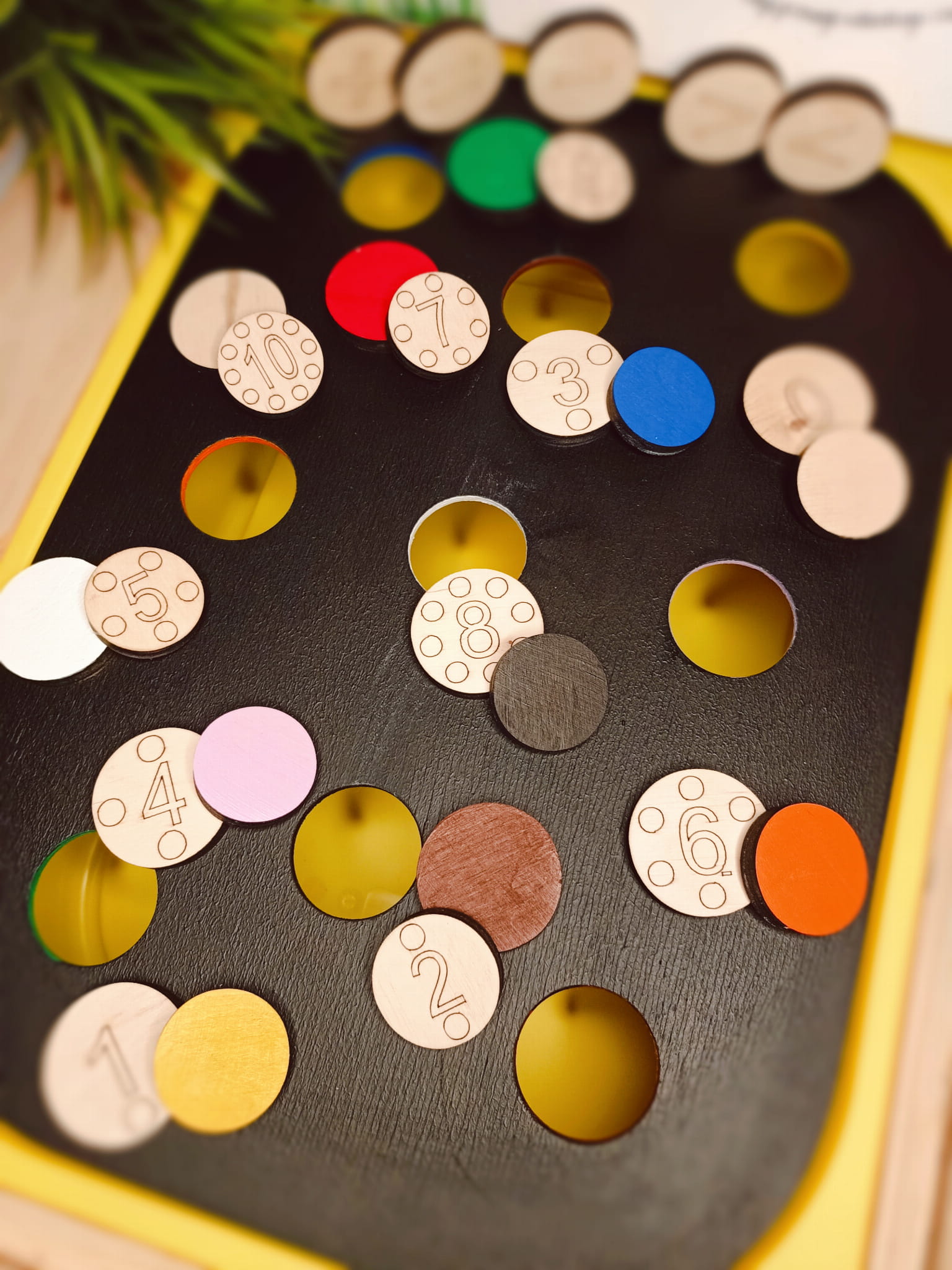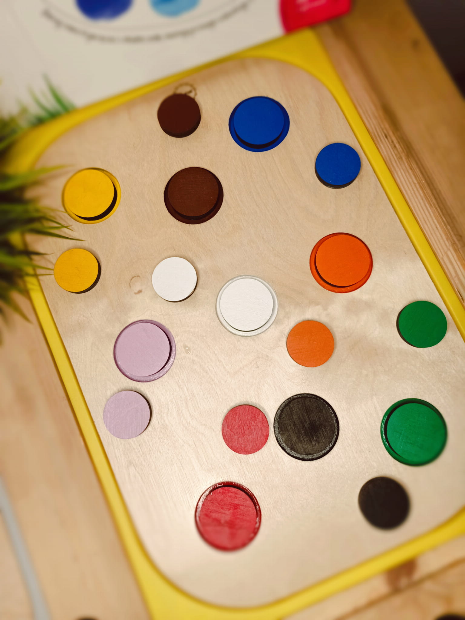 Dzięki swojej grubości żetony idealnie sprawdzą się zarówno do chwytania paluszkami, jak i nożycami lub szczypcami drewnianymi.
