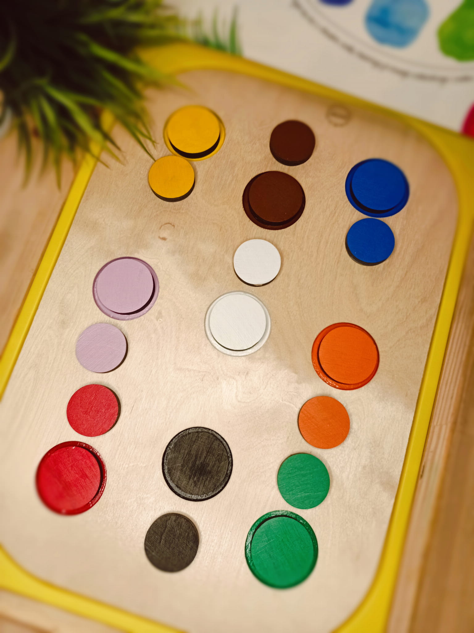Kolorowe dwustronne żetony to idealny dodatek do sorterów kolorów. Dzięki żetonom możecie urozmaicić kolorowe zabawy. Sprawdzą się również do swobodnych aktywności rozwijających kreatywność, a także umiejętności matematyczne i logiczne myślenie.