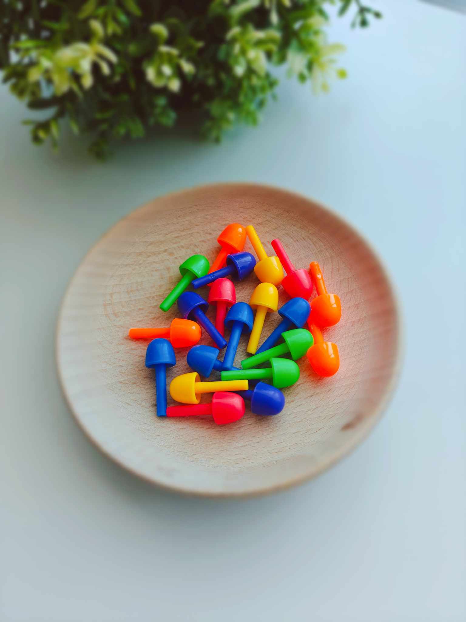 Zestaw 20 plastikowych pinezek (bez ostrych zakończeń), które pasują do tablic na pinezki - dostępnymi w naszym sklepie w kategorii "tablice na pinezki".