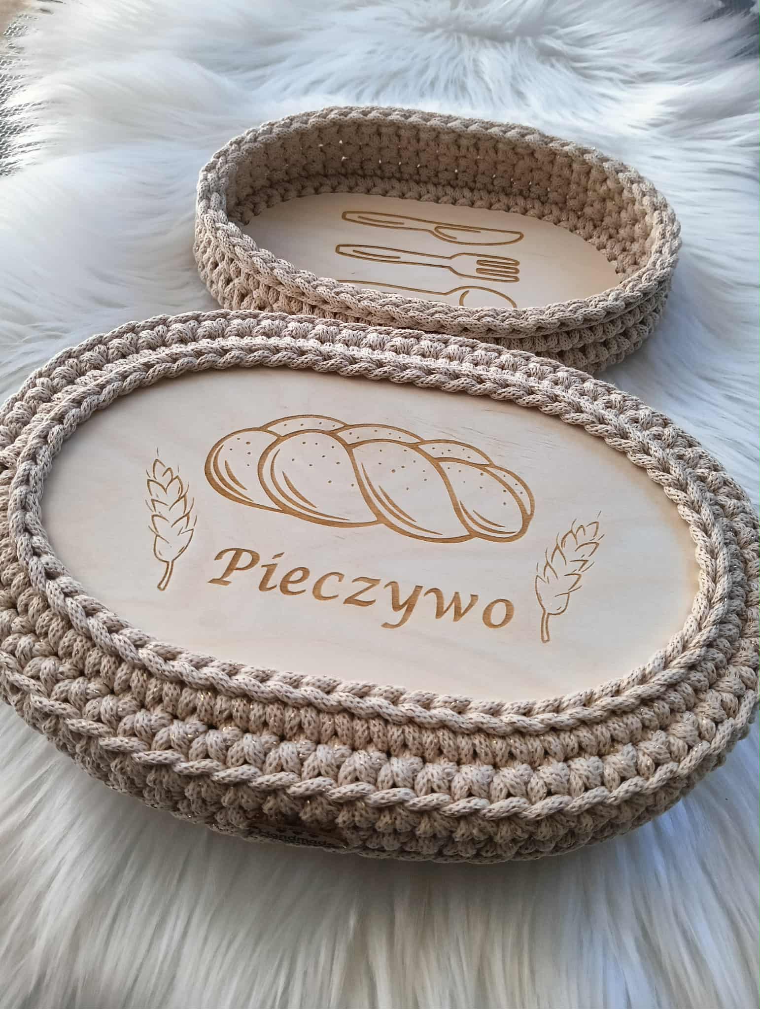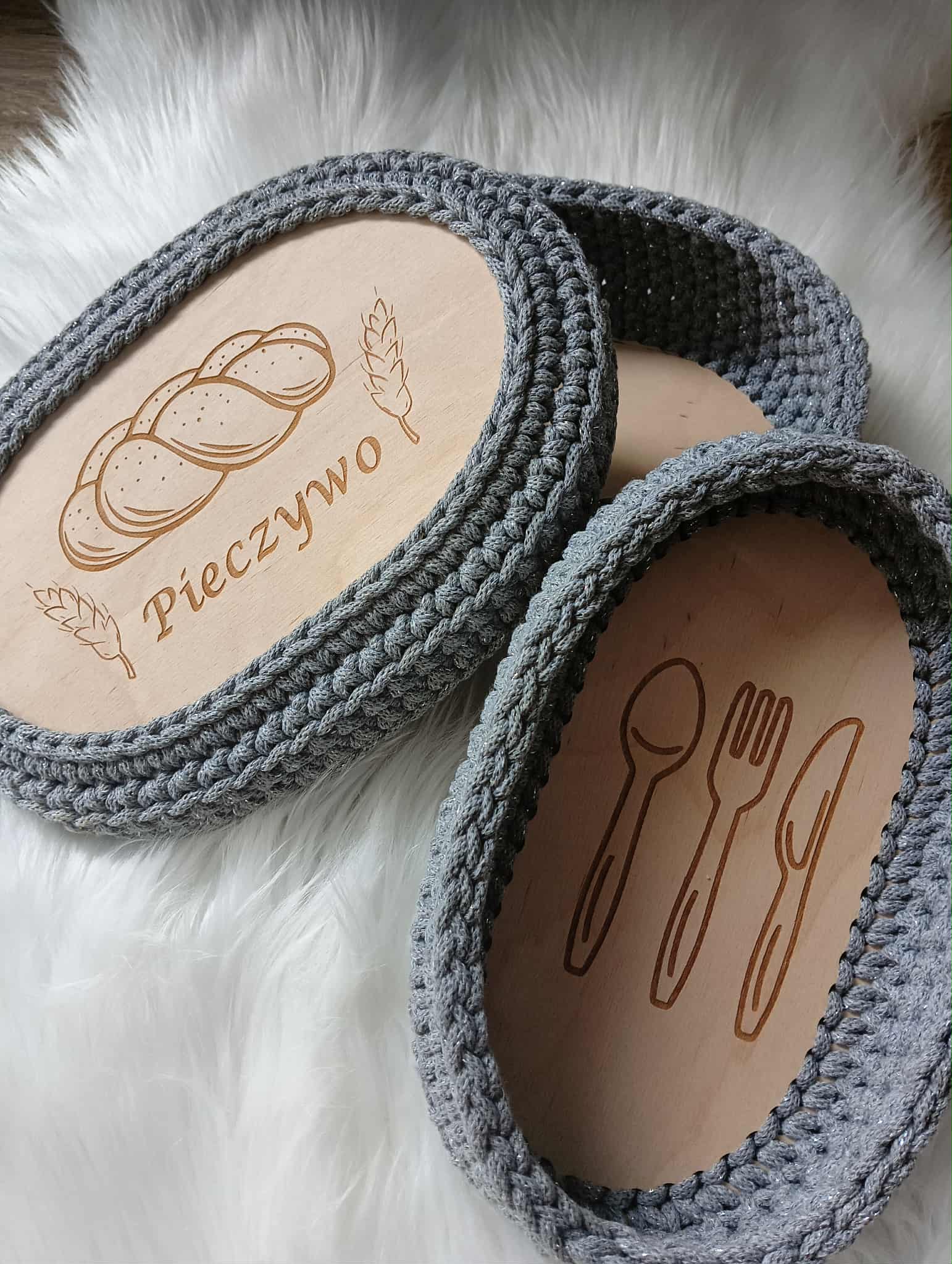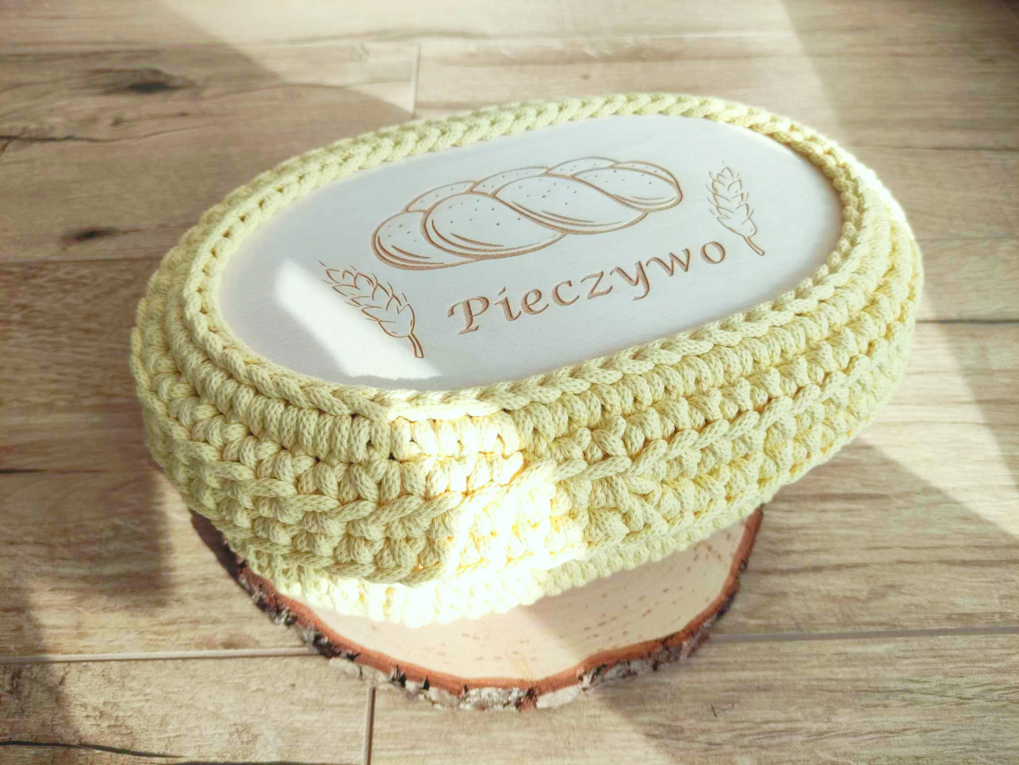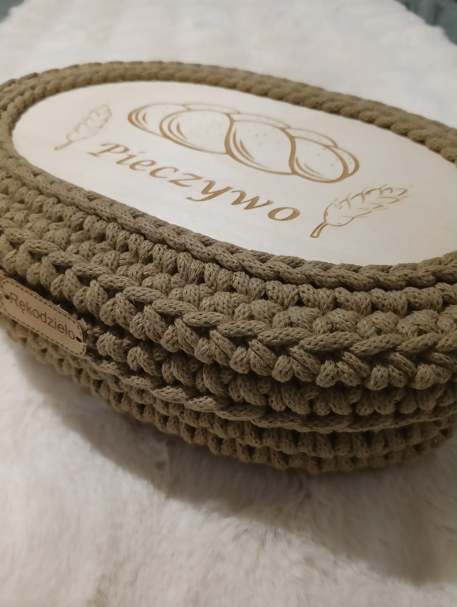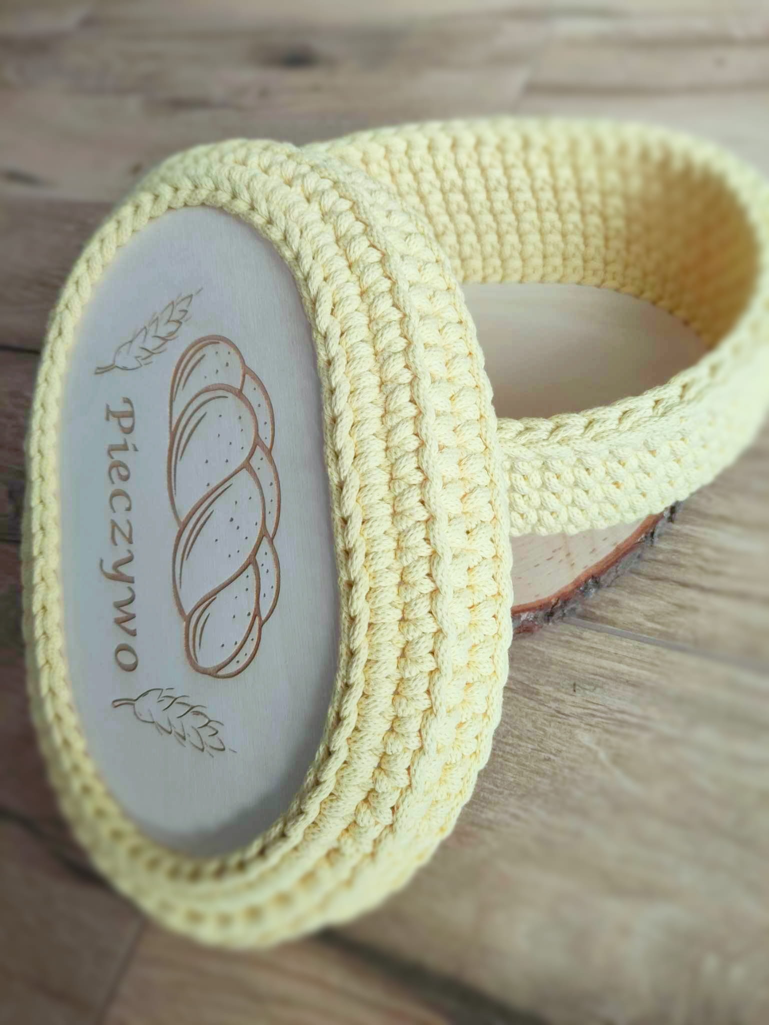 Ręcznie pleciony koszyczek na pieczywo z pokrywką ze sznurka bawełnianego 5mm.