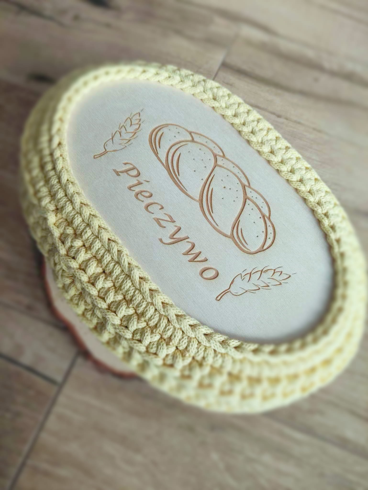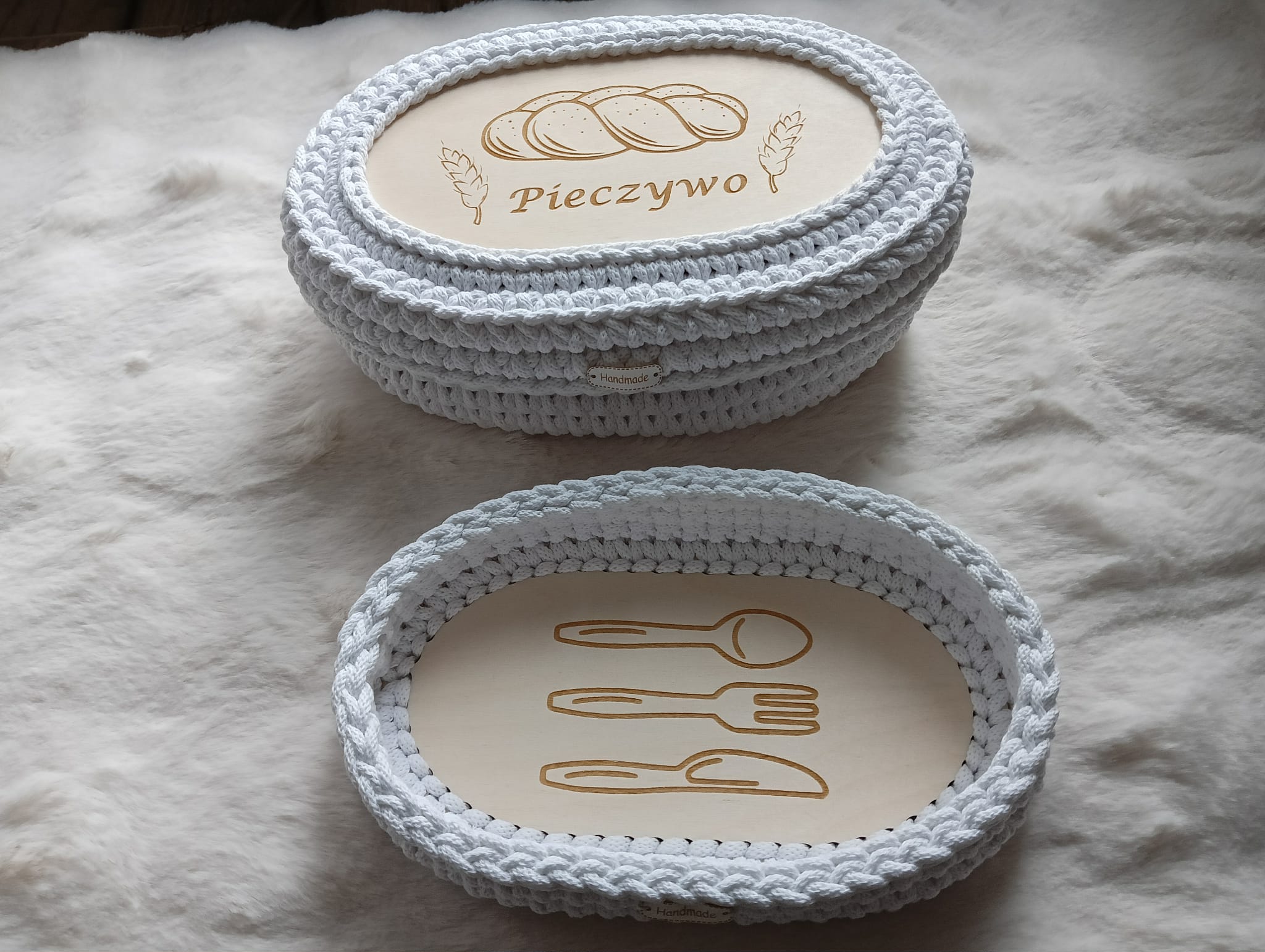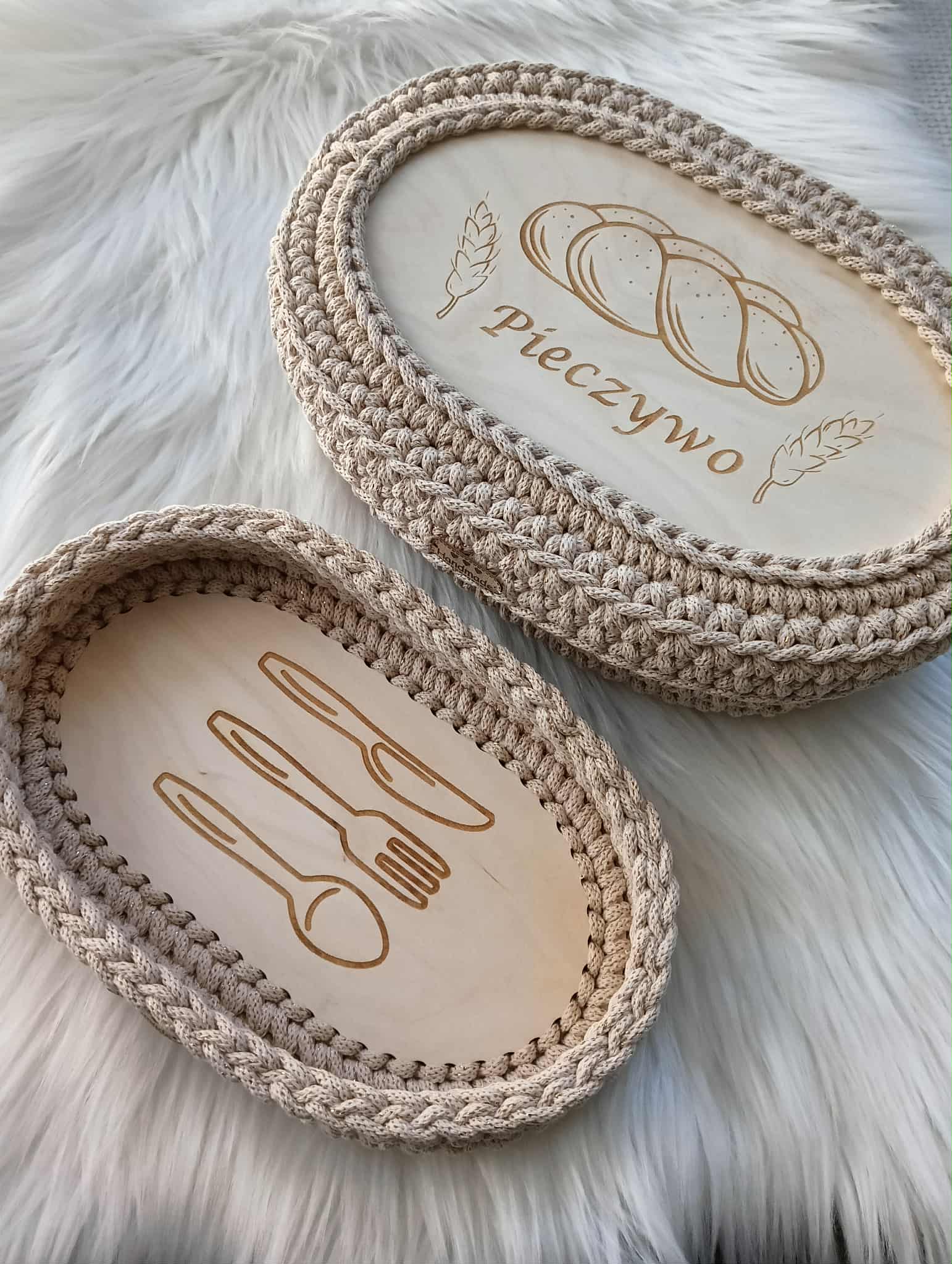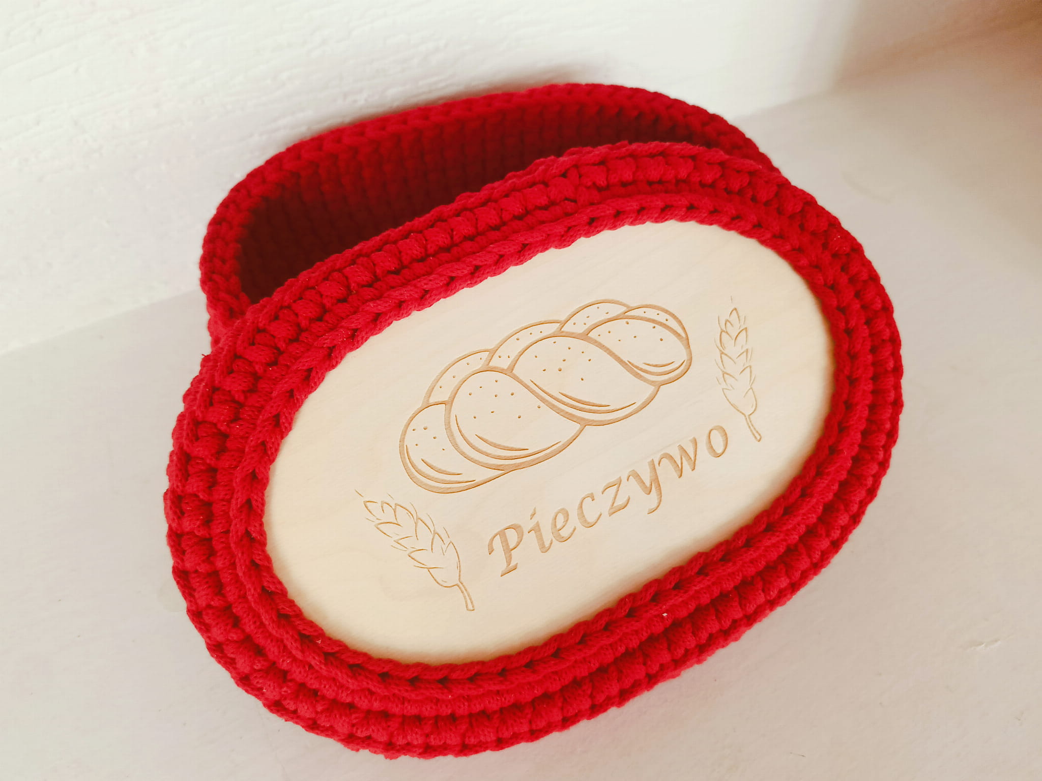 Ręcznie pleciony koszyczek na pieczywo z pokrywką ze sznurka bawełnianego 5mm.