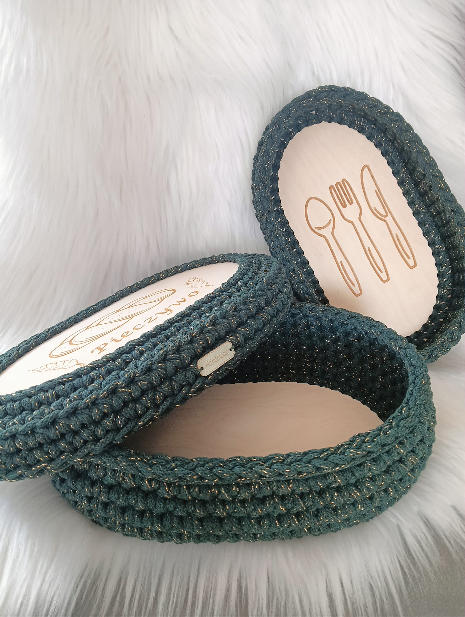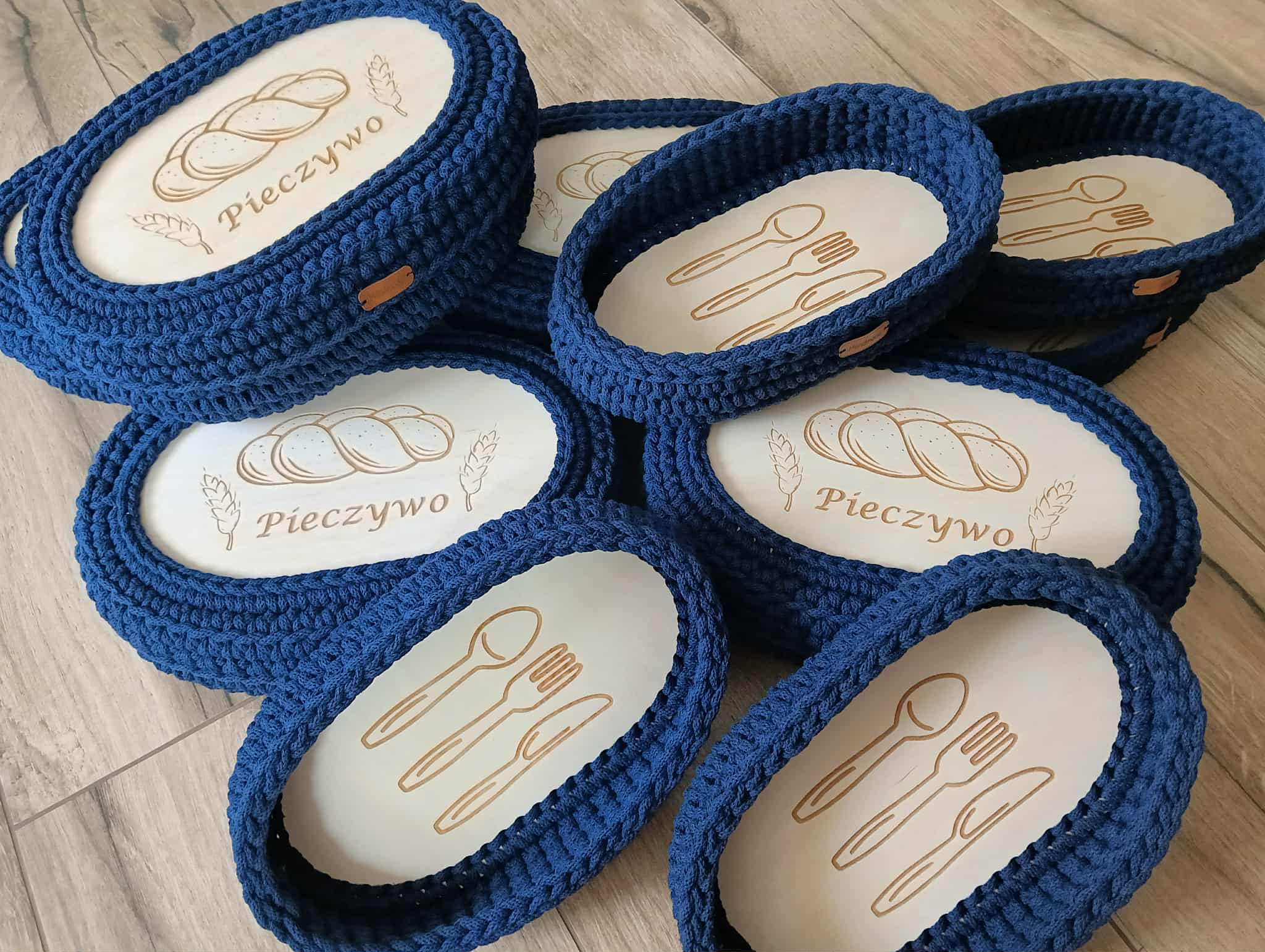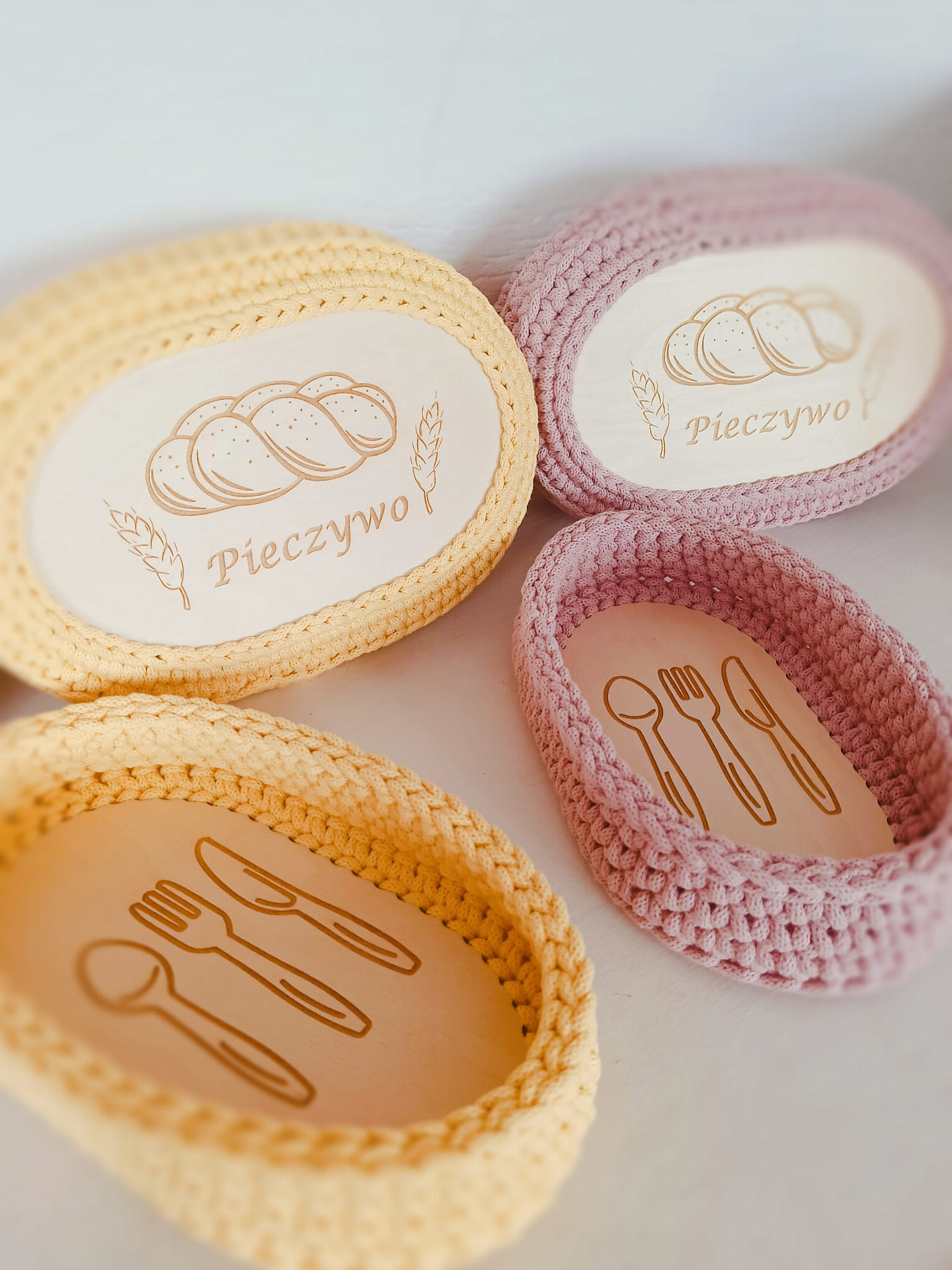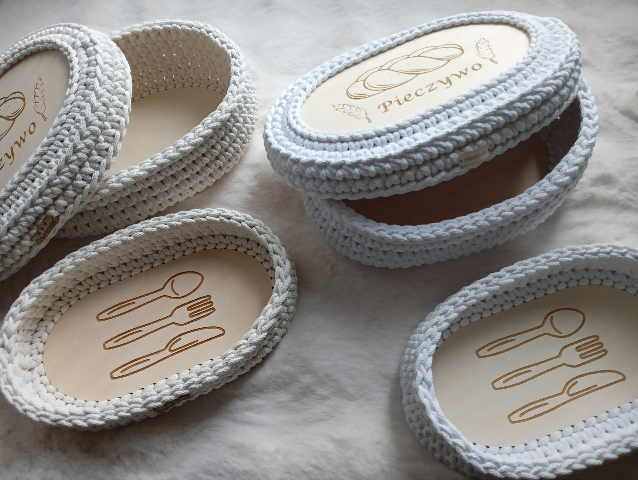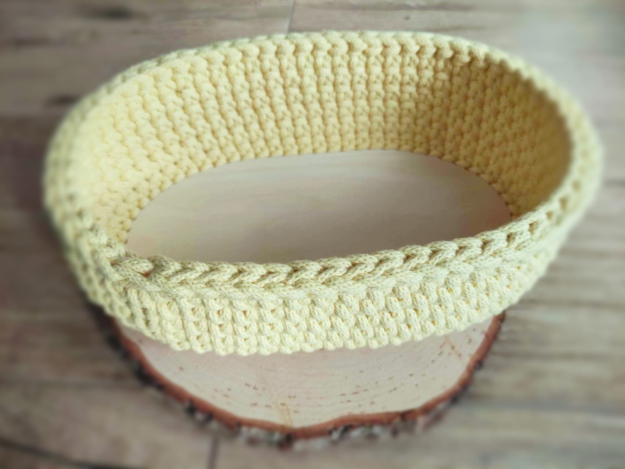 Ręcznie pleciony koszyczek na pieczywo z pokrywką ze sznurka bawełnianego 5mm.