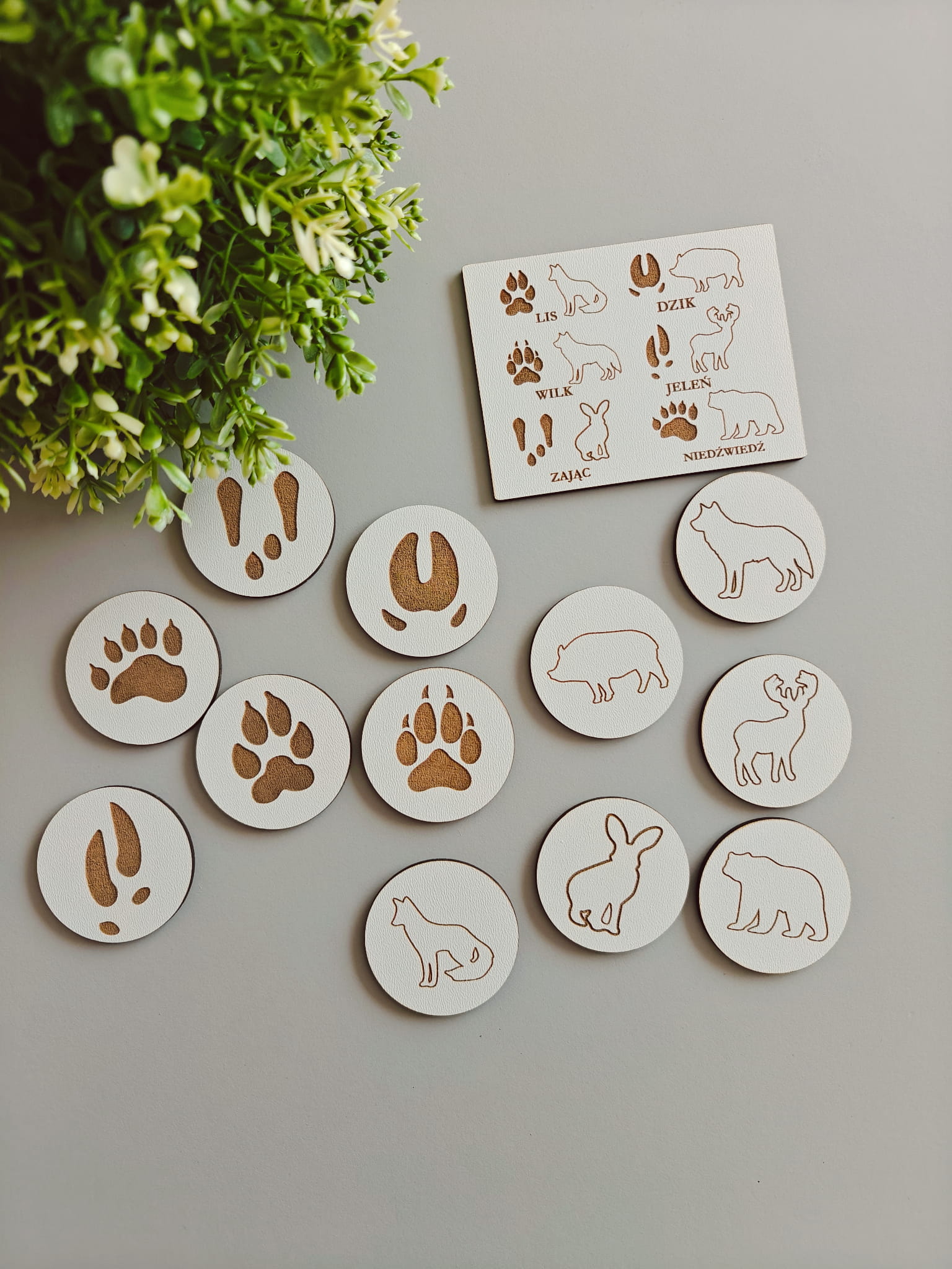 Leśne memory zwierzęta i ich tropy - drewniana gra pamięciowa dla dzieci