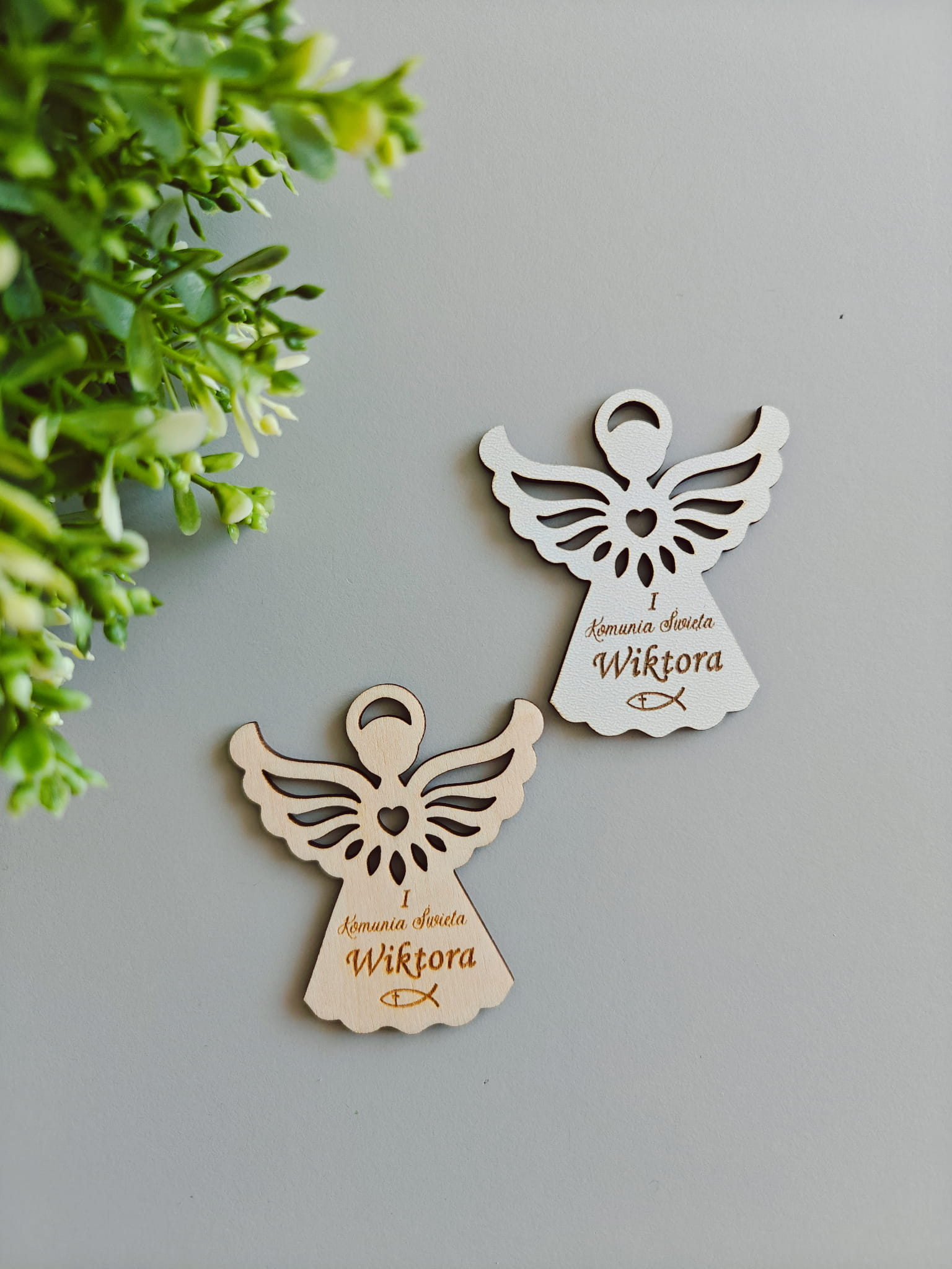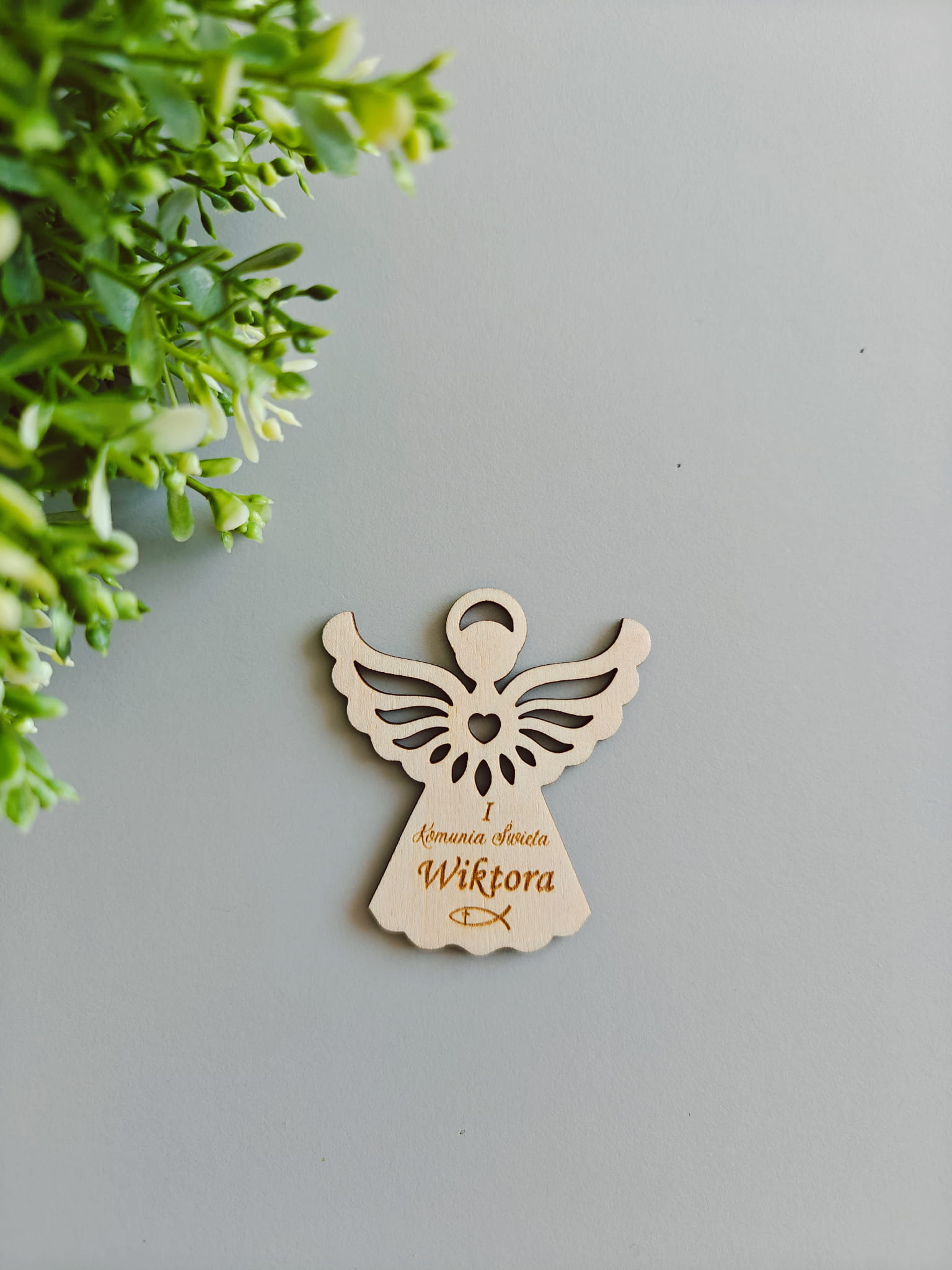Magnes drewniany Aniołek wzór 1 Podziękowanie Pierwsza Komunia Święta