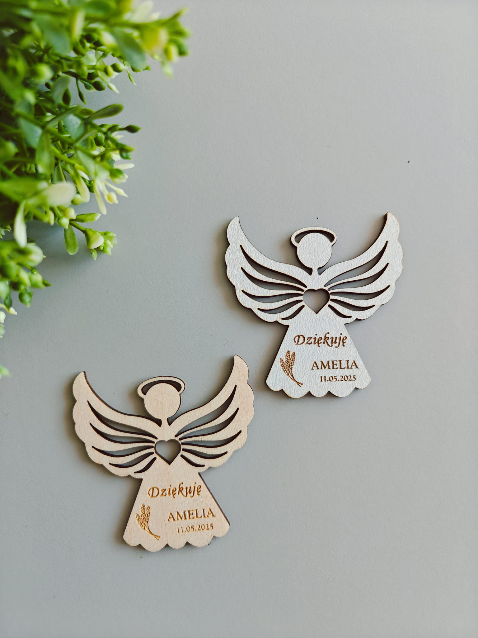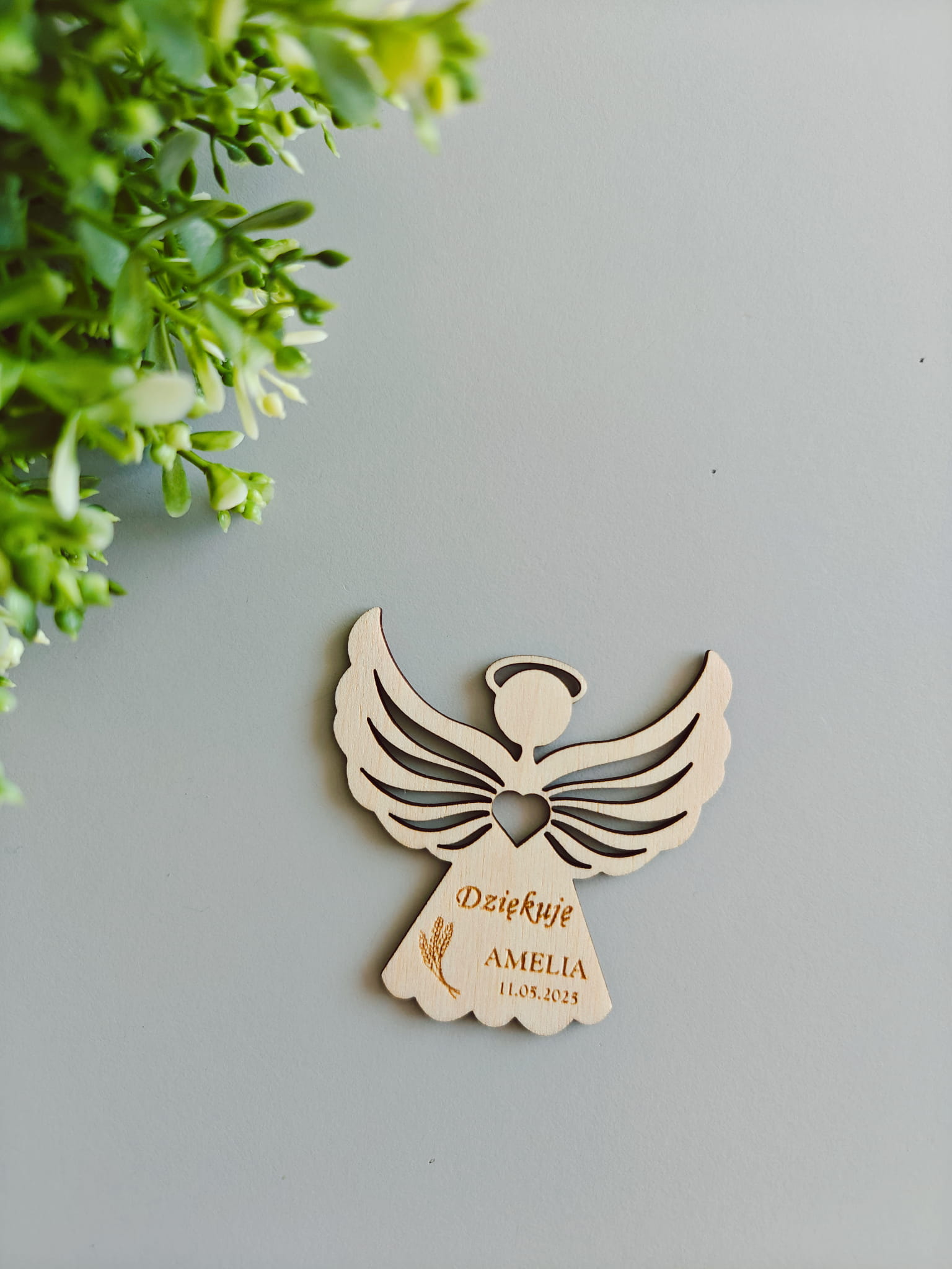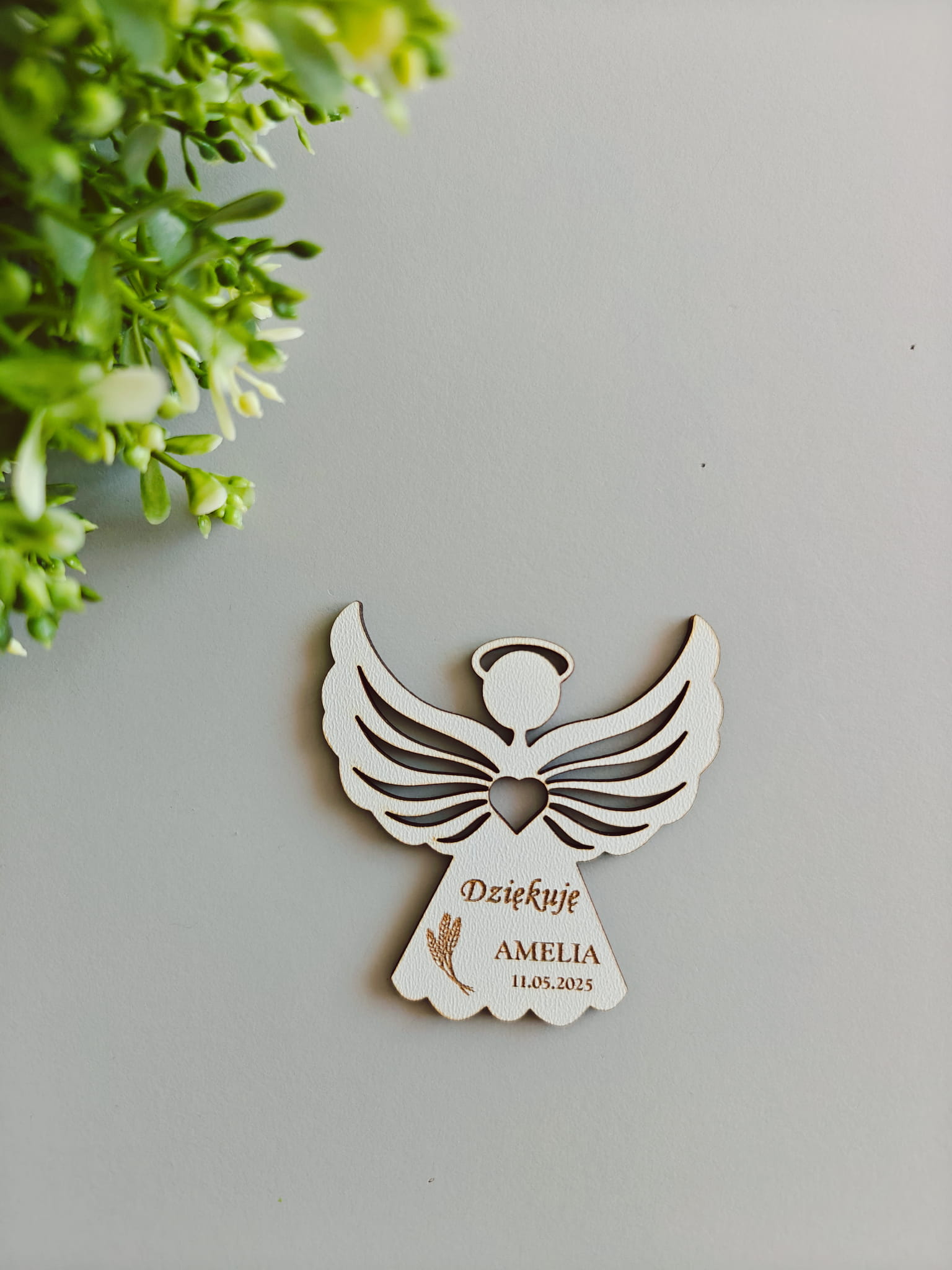 Magnes drewniany Aniołek wzór 2 Podziękowanie dla gości Chrzest Święty