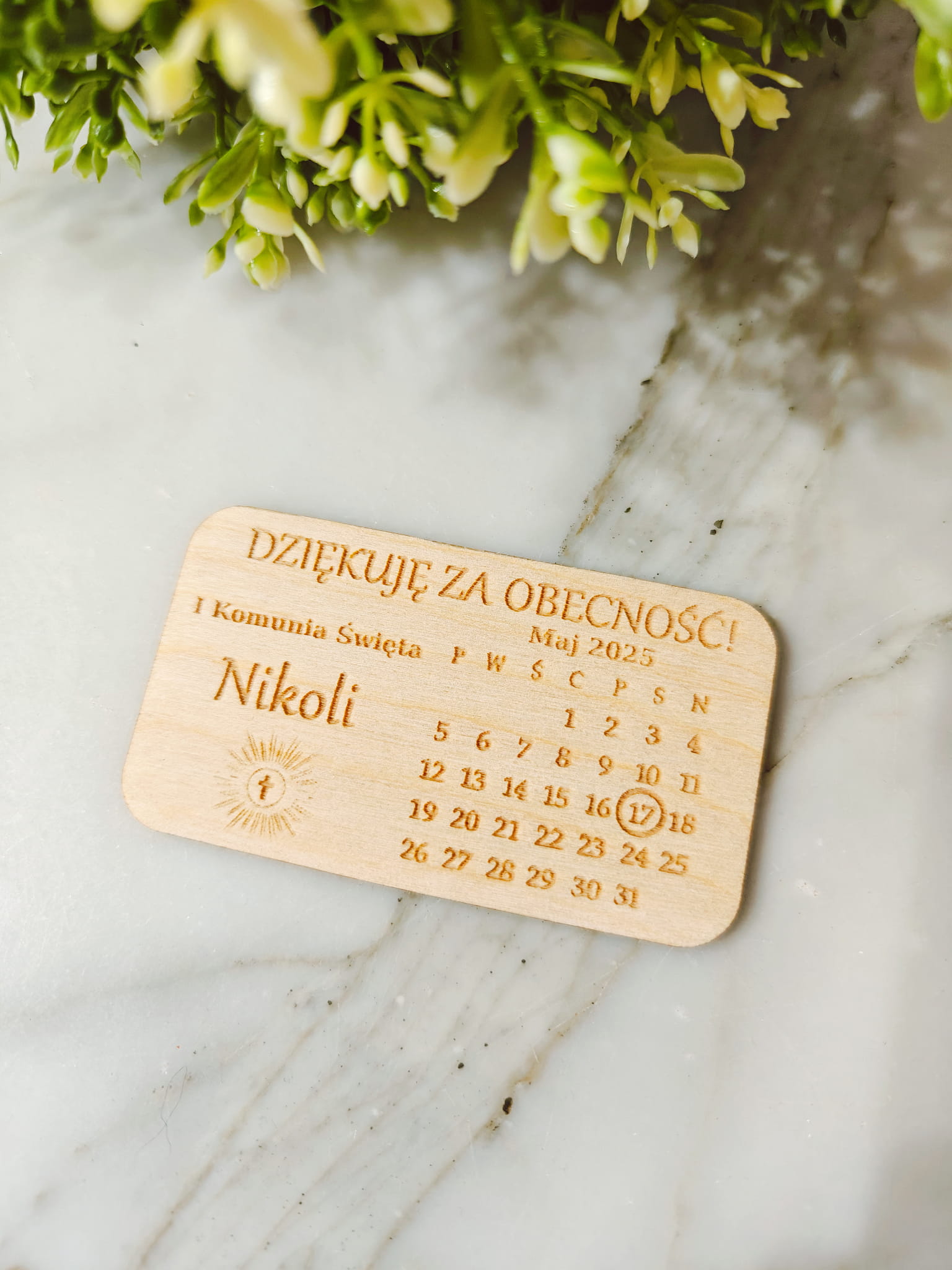 Magnes drewniany Kartka z kalendarza wzór 2 Podziękowanie Pierwsza Komunia Święta