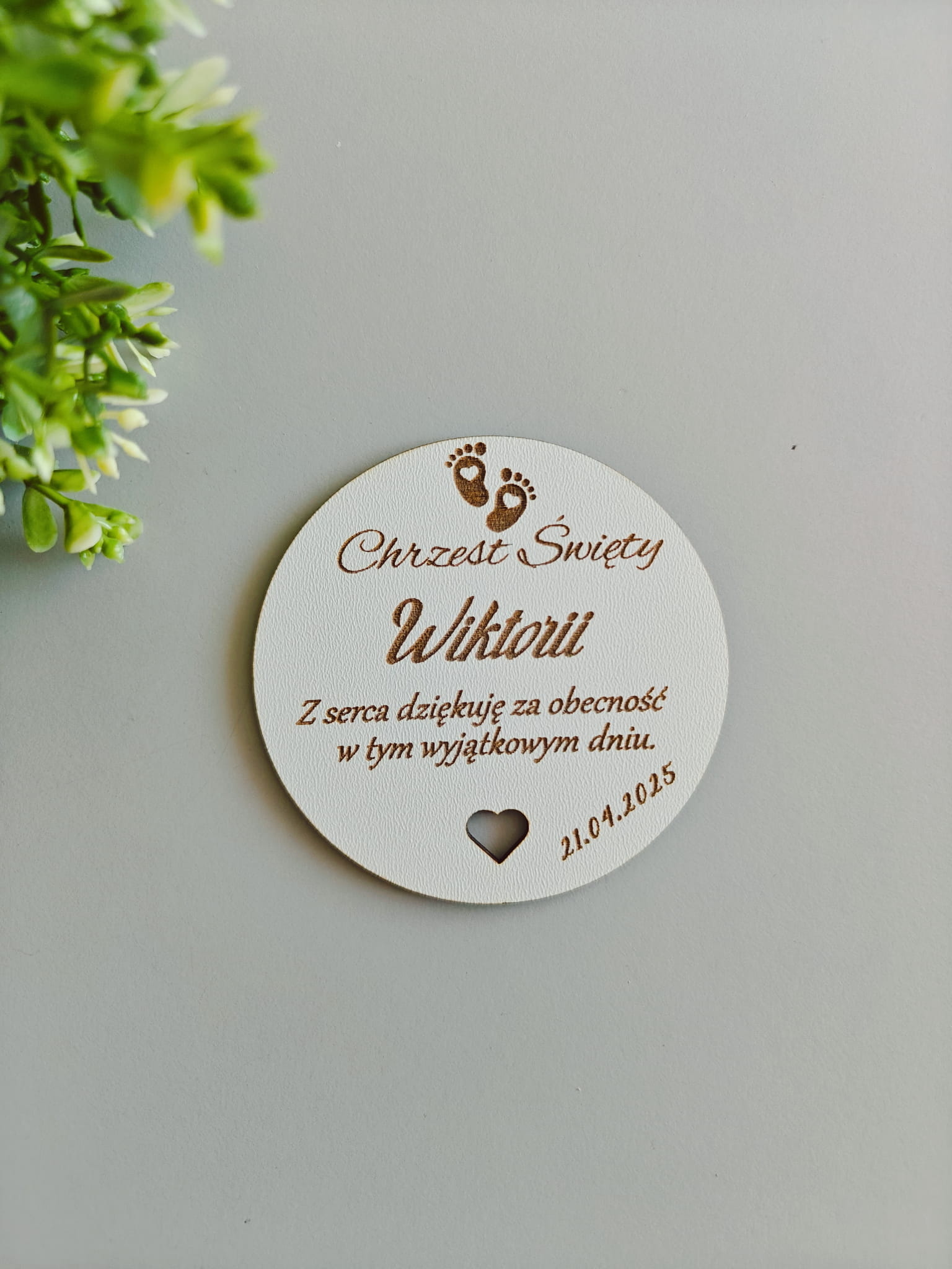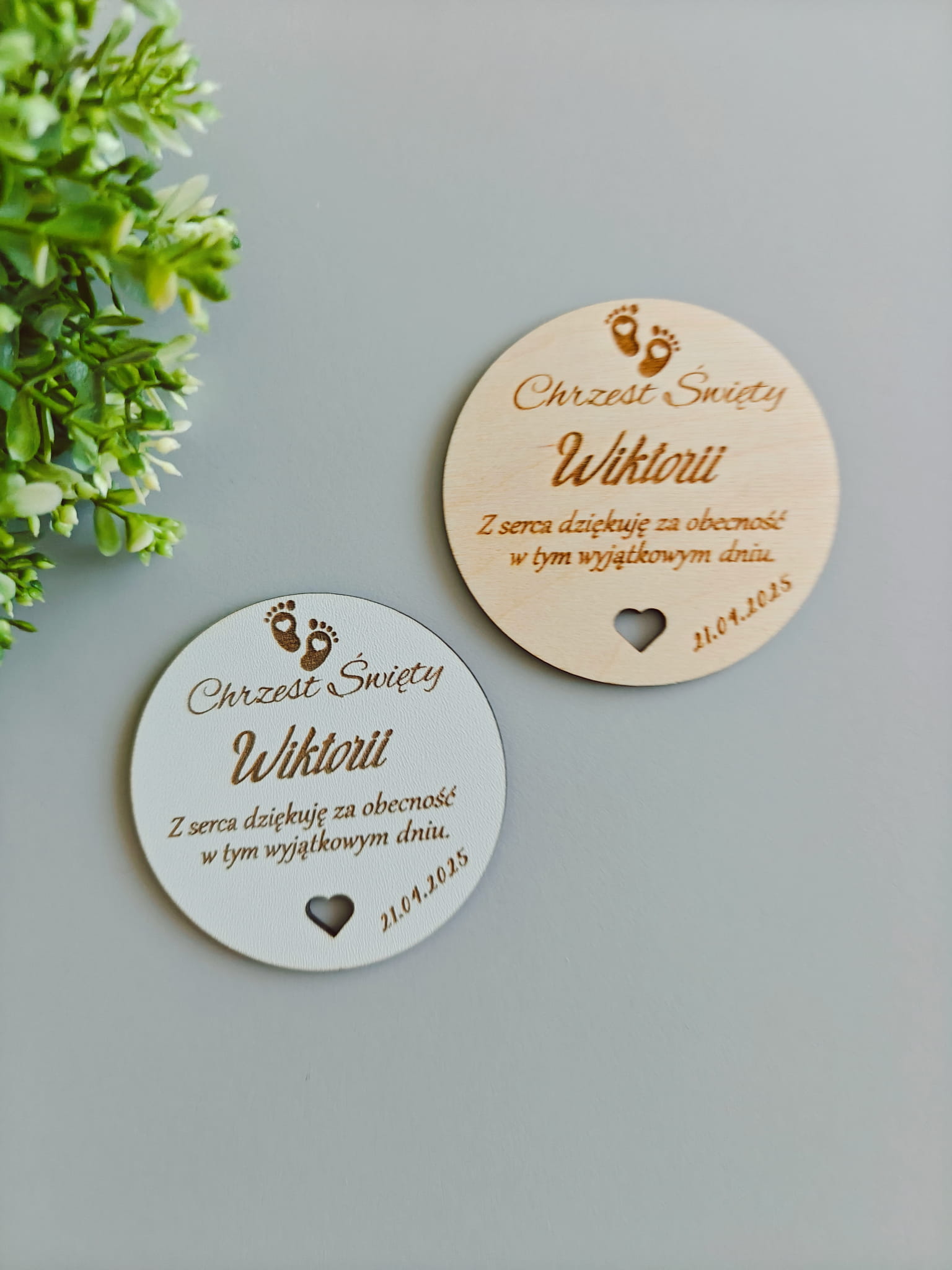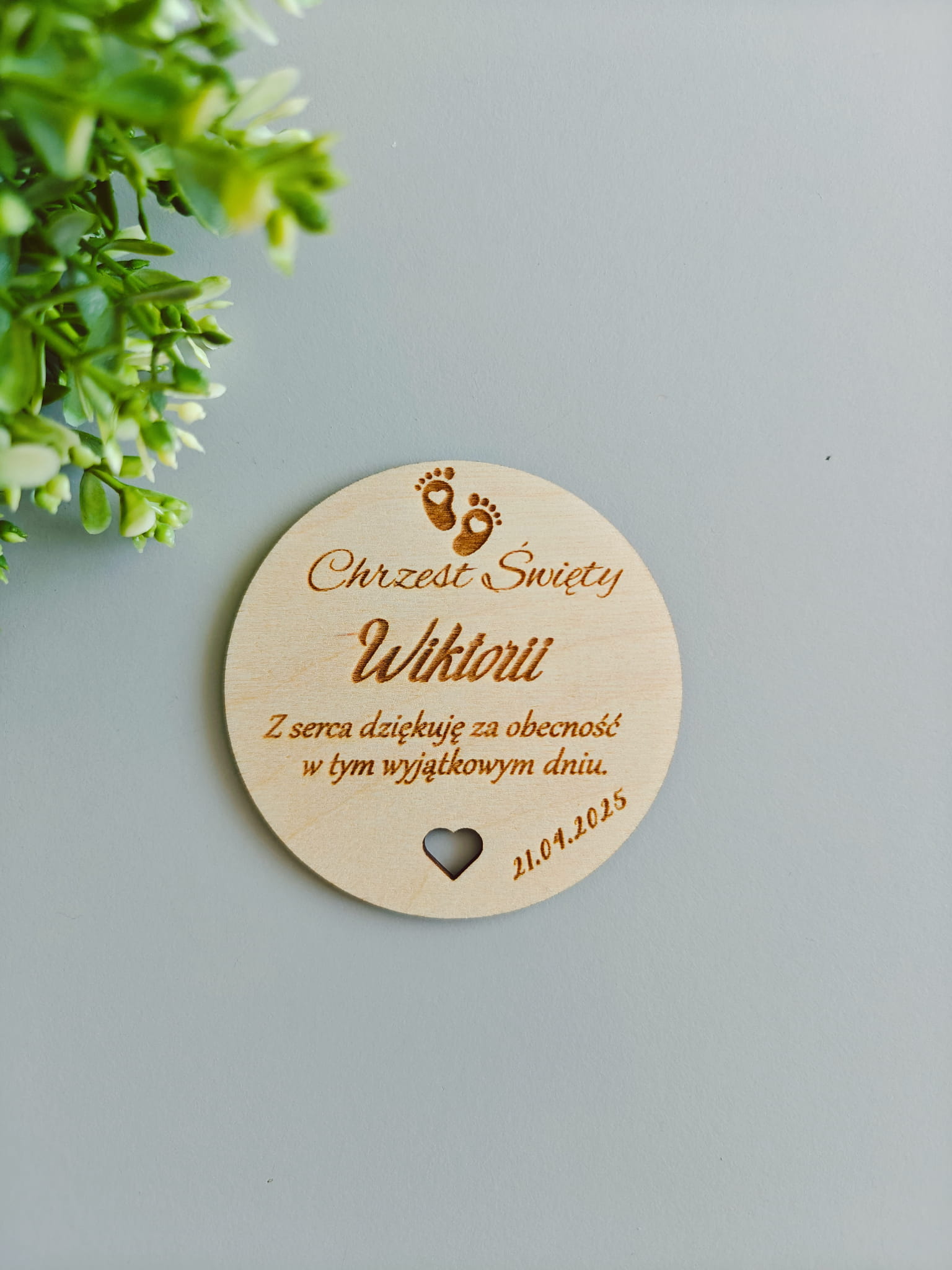 Personalizowane podziękowania dla gości z okazji Chrztu Świętego – magnesy drewniane