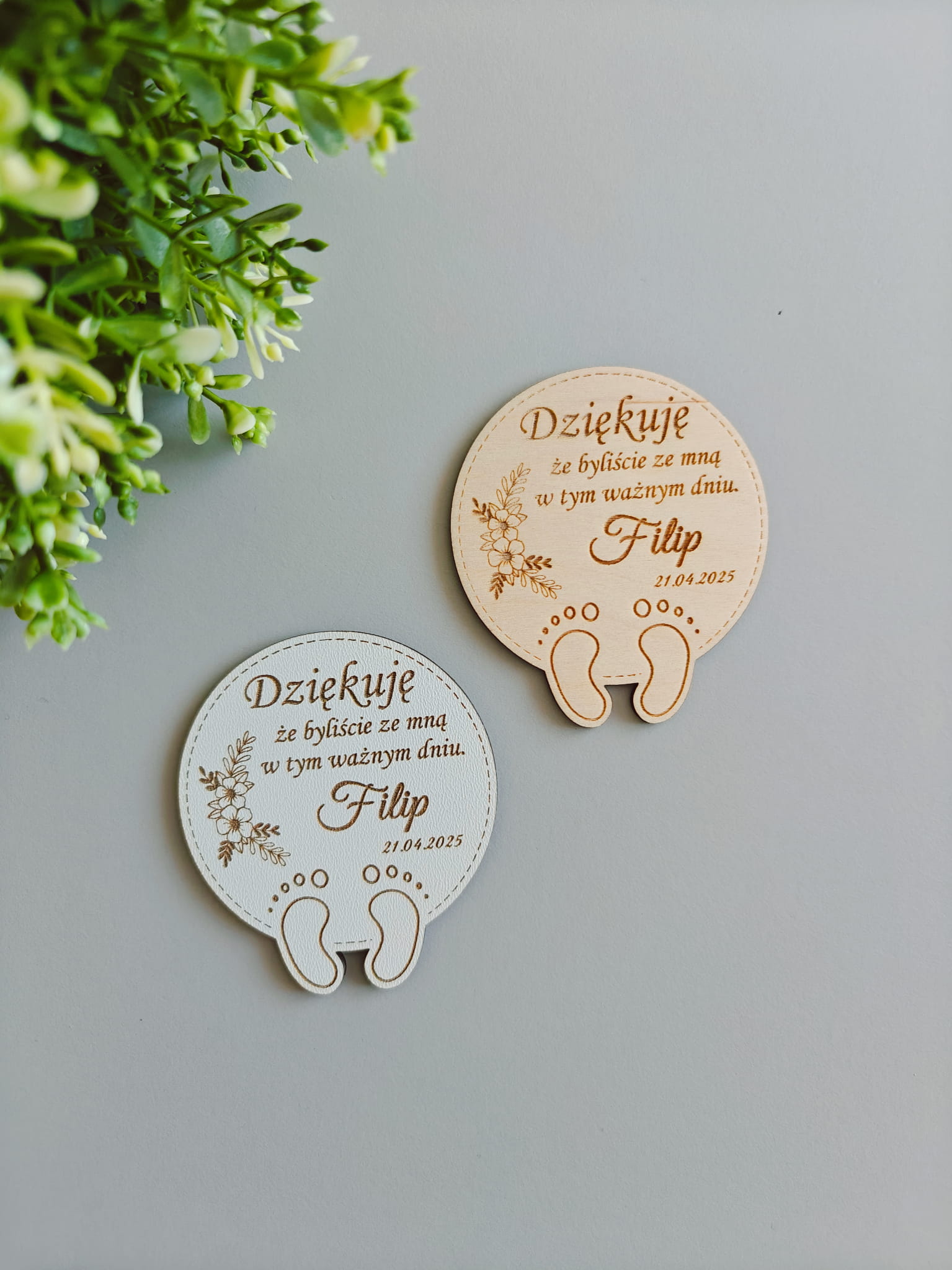 Personalizowane podziękowania dla gości z okazji Chrztu Świętego – magnesy drewniane