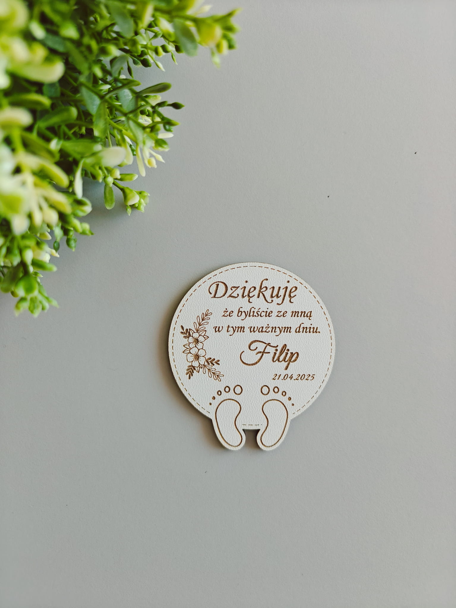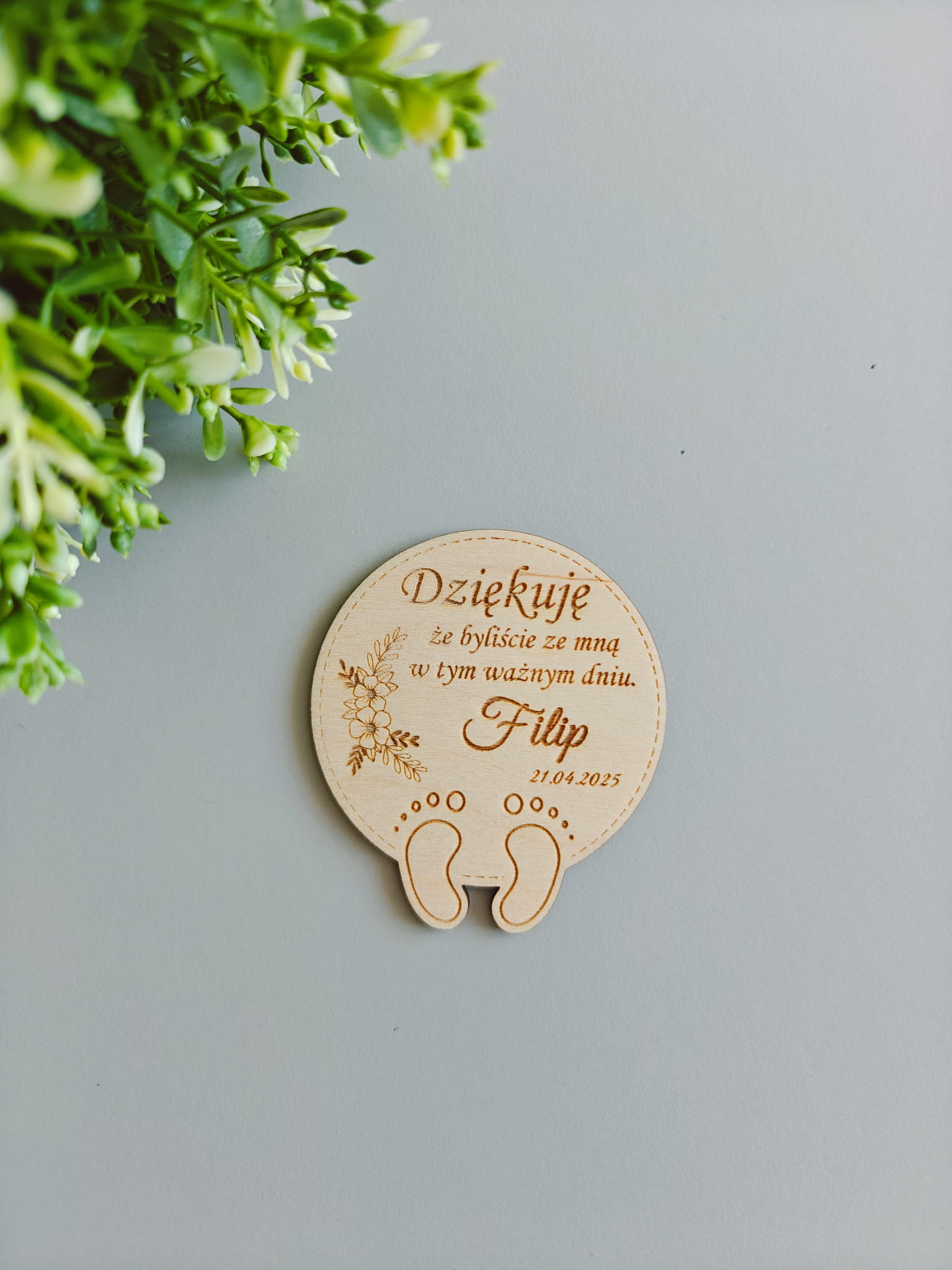 Magnes drewniany Okrąg stopy Personalizowane Podziękowanie dla gości Chrzest Święty