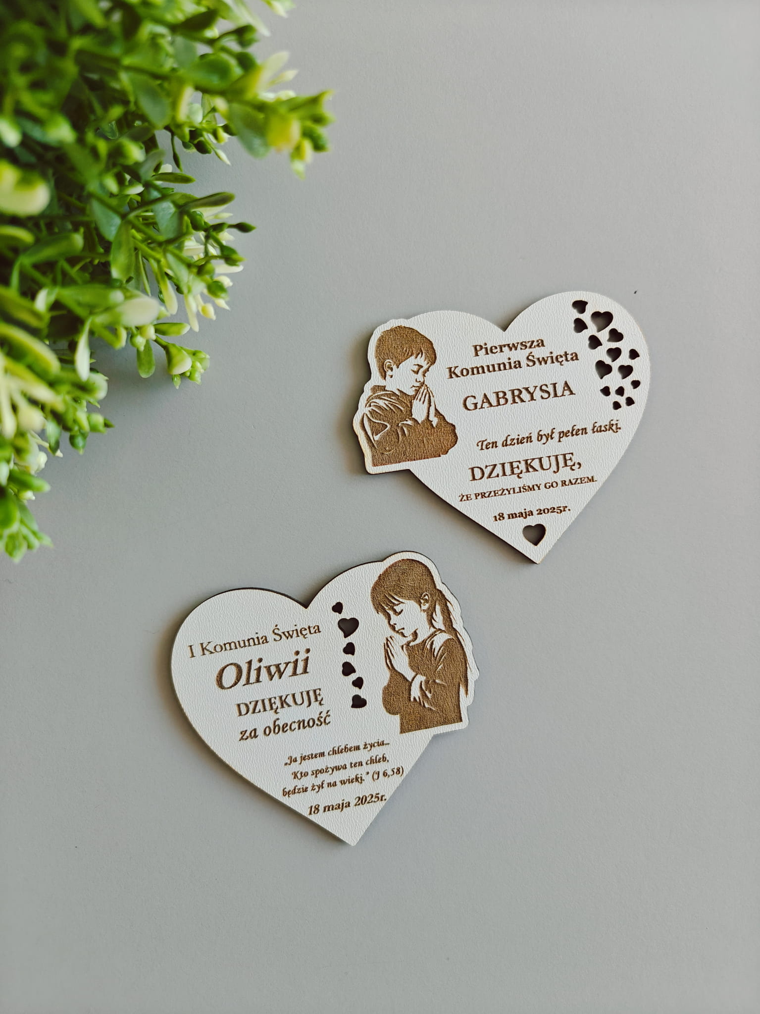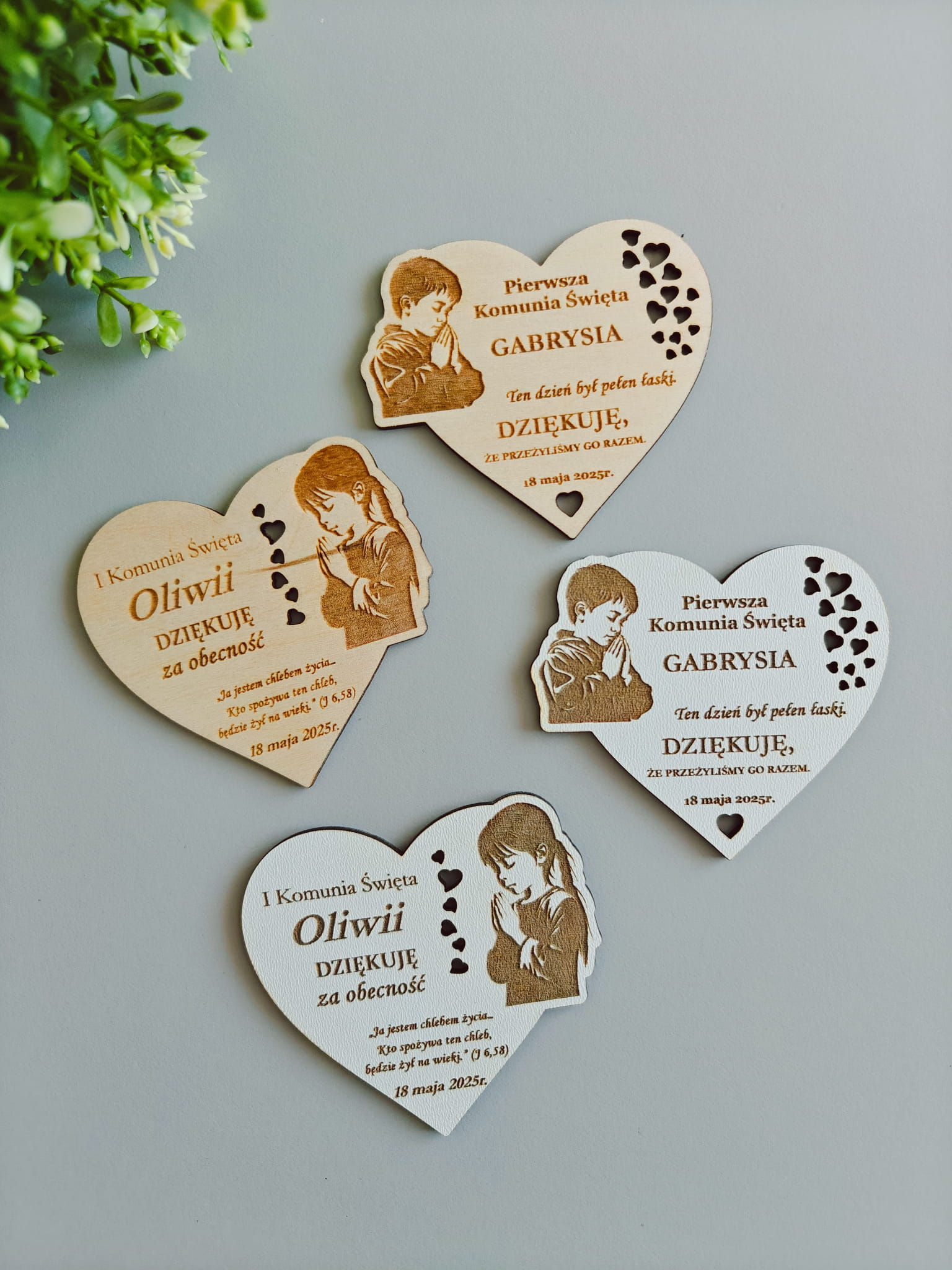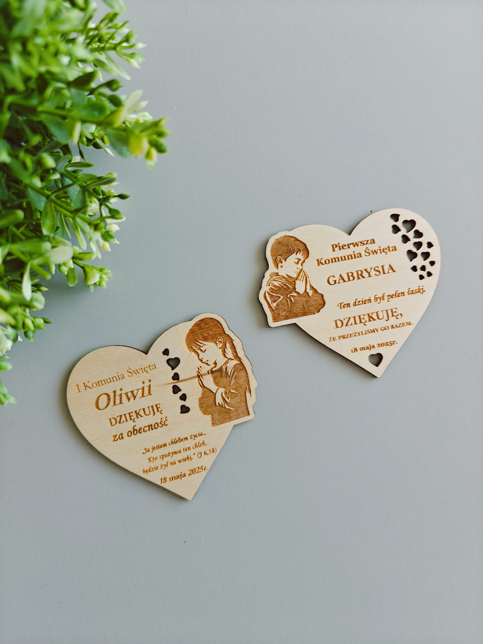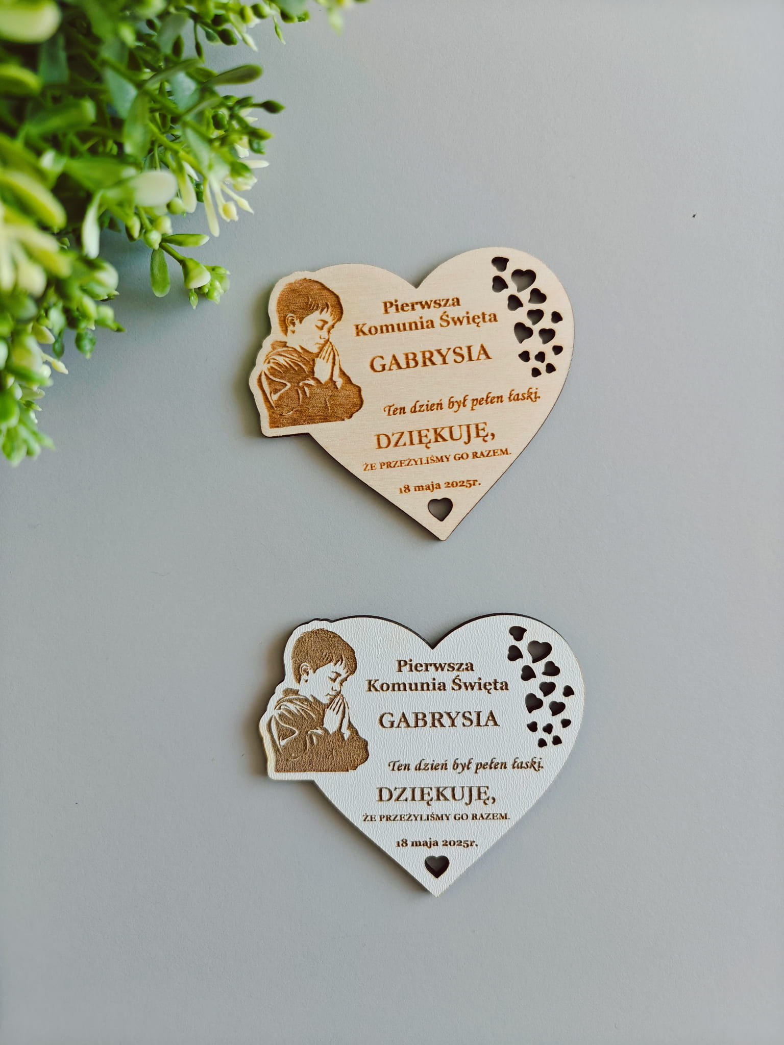 Magnes drewniany Serce Chłopiec Dziewczynka Podziękowanie Pierwsza Komunia Święta -