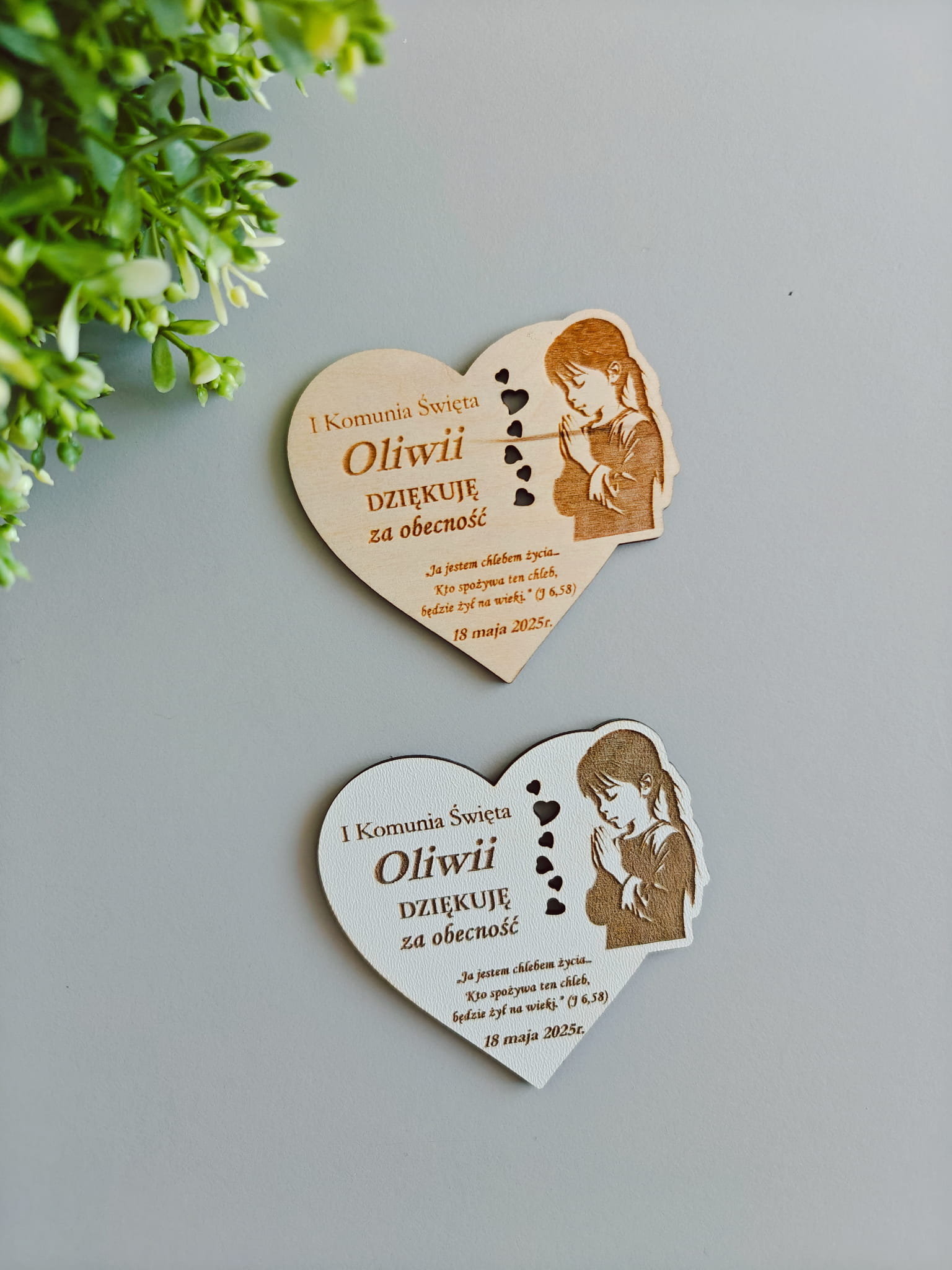 Magnes podziękowanie na I Komunię Świętą – serce z personalizacją