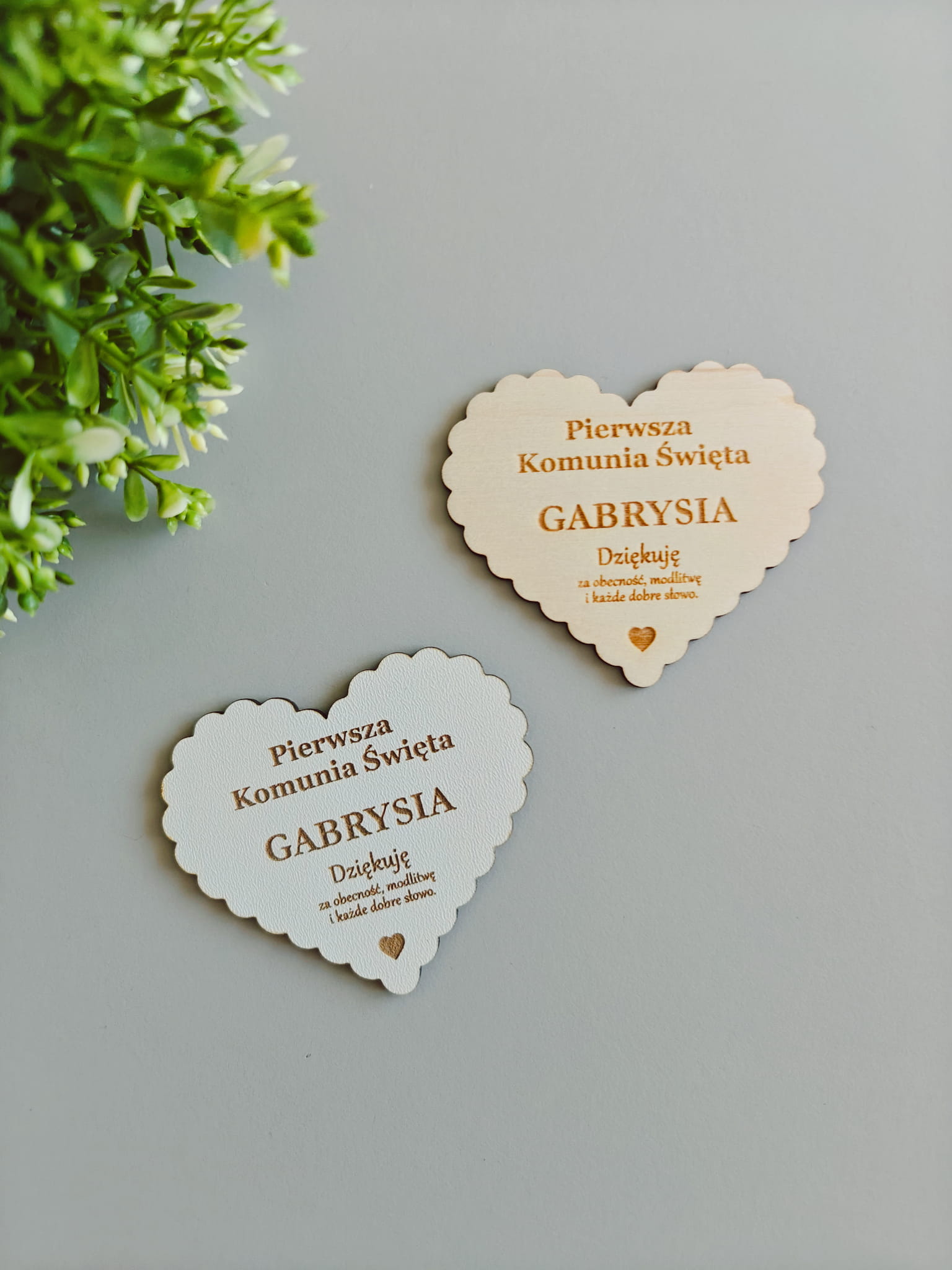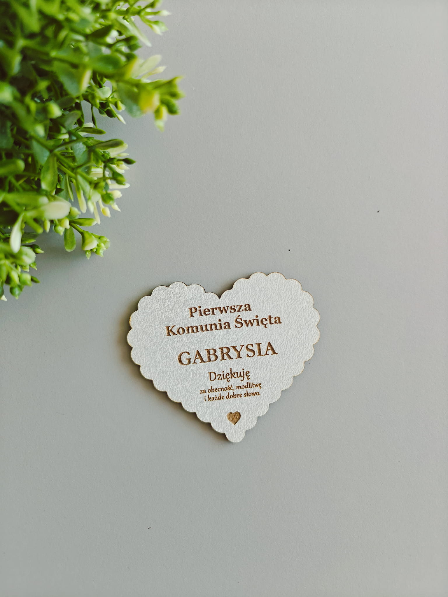 Magnes podziękowanie na I Komunię Świętą – serce z personalizacją