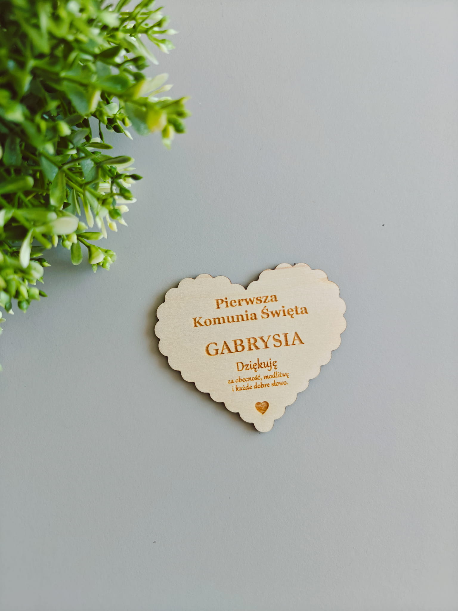 Magnes drewniany Serce Podziękowanie Pierwsza Komunia Święta