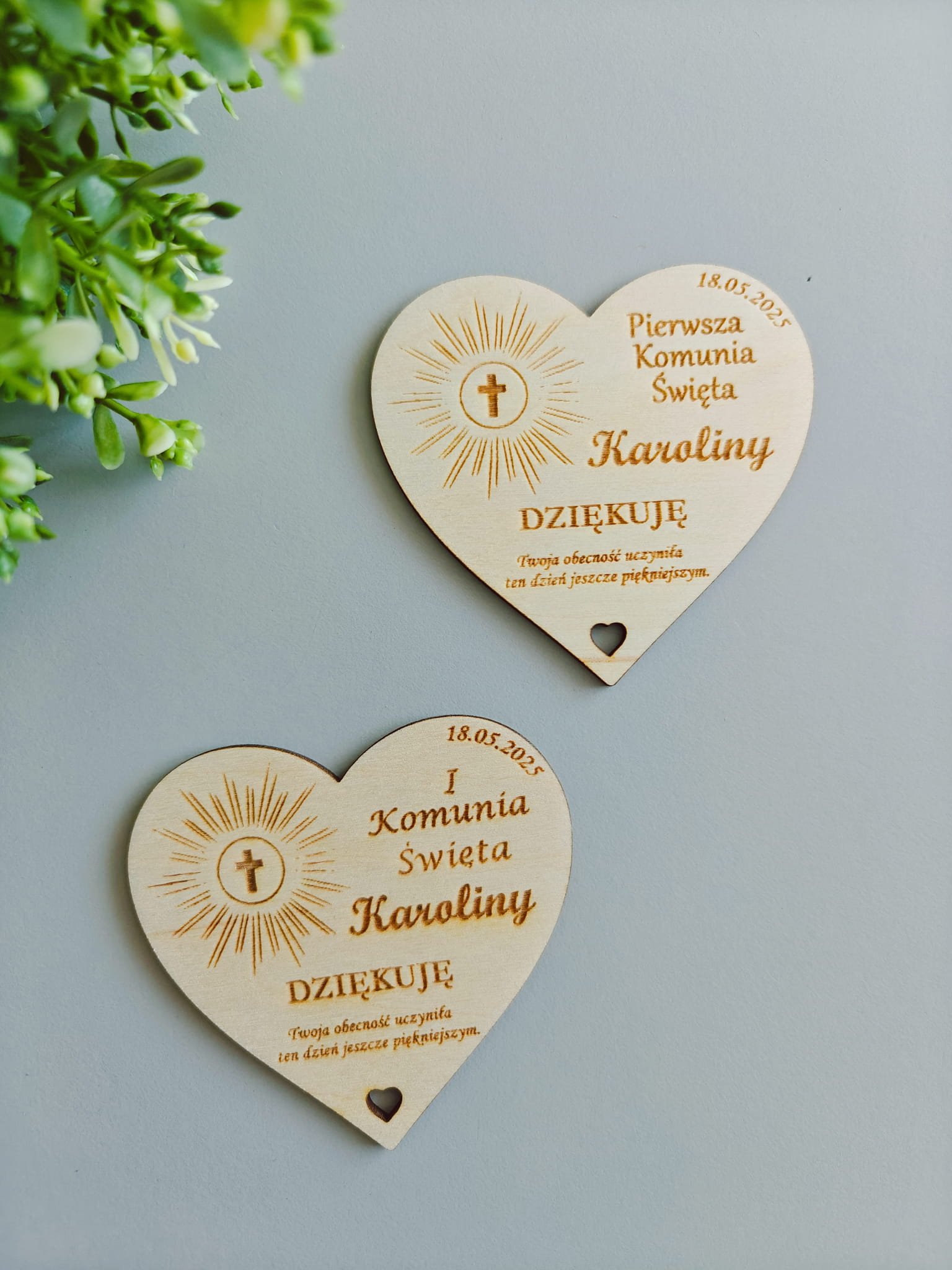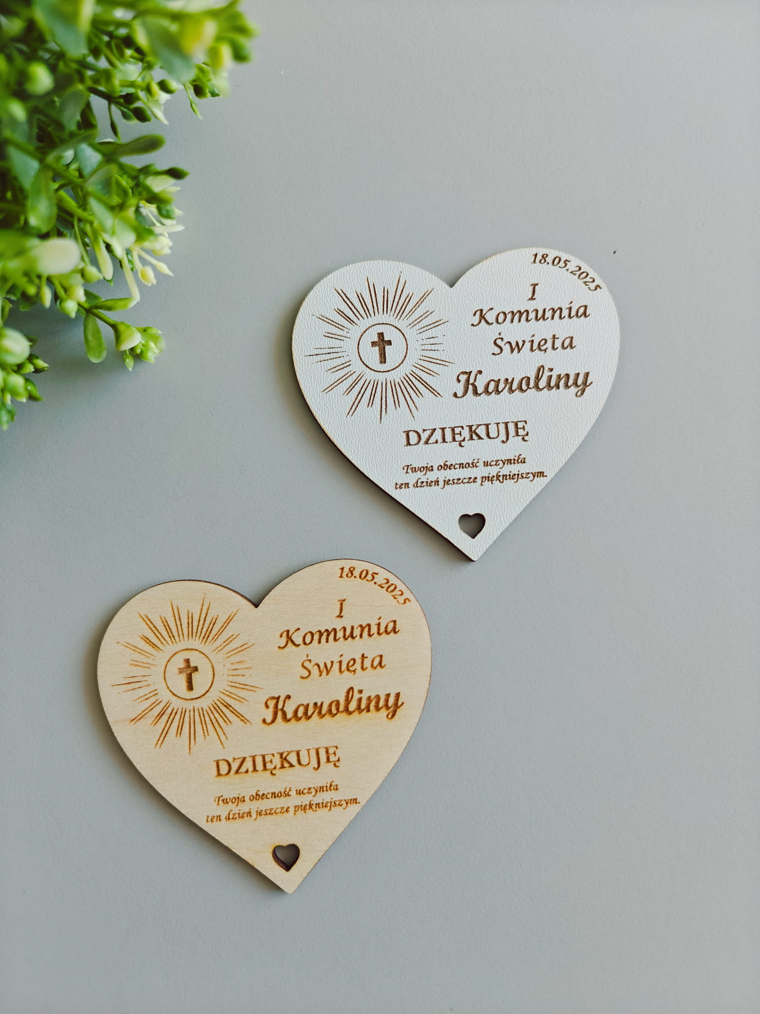 Magnes drewniany Serce Promienie Podziękowanie Pierwsza Komunia Święta