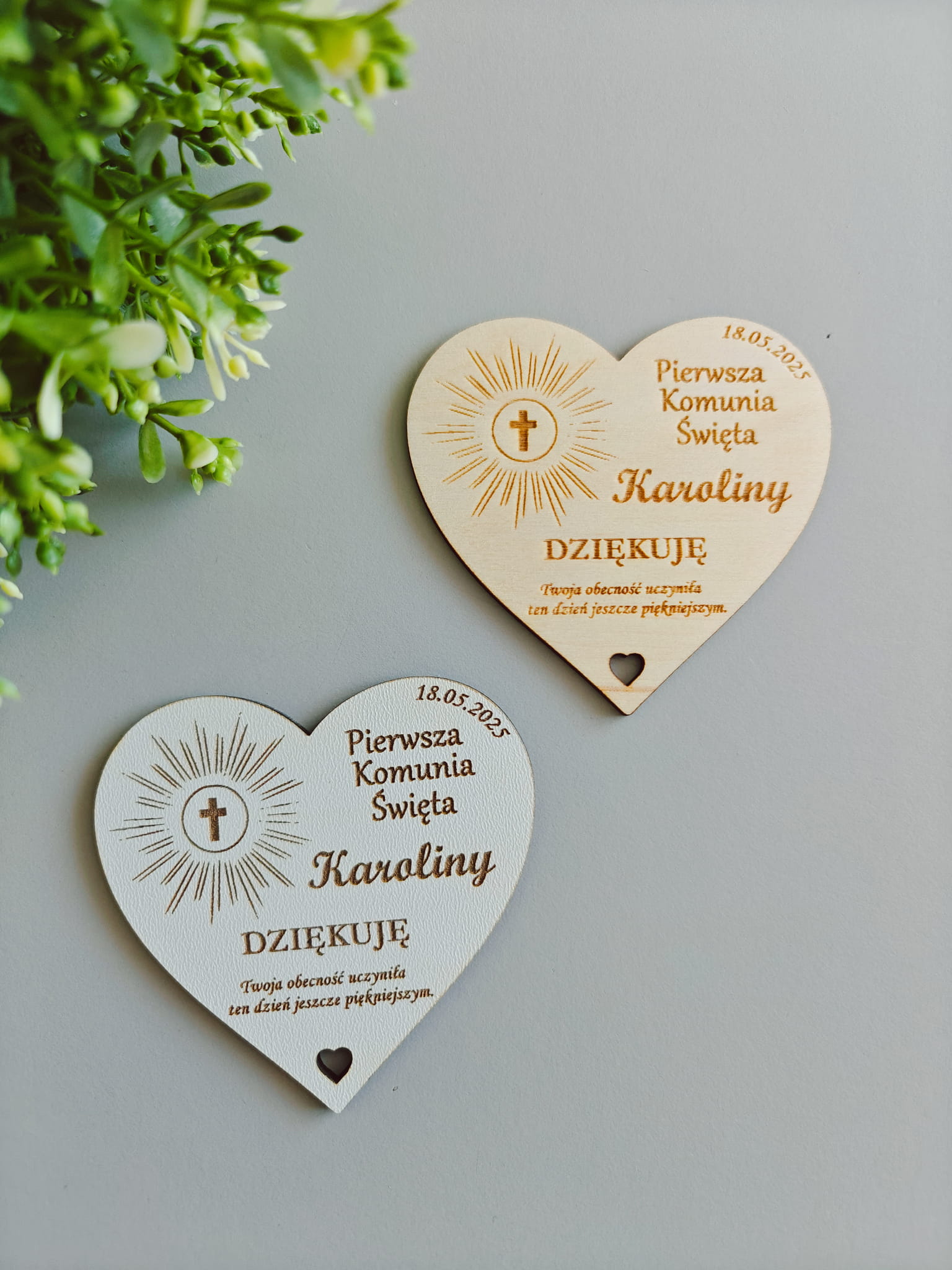 Magnes podziękowanie na I Komunię Świętą – serce z personalizacją