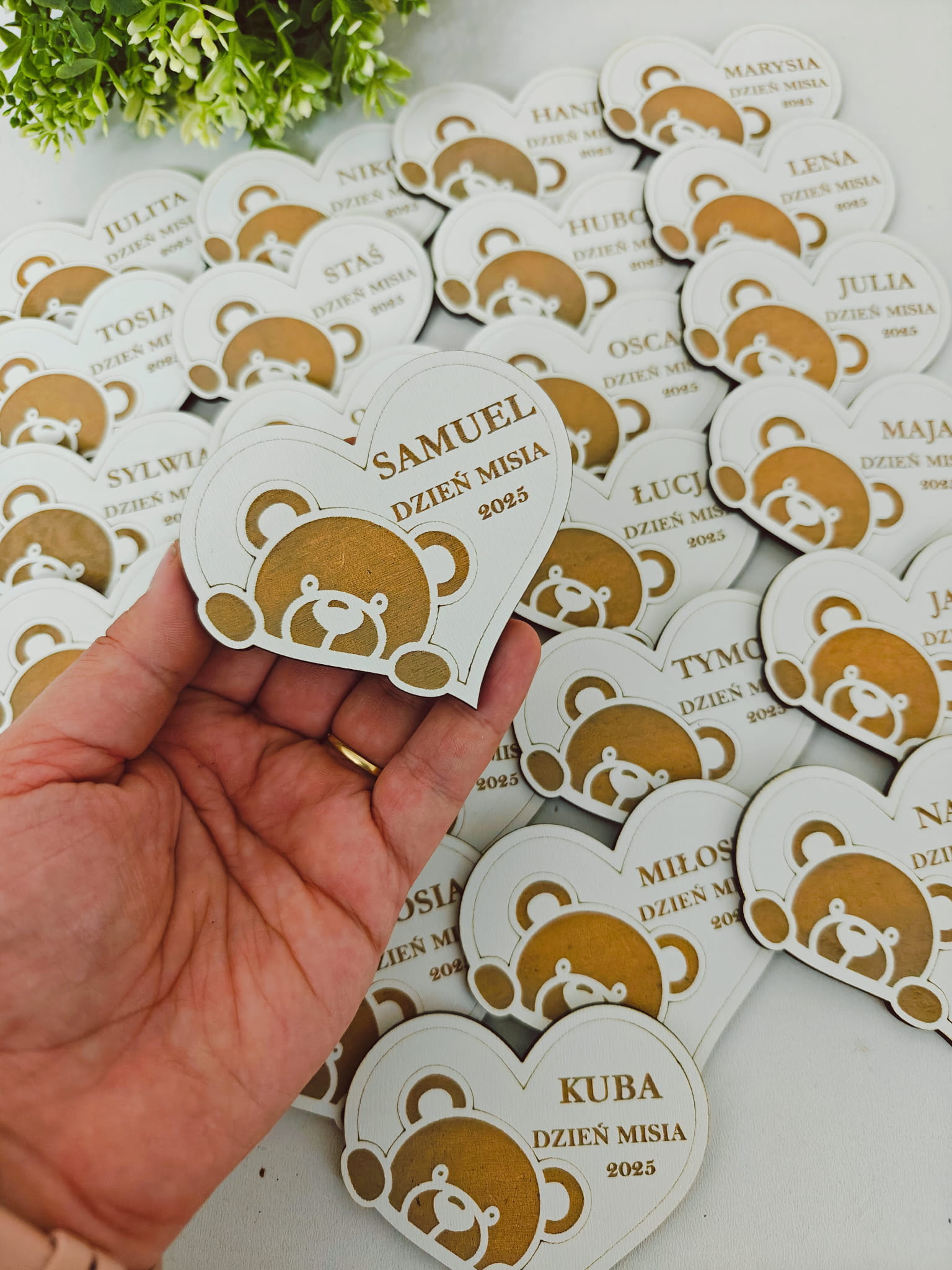 Magnes serce z misiem Dzień Misia - miś magnes personalizacja