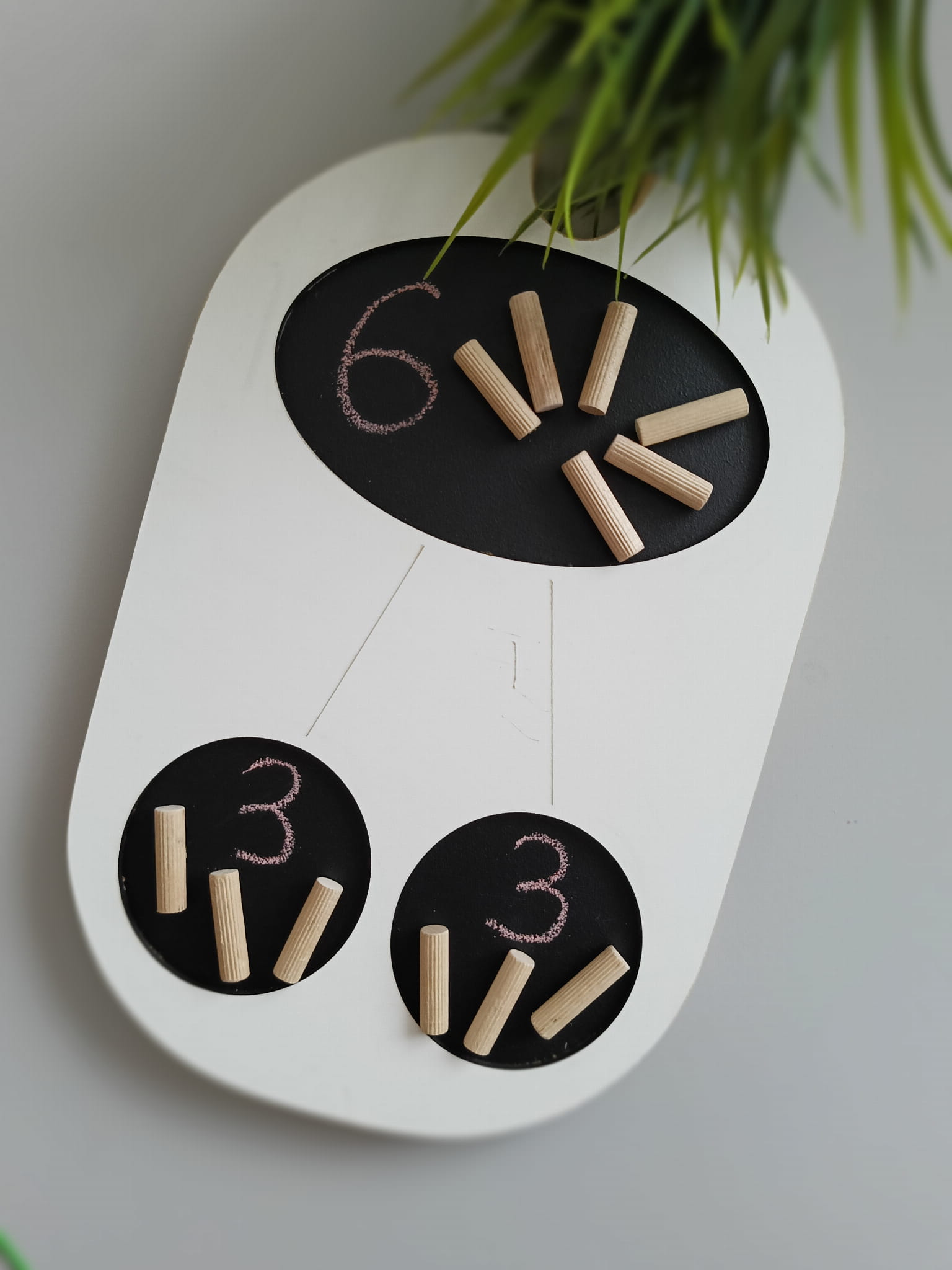Nasza tablica idealnie sprawdzi się do nauki matematyki. Tablica pomalowana jest farbą tablicową, dzięki czemu możecie na niej zapisywać liczby oraz cyfry lub układać przedmioty - liczenie na konkretach. Na tablicy można również zapisywać słowa i dzielić je na sylaby.