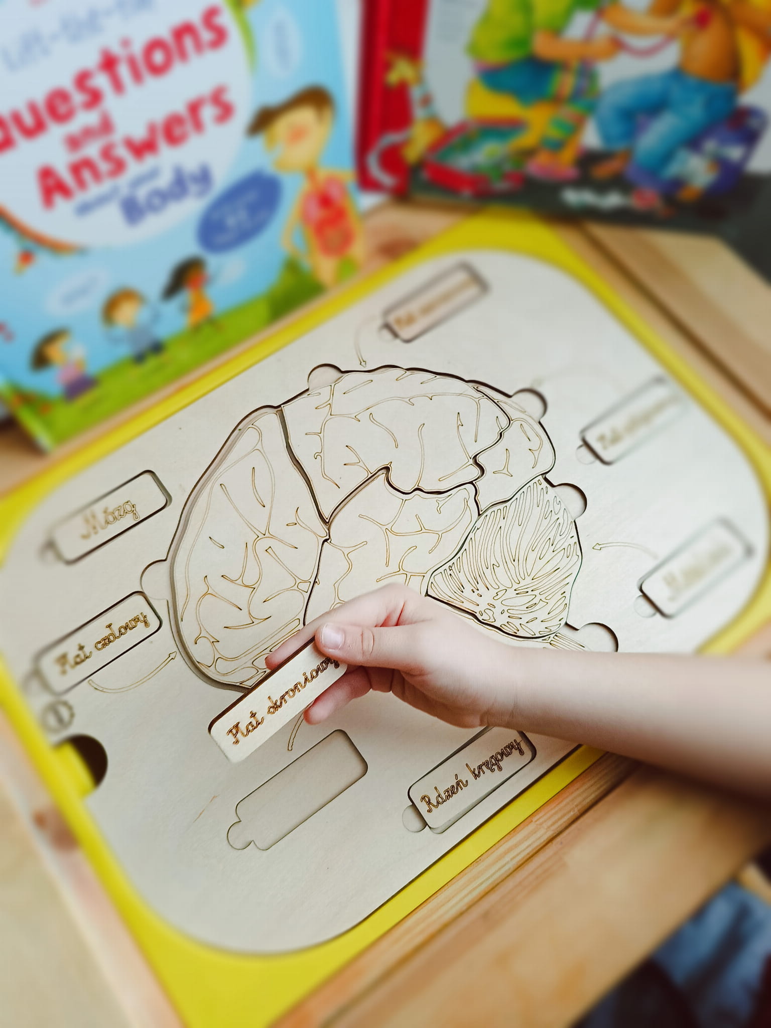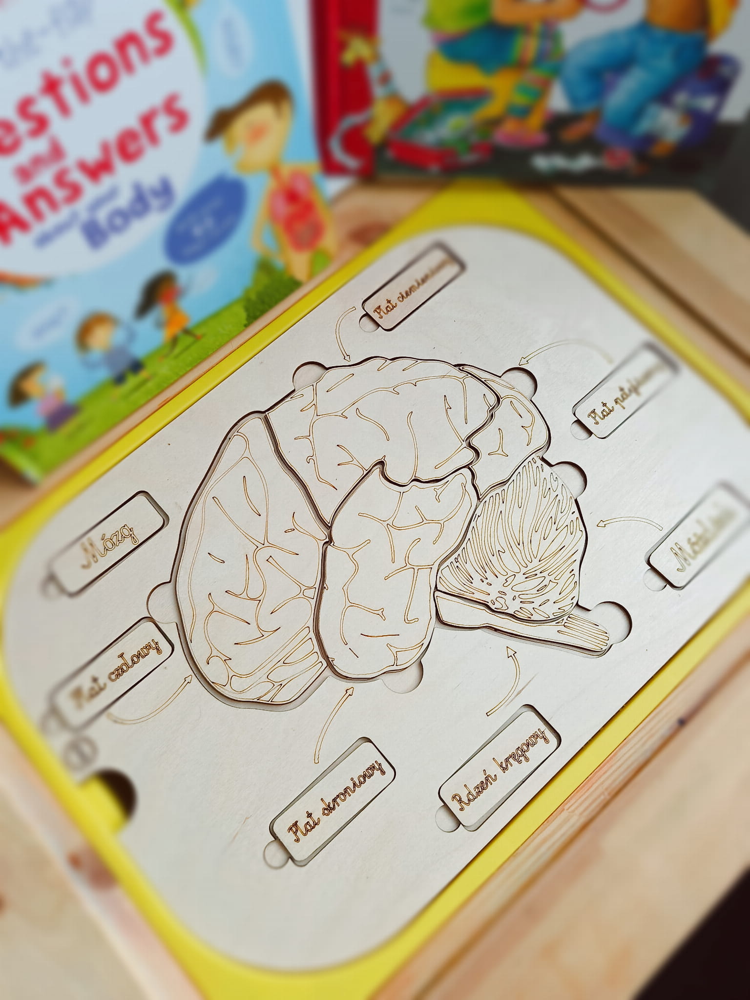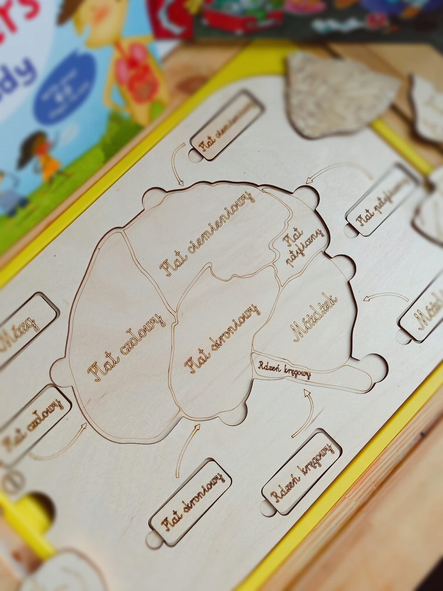 Mózg drewniana układanka i wysypywanka. Wkładka do stolika Ikea Flisat