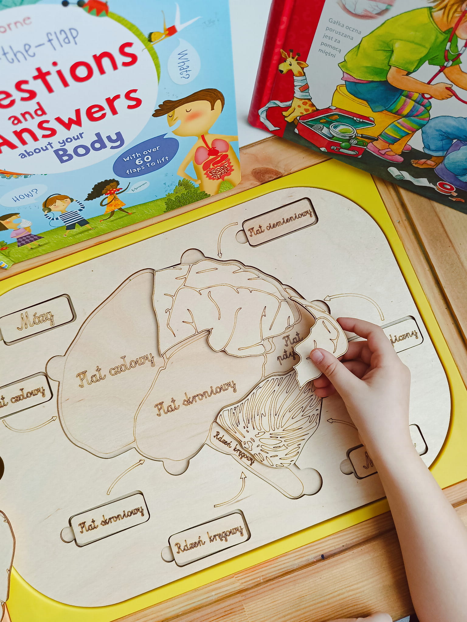 - ruchome elementy (części układanki) z płatkami mózgu, móżdżkiem, rdzeniem kręgowym. Elementy można samodzielnie pokolorować.