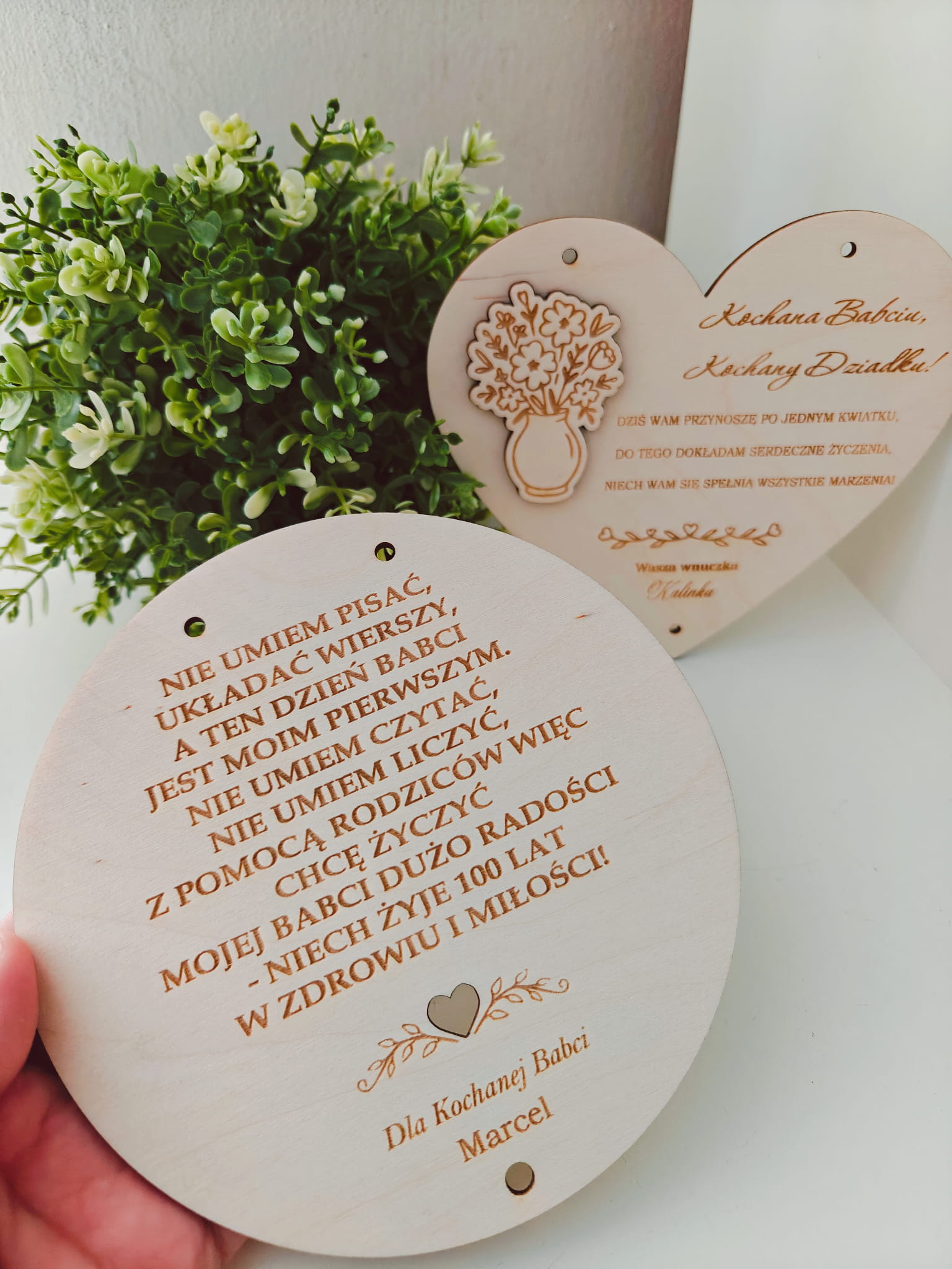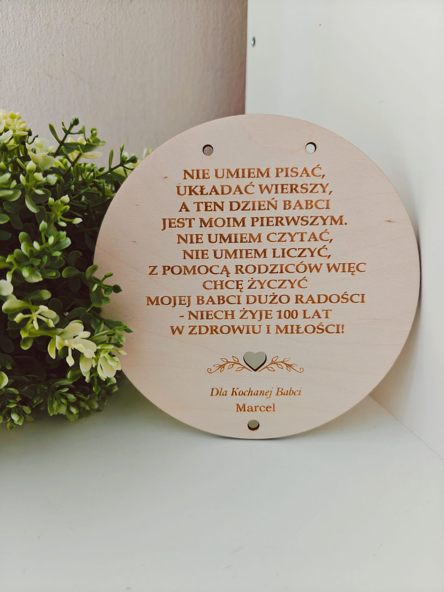 Personalizowana tabliczka dla Babci i Dziadka to wyjątkowy prezent, który łączy prostotę, naturalne materiały i piękne przesłanie płynące prosto z serca dziecka. Doskonale sprawdzi się jako pamiątka na Dzień Babci i Dziadka lub inną wyjątkową okazję.